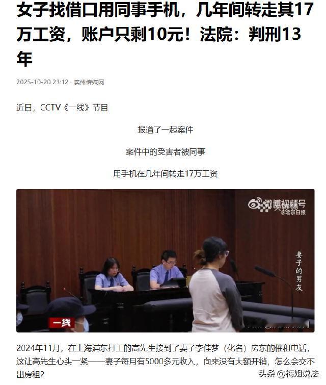 上海,高先生接到妻子房东的催租电话,他纳闷妻子月入五千多、没有大的开销,怎么就交不上房租了呢,查看妻子工资卡发现卡里只剩10元,流水显示钱被妻子的“好友”冯楠转走,夫妻俩报了警。 事情是这样的:当这天,高先生正忙着工作,手机突然响了,一看是妻子的房东打来的。电话那头,房东语气急切,催着交房租。 高先生犯了嘀咕,妻子李佳梦(化名)每月五千多元工资,平时生活节俭,从不乱花钱,怎么就没钱交房租了呢? 高先生放下手里的活,回到家,他好说歹说,妻子才把工资卡递给了他。 高先生接过卡,当他查完看到卡里就剩10块钱! 高先生拉着妻子去了银行查流水,银行流水显示,钱都被妻子那个“好朋友”冯楠(化名)给转走了。 这事还得从2021年说起,那时候,李佳梦刚到上海打工,在公司负责照顾宠物。 公司前台冯楠,瞧着李佳梦不识字,性格又腼腆,觉得她好欺负,就经常找她聊天。 冯楠嘴甜得很,今天给李佳梦带点小零食,明天又陪她聊聊天,慢慢地,李佳梦就把她当成了好朋友,对她的话那是言听计从。 有一天,冯楠神秘地对李佳梦说,现在投资可赚钱了,她可以教李佳梦。 李佳梦啥也不懂,一听能赚钱,就动了心,冯楠趁机套走了李佳梦的支 付 账 号和密码。 从那以后,每个月工资一发,冯楠就约李佳梦出去。 她总说,帮李佳梦看看手机,李佳梦不识字,也没多想,就跟着去了。 每次出去,冯楠都会找机会偷偷转账,要是遇到需要李佳梦自己操作的情况,她就哄着李佳梦,说帮她看看,然后趁机让她贷 款。 李佳梦收到银 行 短信,也看不懂,冯楠就骗她说,那是垃圾短信,让她删掉。 几年下来,李佳梦一直蒙在鼓里,还以为钱都好好地存在卡里,直到这次交不上房租,高先生一查,才知道出了这么大的事。 高先生和李佳梦,赶紧报了警。 民警调查发现:冯楠刚开始转账的时候,,每次就转二十块钱,怕被发现。 后来,胆子越来越大,金额也越来越多,有时一个月就能转走好几千,把李佳梦的钱都转进了自己的口袋。 原来,冯楠自己花钱大手大脚,入不敷出,她看到李佳梦老实好骗,就起了坏心思,想从她这里弄钱花。 经过调查取证,掌握了大量证据。 这几年冯楠累计从李佳梦这里转走了十七万元,全被冯楠自己挥霍一空。 最终,以诈骗罪和盗窃罪对冯楠提起了公诉。 本案中,冯楠虚构投资理财能赚钱的事实,让李佳梦产生错误认识,进而将 支 付 账号密码告知她,还哄骗李佳梦进行贷款操作。 冯楠具有非法占有李佳梦钱财的故意,实施了虚构事实、隐瞒真相的欺骗行为,骗取的钱财数额高达十七万元,达到了诈骗罪数额巨大的标准。 根据刑法第二百六十六条规定,诈骗公私财物,数额巨大的,处三年以上十年以下有期徒刑,并处罚金。 所以,冯楠的行为构成诈骗罪。 盗窃罪是指以非法占有为目的,秘密窃取公私财物数额较大或者多次盗窃、入户盗窃、携带凶器盗窃、扒窃的行为。 冯楠在获取李佳梦支 付 账号密码后,多次偷偷转账,每次转账时李佳梦并不知情,这符合秘密窃取的特征。 而且,她累计转走的金额达到十七万元,数额巨大。根据刑法第二百六十四条的规定,盗窃公私财物,数额巨大的,处三年以上十年以下有期徒刑,并处罚金。 因此,冯楠的行为也构成盗窃罪。 经过审理,认定冯楠通过欺骗手段获取李佳梦的信任,进而转走其钱财,该行为已经构成了诈骗罪和盗窃罪。 根据数罪并罚的原则,对冯楠进行数罪并罚,判处其有期徒刑十三年,其中因为诈骗罪被判十年两个月,因为盗窃罪被判四年六个月。 冯楠为自己的贪婪付出了惨重的代价,等待她的将是漫长的铁窗生涯。不知道她在监狱里,会不会后悔自己的所作所为呢?
