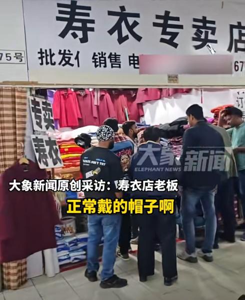 “太离谱了”,在中国死人才穿的寿衣,老外旅游时看上了,直接扎堆到寿衣店试穿购买。 10月20日,江苏镇江一寿衣店突然闯入一群印度人,由于语言不通店主任由这群顾客自行挑选,原本以为都是为家人准备的,但接下来老外的一个举动吓坏了老板。 他们看了一圈挑了好几件,直接披在了自己身上试穿,几人互相帮看纷纷点头表示满意,甚至都已经打算打包买走了。 老板看到这一幕立马摆手说不卖,毕竟寿衣不是给活人穿的,就这样出门多少都不吉利。 反复几次沟通后,这群人才放弃了买寿衣的打算,随后看起了店内的帽子,最后一人买走了一顶才离开店。 不过老板解释,那些帽子是正常人可以戴的,所以没有阻止他们买走。 事后,老板强调之所以坚决不卖寿衣给这些外国人,原因也很简单,这些外国人不懂中国文化,所以无法理解寿衣的意义,但做生意就是要凭良心,不能因为他们不懂,就忽悠他们买来穿。 估计这群老外,将寿衣理解成“亡灵系列”的衣服,加上衣服风格很有特点,才让他们想买,又或者是认为穿寿衣有长寿的意义。 到底还是文化不同,互相都没办法理解,不过老板这个举动还是很良心的,没有忽悠老外。