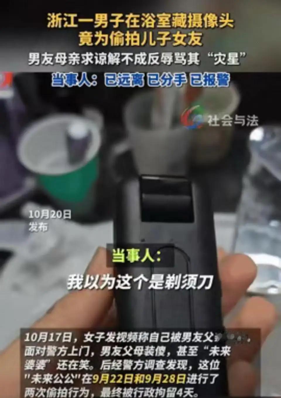 女生和男友同居,被未来公公偷拍,连续6天未发现,全身上下被看遍!女生又羞又怒,想要报案!可未来婆婆居然让女生放弃维权!女生不听报案,让未来公公被拘留,婆婆大骂她是灾星,祸害她家里! 同居6天被未来公公偷拍,婆婆骂她“灾星”:这场闹剧,撕开了多少家庭的遮羞布 “浴室里那个‘刮胡刀’,居然藏了6天摄像头!” 2025年10月17日,浙江女生小敏(化名)的爆料视频刷爆全网。当她颤抖着从浴室墙壁取下那个伪装成刮胡刀的偷拍设备时,怎么也想不到,偷拍者竟是和男友同居住所里,看似和蔼可亲的未来公公。 9月28日深夜11点半,忙碌了一天的小敏准备洗澡放松。伸手摸向墙壁挂钩时,指尖突然触到一个异物——原本该挂着男友刮胡刀的位置,多了个造型诡异的“同款”。出于警惕,她取下设备仔细查看,镜头隐藏在缝隙里的设计让她脊背发凉。上网比对后,一个可怕的结论砸向她:这是一个带储存功能的针孔摄像头。 报警后,警方的调查结果让小敏如遭雷击:摄像头是未来公公陈某放置的,从9月22日起,他先后两次趁小敏和男友不在家时潜入浴室安装,直到被发现时,偷拍已经持续了整整6天。“那6天我每天洗澡、换衣服都在他的监控下,全身上下被看遍了……”小敏在视频里红着眼眶,声音止不住地发抖。 更让她心寒的是未来婆婆的态度。得知真相后,婆婆没有一句道歉,反而第一时间替丈夫辩解:“这摄像头是他在外面捡来的,就是好奇玩玩,又没给别人看!”见小敏坚持要报警,婆婆甚至拉下脸威胁:“女孩子家要脸!这事传出去,谁还敢要你?不如私了,我们给你点钱当补偿。” “补偿?我的隐私不是商品!”小敏当场拒绝。在她看来,这不是简单的“好奇”,而是赤裸裸的侵犯。可让她没想到的是,自己的坚持在婆婆眼里成了“大逆不道”。警方最终对陈某作出行政拘留4日的处罚,婆婆得知后彻底爆发,对着儿子破口大骂:“都是你找的好媳妇!扫把星、灾星!好好一个家被她搅得鸡犬不宁,你爸这辈子的名声全毁了!” 男友的态度让小敏陷入了更深的挣扎。起初他确实站在小敏这边,支持她维权,但面对母亲的哭闹和“要么分手要么断绝关系”的威胁,他最终选择了妥协。“我妈年纪大了,我爸也知道错了,要不……我们先冷静一段时间?”男友的犹豫像一把刀,刺穿了小敏最后的期待。最终,两人和平分手,这段曾被看好的感情,终究没能抵过家庭的扭曲三观。 小敏把自己的经历公之于众,不是为了博取同情,而是想给所有女性提个醒:“不要轻易相信所谓的‘家人’,尤其是同居后和对方长辈同住的情况,一定要提高警惕,保护好自己的隐私。” 网友们看完后怒不可遏:“这哪是公公,分明是披着人皮的恶魔!”“婆婆的三观简直震碎我!受害者还要被指责,这是什么强盗逻辑?”“男友的懦弱才是压垮这段感情的最后一根稻草,这样的家庭早分早解脱!” 其实这场闹剧,早已撕开了某些家庭的遮羞布:有些长辈仗着“长辈”的身份,无视法律和他人隐私,把自己的猥琐当成“无伤大雅”;有些家庭骨子里带着封建糟粕,认为“家丑不可外扬”比受害者的权益更重要;而有些伴侣的懦弱和妥协,更是给受害者的伤口上撒了盐。 小敏的勇敢维权,恰恰是对这种扭曲观念的反抗。她用自己的经历告诉我们:面对侵犯,沉默和妥协只会让施暴者更加肆无忌惮。女性的隐私和尊严不容侵犯,无论对方是谁,哪怕是未来的家人,只要触碰了法律底线,就必须付出代价。 值得庆幸的是,小敏没有因为威胁而退缩,也没有因为男友的犹豫而放弃维权。她的故事不仅让更多人意识到同居生活中的隐私安全问题,更让我们看到:女性在面对不公时,敢于发声、勇于维权,才是对自己最好的保护。 最后想问大家:如果你遇到小敏这样的情况,会选择妥协还是坚持维权?你觉得男友的做法真的“无辜”吗?欢迎在评论区留下你的看法,一起为勇敢的小敏点赞,也为所有坚守底线的女性发声!同事窥探隐私 色狼偷拍 偷拍他人照片 偷拍他人视频 偷拍事件女主 前女友隐私照 租房偷拍