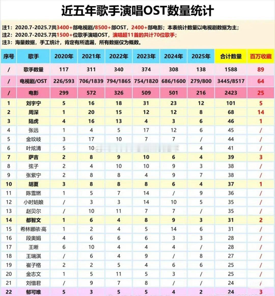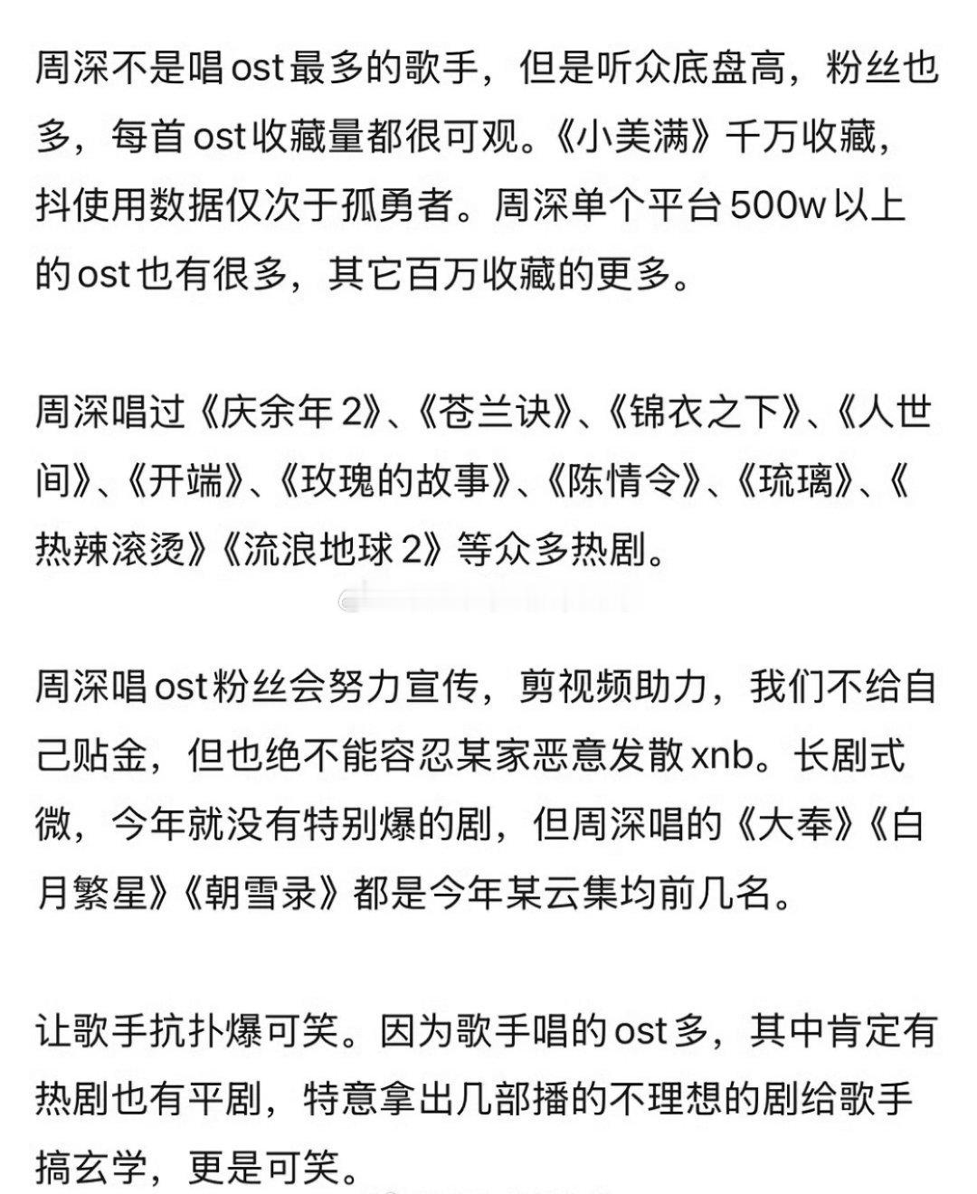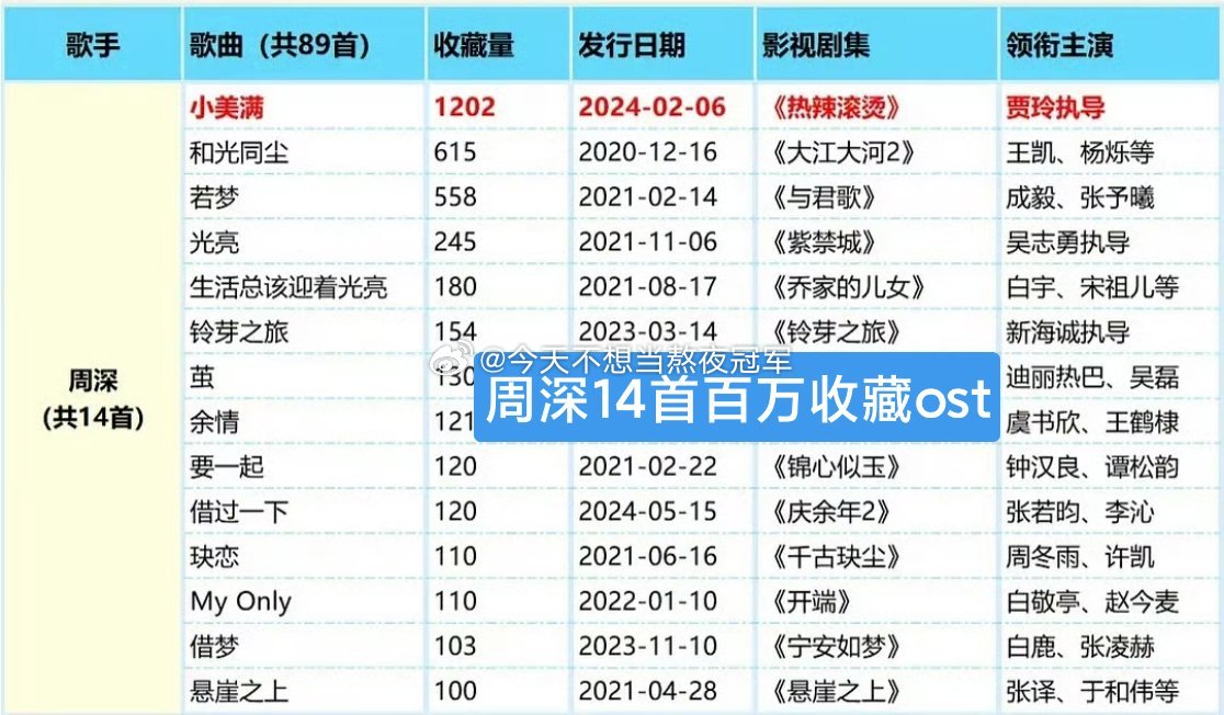 周深唱ost的数量不是最多的,但破百万收藏的就有14首。