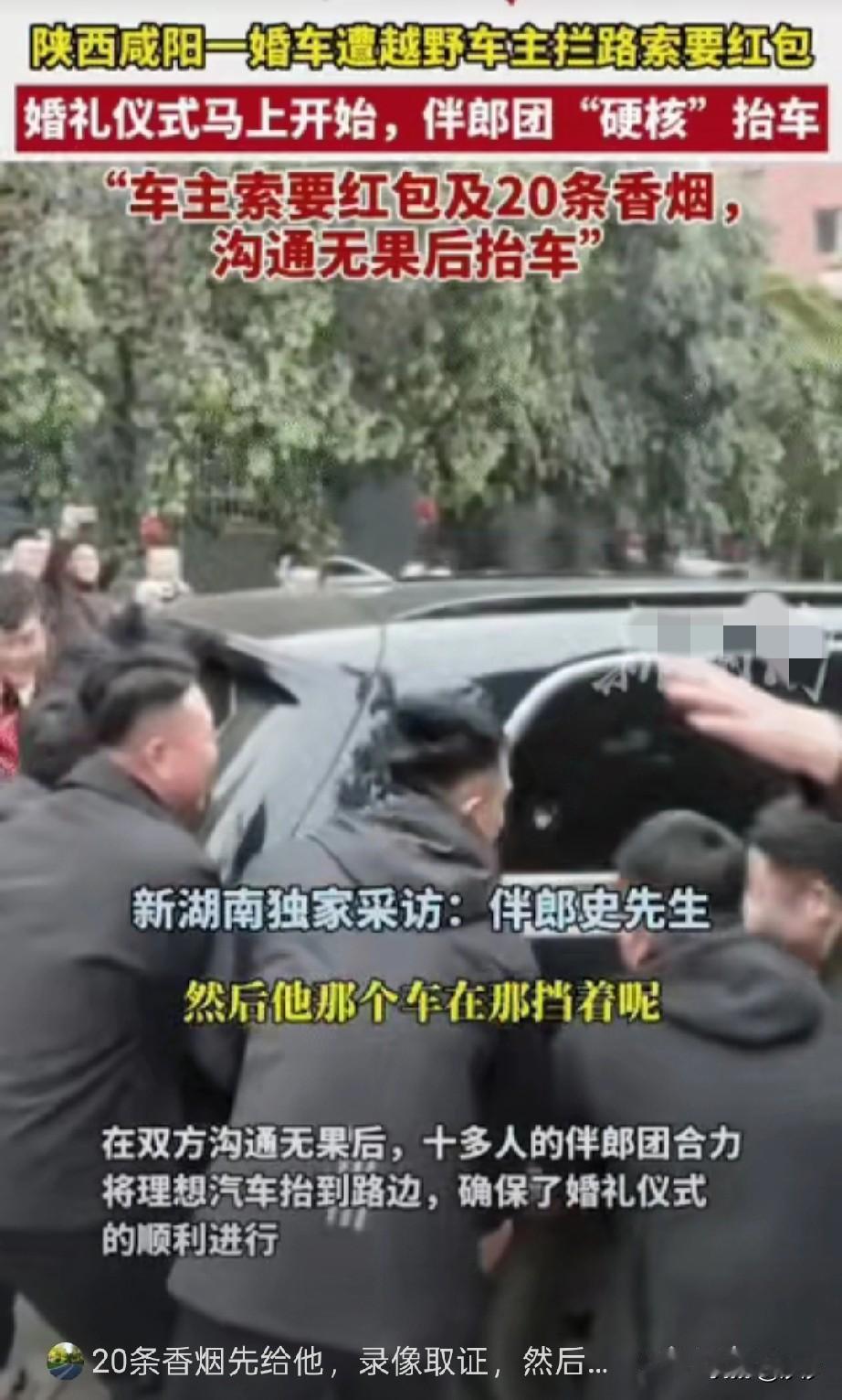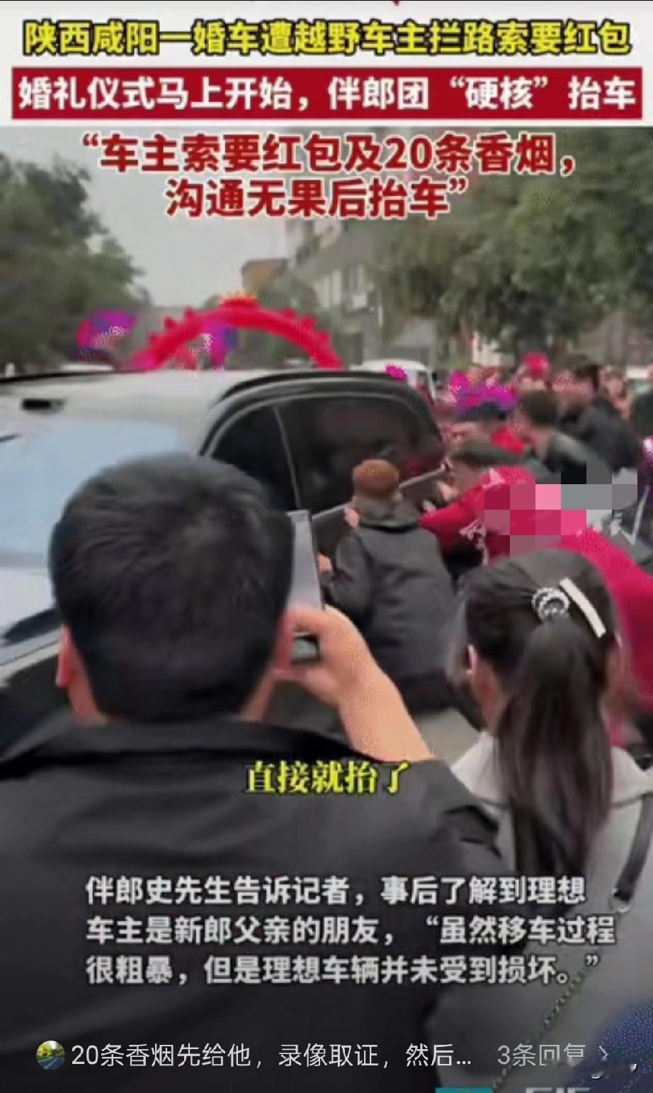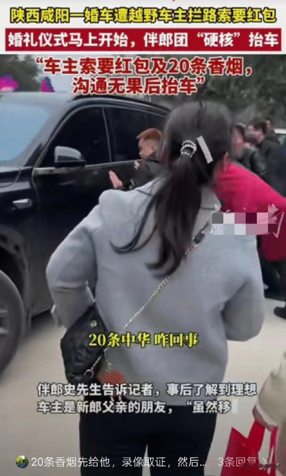 陕西咸阳理想车主拦婚车后续来了, 狮子大开口索要红包及20条中华烟, 沟通无果后