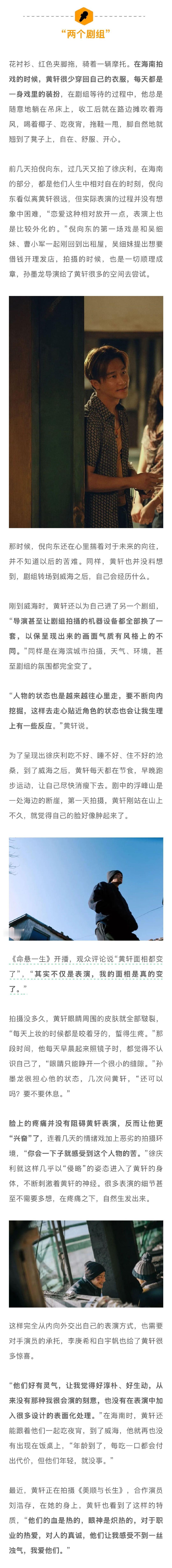 黄轩回应面相变了黄轩问演员为什么要有赛道谈及《命悬一生》中的李庚希、白宇帆等