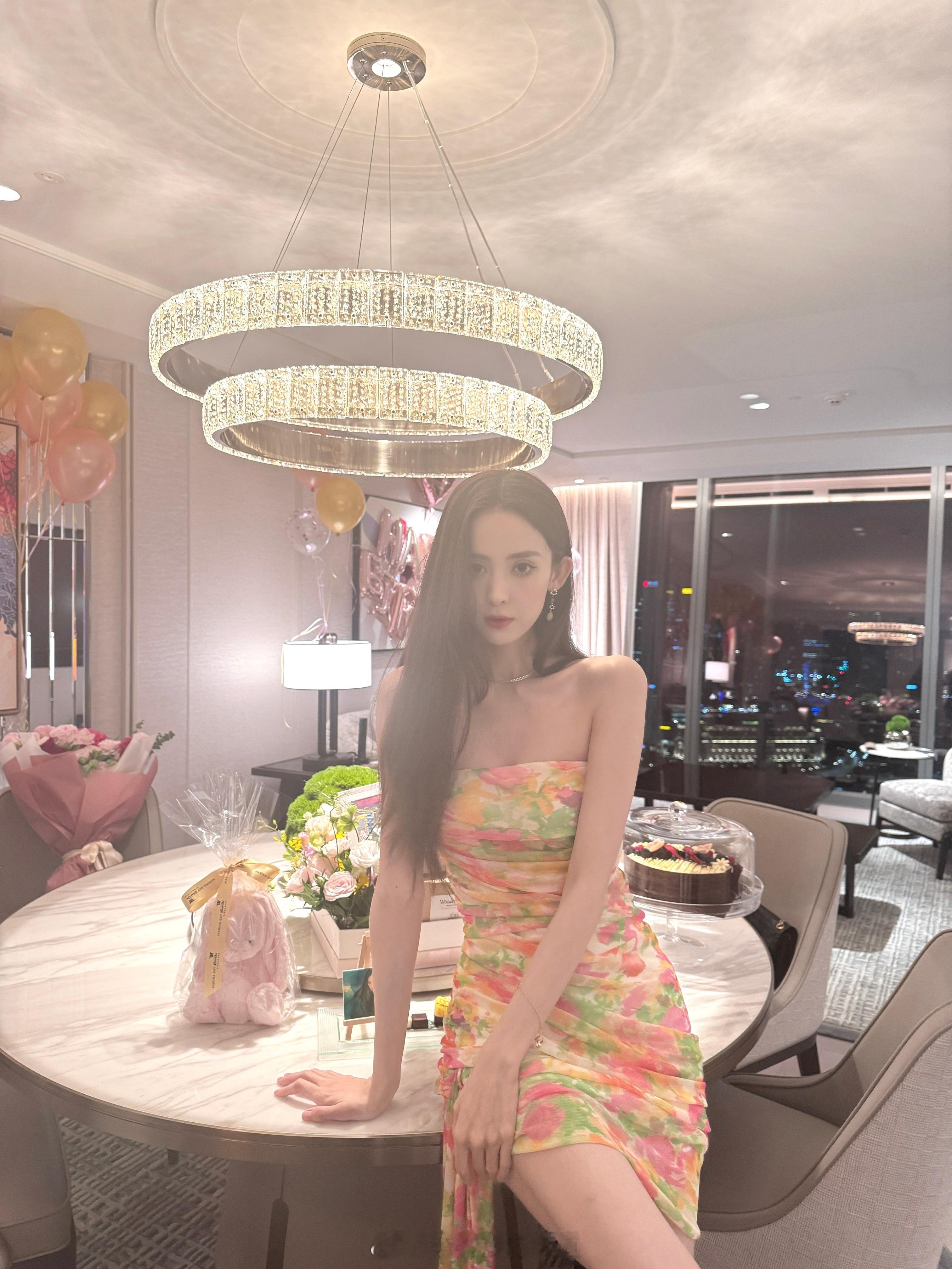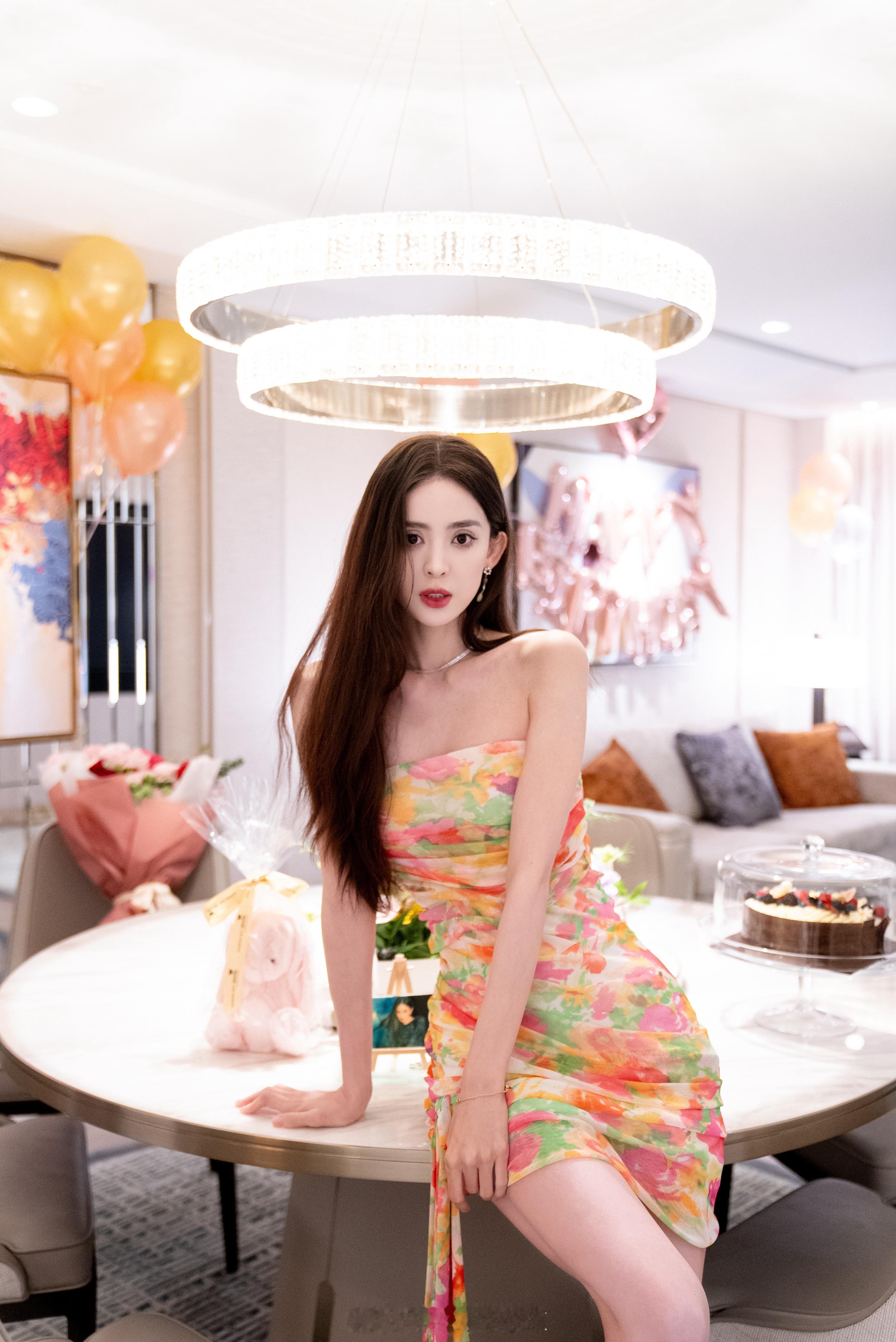 古力娜扎浪漫的彩虹仙女裙