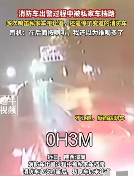 陕西渭南,女司机开车在路上,突然听到背后有人按喇叭,她心中一阵烦躁,就是不让道,可后面的车一直按喇叭,女司机较劲了,一直堵住后方的车,后方的车变道超车, 女司机也一打方向盘,直接逼停后方的车,大家直骂她,连消防车都敢堵,女子却大喊冤枉:就是以为谁喝多了,一直在按喇叭,就一直没有去管他。 “你越按喇叭我就越不给你让!”一天夜里,一辆鸣着警笛的消防车在紧急奔赴火场途中,遭遇了令人震惊的一幕。 前方一辆小轿车无视鸣笛,毫不避让,还在消防车试图变道超车时,猛踩刹车逼停救援车辆。整整一分多钟的宝贵救援时间,就在这场荒唐的拉锯战中流逝。 反观女司机的理由,简直荒唐至极!她辩解说自己是把警笛声误认成了醉汉的喇叭声。但消防车特有的警笛声与普通汽车喇叭截然不同,这是连孩童都能分辨的常识。 更令人质疑的是,若真如她所说未曾留意,又怎会在消防车正在超车时,突然“精准”地变道阻挡?这分明是路怒情绪支配下的故意行为,是对公共安全的极度漠视。 法律对此类行为绝不姑息。这位女司机最终被处以罚款100元、驾驶证记3分的行政处罚。 法律之所以明确规定必须为特种车辆让行,绝非为了限制个人自由,而是为了守护更宝贵的生命权益。当警笛响起,每一秒都关乎生死,让行不仅是法定义务,更是不可逾越的道德底线。 然而,这样的惩罚与她可能造成的严重后果相比,实在微不足道。试想,若因这一分钟的延误导致生命消逝,这笔账又该如何计算? 道路不是私人领地,而是承载着公共安全的特殊空间。每一次出行,我们都与他人的生命安全紧密相连。一次不该有的变道、一次拒绝让行、一次随意开车门,这些看似微小的违规,都可能成为夺走生命的致命瞬间。 更让人揪心的是,全国七成小区的消防通道长期被车辆占用,有的车主觉得“停一会儿没事”,有的认为“就算罚点钱也比买个车位划算”。可是在他们理所当然“图方便”的同时,却忘了一旦消防通道被堵,再好的装备也派不上用场。 这起逼停消防车的事件应当成为全社会的警钟。每一位手握方向盘的驾驶者都必须明白:道路特权永远与安全责任相伴而生。摒弃路怒情绪,保持对规则的敬畏,才能让每一次出行都平安抵达终点。 今日你为消防车让行,明日或许就是别人为救护你的亲人让道。这不该是道德选择题,而应成为文明社会的自觉行动。 生命通道的畅通,需要每一位道路参与者共同守护。对此你有什么看法?欢迎在评论区留言讨论。 消防救援 路怒 信息来源: 越牛新闻2025-01-13|消防车出警过程中被私家车挡路 文|墨海 编辑|史叔