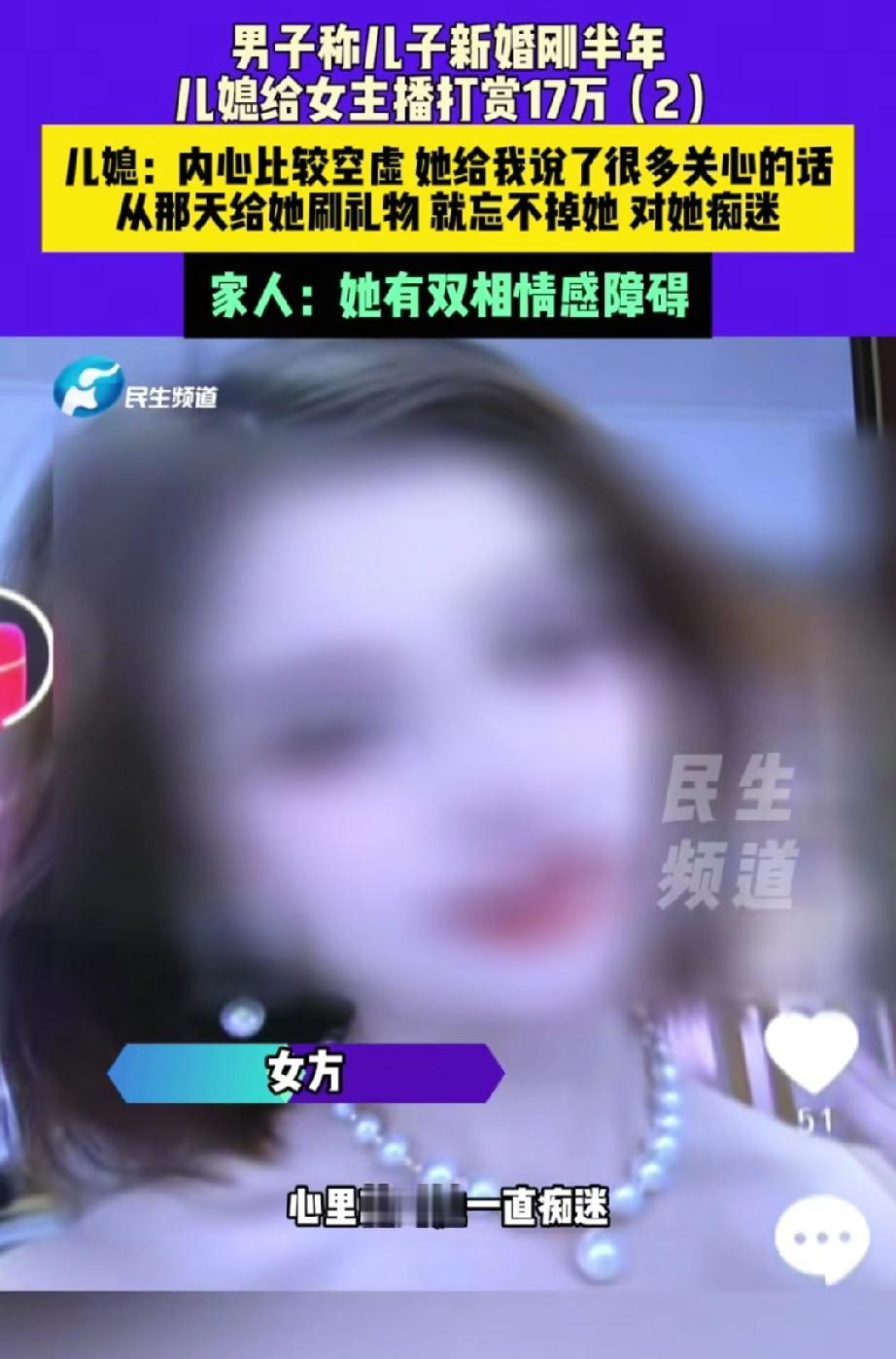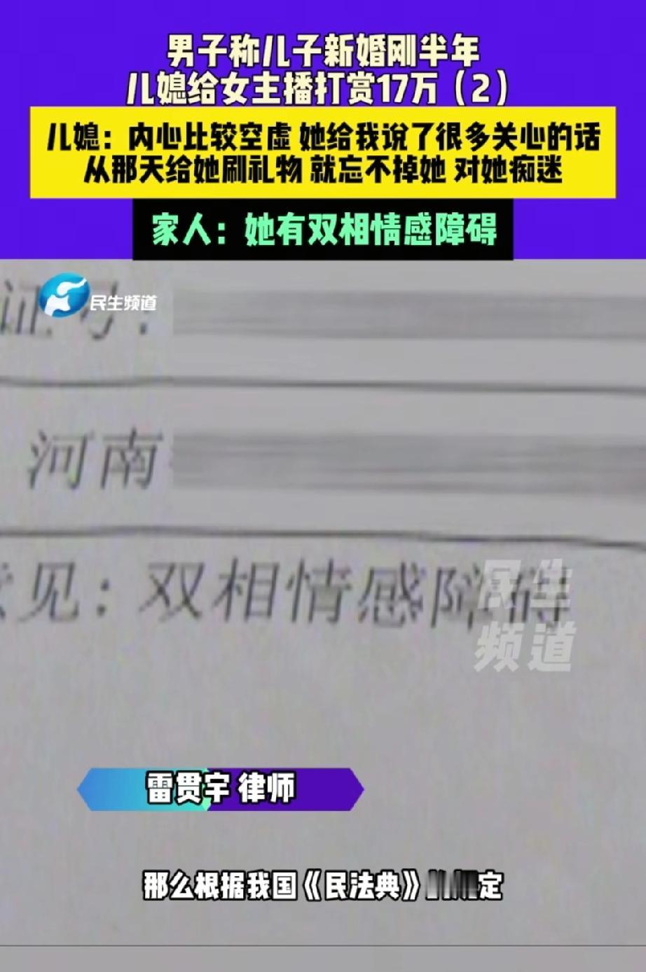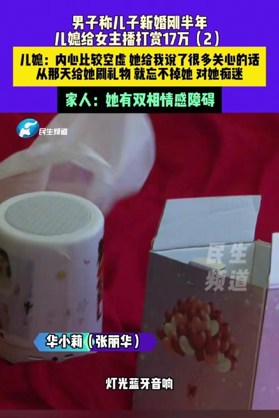 河南商丘,一名女子结婚刚半年多,就将16万多元的聘礼打赏给了女主播。 女子的公公急需用钱,向她借钱,女子却一声不吭,只是默默哭泣。 公公找来女子的父亲,询问后才知道,女儿在网上结识了一位女主播,还加了对方微信,仅微信红包就给女主播转了4万多。 从三月到四月这两个月间,女子已将钱打赏出去,银行卡里仅剩下0.1元。 女主播给女子邮寄了蓝牙耳机、音响,还有印着自己头像的瓷杯。 女子断断续续地说:“我特别喜欢这个女主播,我给她打赏,她就会对我好,很关心我,还经常和我聊天,让我感觉很温暖。” 父亲懊悔不已,后悔当初把聘礼钱都给了女儿。 公公觉得女子的行为十分异常,便带她去医院检查,确诊为双向情感障碍。 律师表示:双向情感障碍患者属于限制行为人,依据《民法典》,若监护人不认可这种打赏行为,可要求女主播返还打赏及微信转账的红包。 然而,拨打女主播电话时,却无人接听。 网络平台回应称:若确认女子病情属实,72小时内会有专员处理此事。 倘若父亲早知道女儿患病,公公早知道儿媳妇身体有问题并及时干涉,或许就不会发生这样的事。 主播行业靠网友打赏维持生计,但通过微信让人转账,是否有“骗”的嫌疑呢? 来源:河南广播电视台民生频道