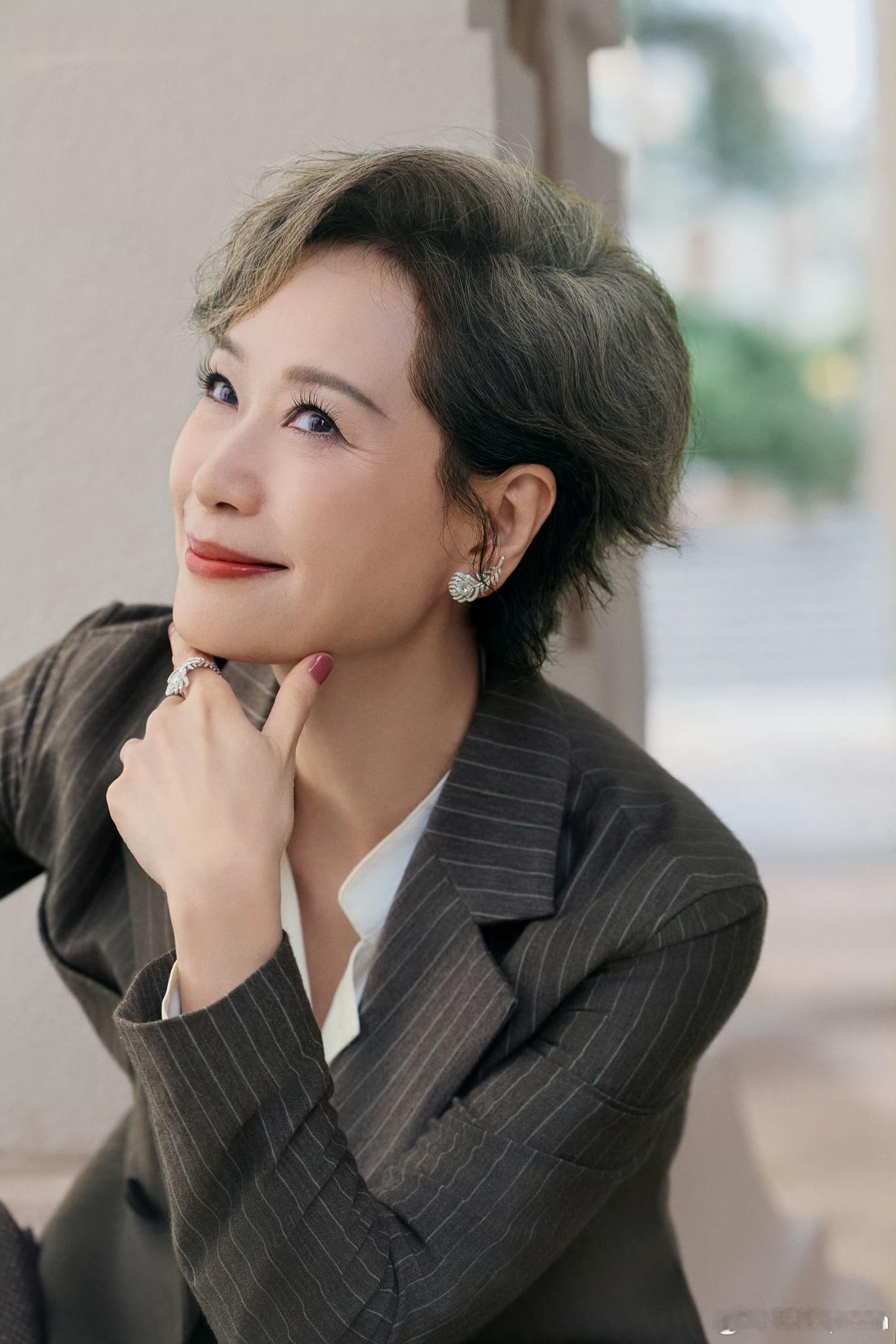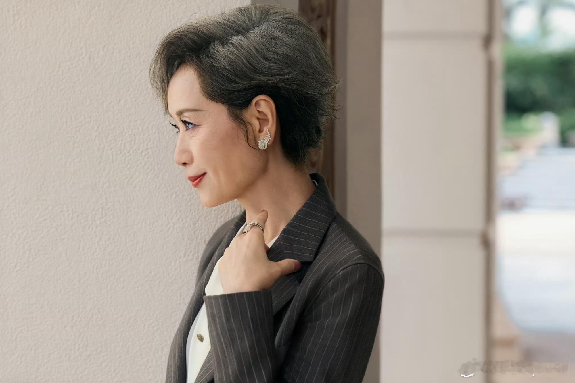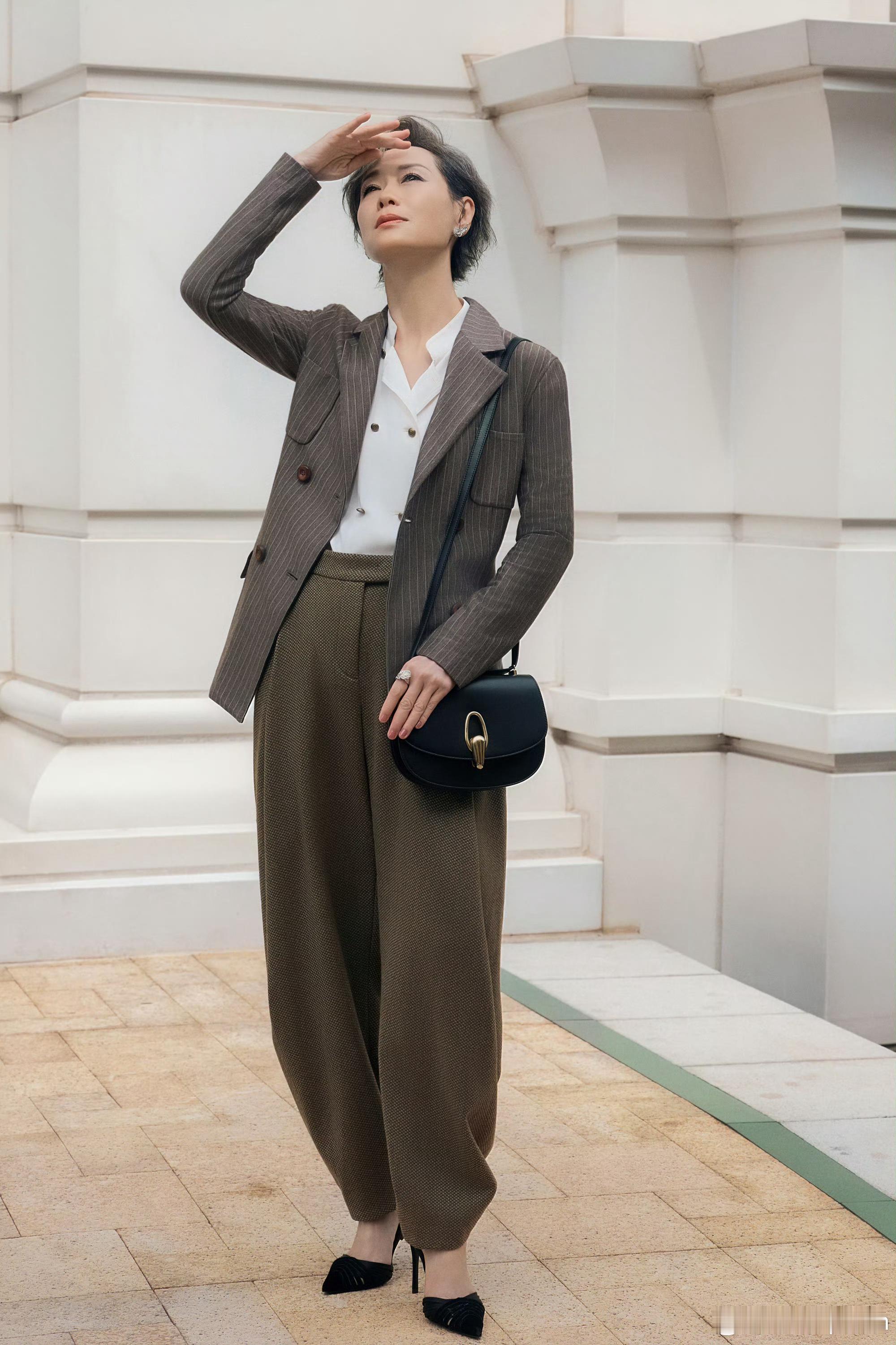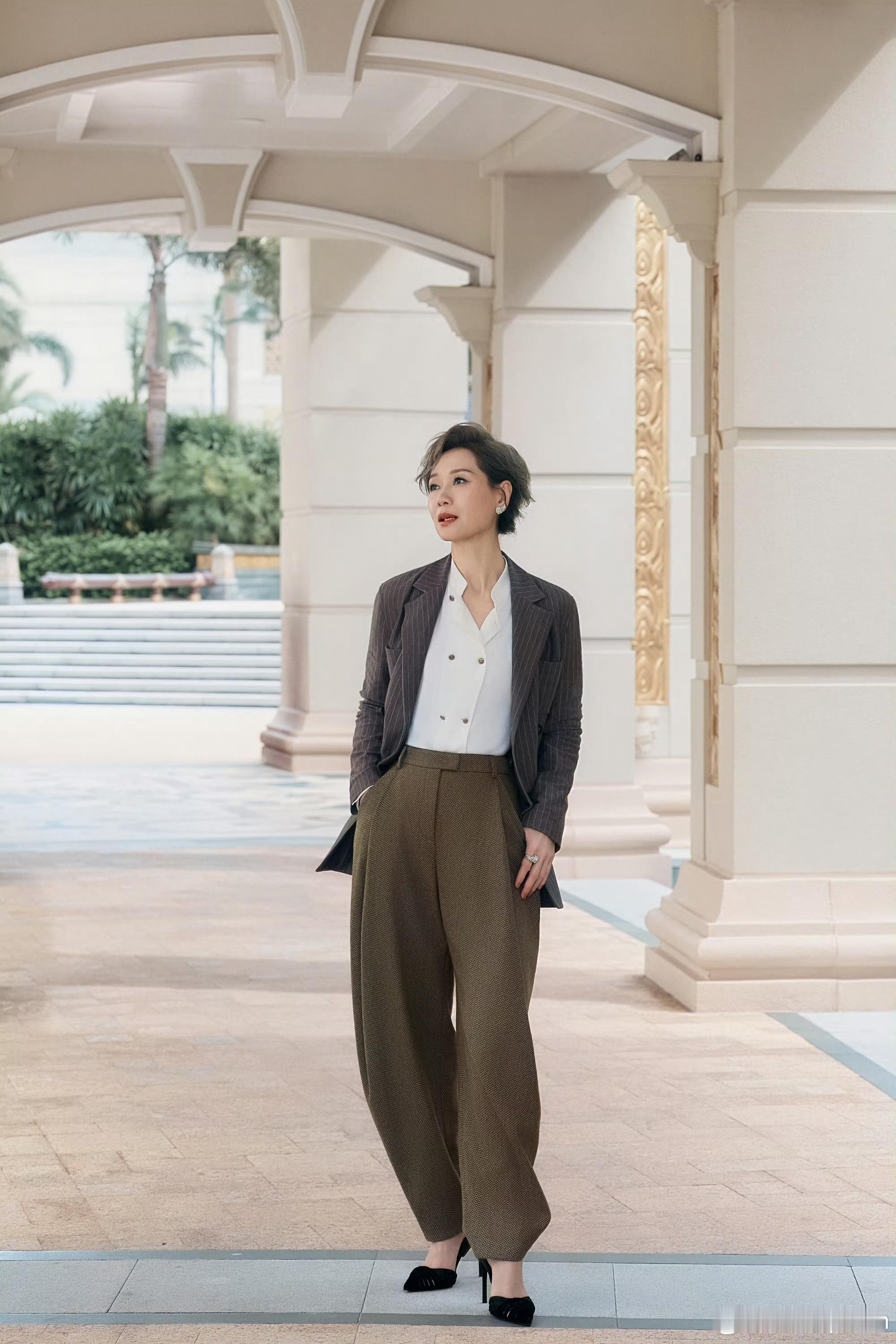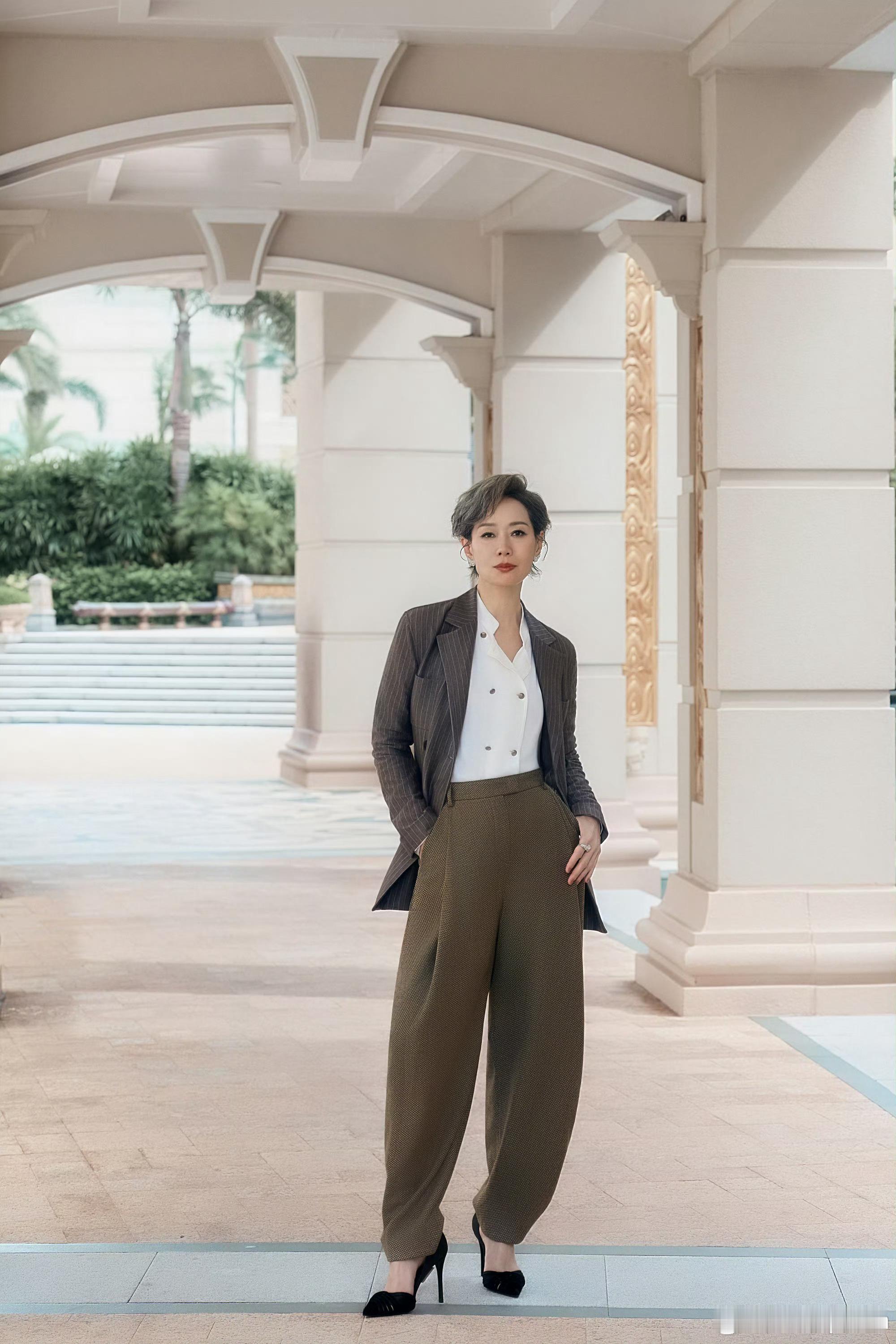 叶童灰调短发飒爽灵气,西装搭阔腿裤又美又A,太帅酷了,又美又有范儿~