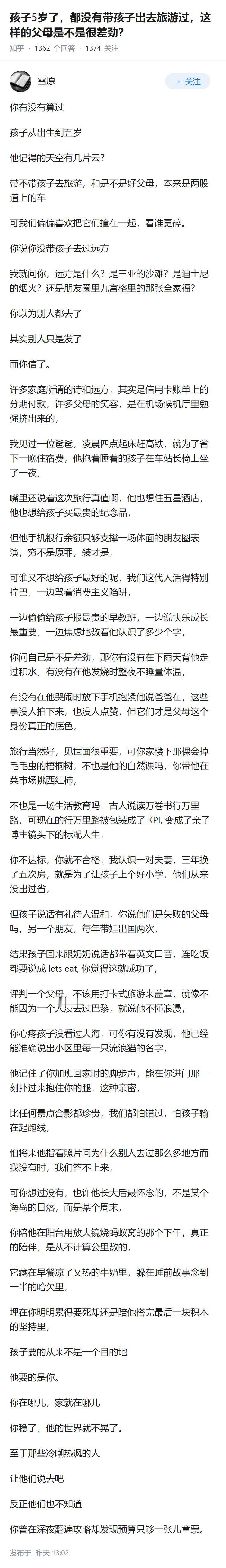 孩子5岁了,都没有带孩子出去旅游过,这样的父母是不是很差劲?