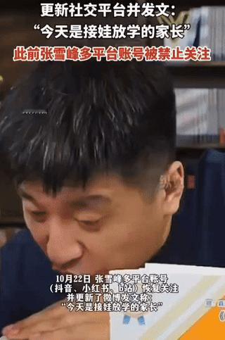 公与母。我是他个人的粉丝(机构没有),不想讨论他如何的成功背后! 25年10月22日,雪峰在微博发文:今天是接娃放学的家长,这是自9月24日账号被禁止关注后的首次公开更新。封禁这是一个标识,在违背了国家的法律法规就应该受到相应的处罚,为何他要被封杀? 25年9月24日,雪峰在微博、抖音、B站、小红书四大平台的主账号(合计粉丝超4000万)同步被禁止关注,平台标注原因为“违反法律法规或社区公约”。一是长期争议言论如文科是服(这个问题我反对),二是高价志愿填报服务涉嫌贩卖焦虑(是谁制造了焦虑?)三是他一直在强调(高考作为从古至今,是改变普通人阶级的命运的功能)却是有很多瑕疵,这是触发了谁的利益? 解封后的动态也值得关注,他在封杀前曾预告一个月后复播,今天解封后尚未直播,但业务未受影响。网友们的的讨论呈现两极分化?(个人认为他武穆,还是宋江)目前看是屈服了😄 招安是真的个很大的问题,关键的是诏安天龙八部还是的资本家的。这不光是影响到社会,还是跟民生的问题。(账号解封后雪峰尚未公开直播或回应事件细节,复播后的内容调整与公众沟通者才是重点)