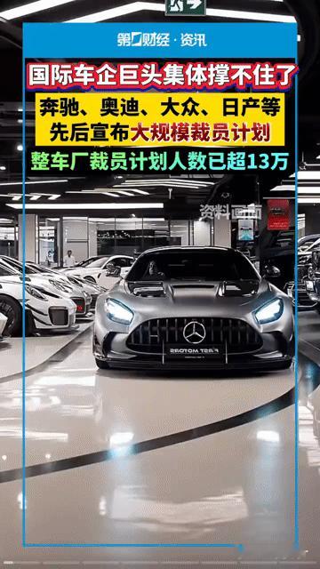 还在羡慕汽车行业高薪?超13万汽车人即将面临失业危机! 你以为汽车行业还是“铁饭碗”聚集地?醒醒吧!奔驰、奥迪、大众、日产等国际车企巨头集体撑不住了,大规模裁员潮汹涌来袭。 奔驰正实施大规模裁员计划,约4000名员工已接受遣散,今年上半年更是推出计划鼓励约3万名员工自愿离职;奥迪计划2029年底前裁员7500人,沃尔沃也已在全球裁员约3000人……据不完全统计,整车厂裁员计划人数已超13万,连采埃孚、博世等头部供应商也卷入其中,裁员总数达3万规模。 这波裁员潮还波及产业链,德国汽车行业过去一年净减岗位约5.15万个,欧洲汽车供应链自2020年以来已消失约8.6万个工作岗位。曾经风光的汽车巨头集体“瘦身”,行业变革的阵痛,让无数汽车人的职场未来充满不确定性。