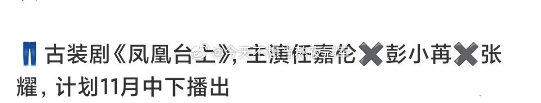 🍉🍉 任嘉伦 彭小冉《凤凰台上》预排11月中旬播出。