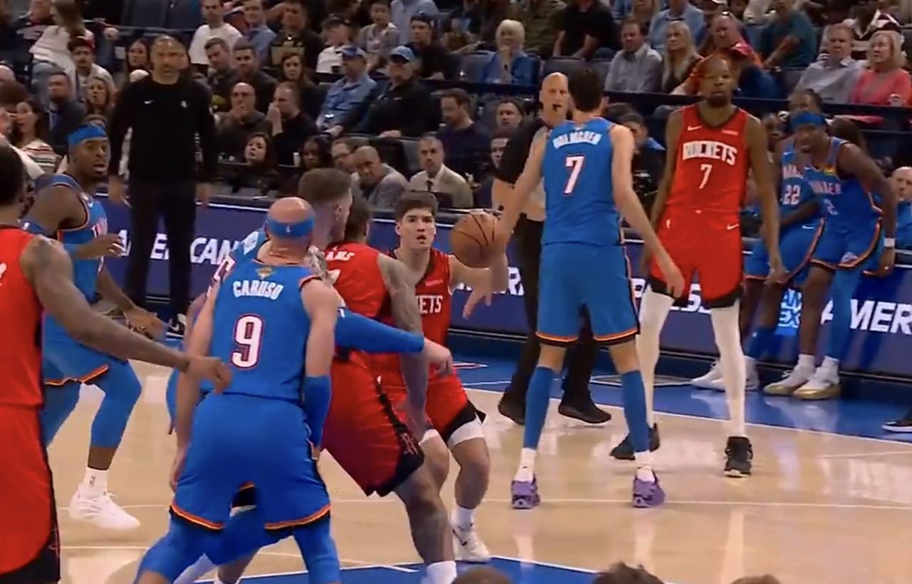 霍姆格伦半场18分领衔,杜兰特稳定输出14+5,火箭半场领先雷霆6分!北京时间2