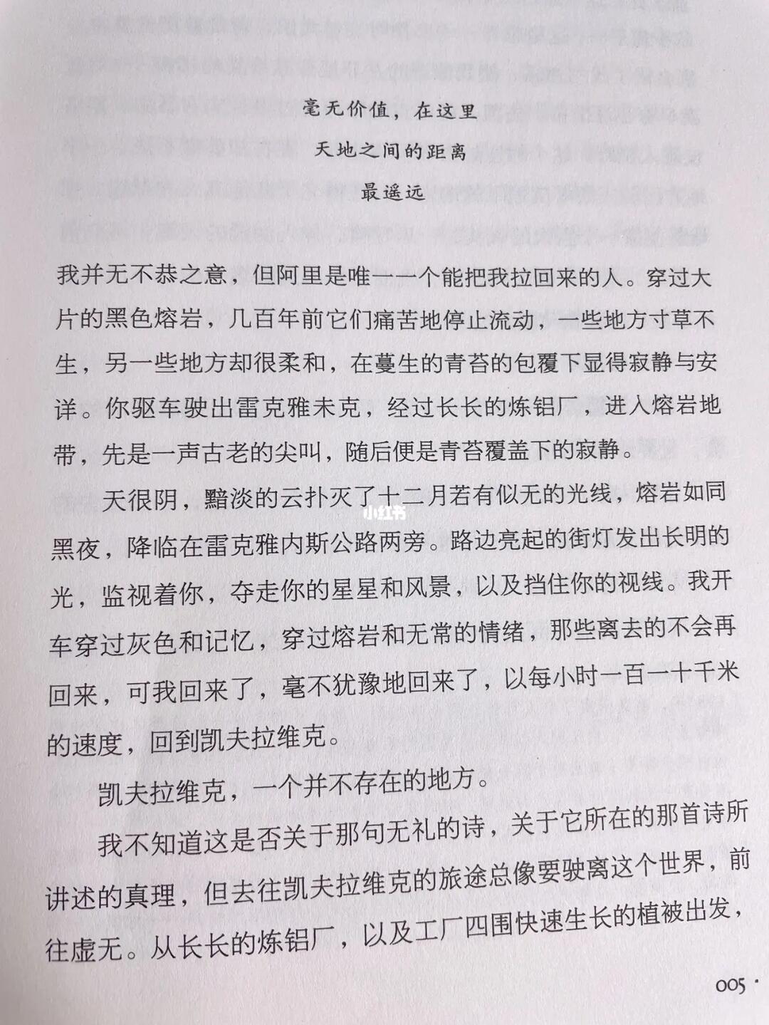 这本小说主要讲的是阿里一家三代人的故事,阿里因为一场失败的婚姻离开了冰岛,去到了哥本哈根,但是他最近收到了父亲的邮件,孩子,我快死了,留意我寄给你的包裹,他知道自己该回去了,随着辞职回到了冰岛,回到了凯夫拉维克,整个冰岛凯夫拉维克的居民最接近死亡,因为这里根本不适合生存。但是阿里12岁的时候来到这里,度过了他的青春时光,又在22岁离开,这是阿里最想离开却又不得不回来的地方。跟着他一起回来的,还有他自己以及他父辈、祖辈的沉重记忆