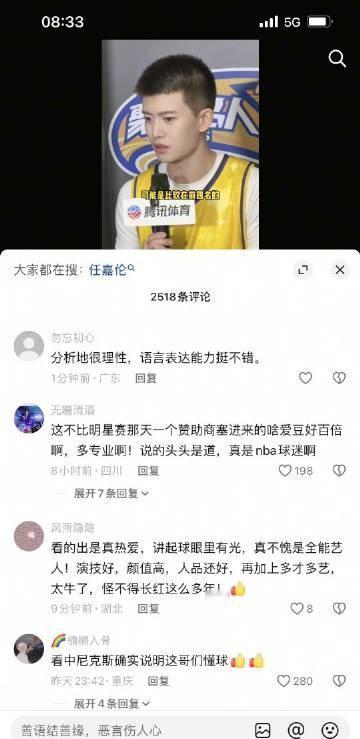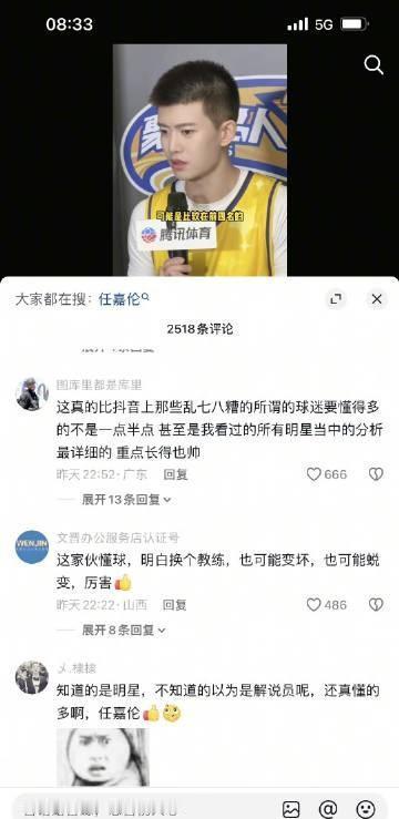 任嘉伦那晚,一个人撑了半场NBA。 红毯走完上场打球,打完直接坐解说台,嘴里蹦的全是挡拆、延误、掩护质量。 不是演的,是真懂。 网友没客气,弹幕刷疯了:“这艺人不靠脸,靠脑子。 ”“比某些专业解说还明白。 ” NBA中国没犹豫,第二天官宣:你就是2025-26赛季形象大使,北京、广州,接着来。 腾讯数据也闷声发大财——他一开口,观众涨了三成八,弹幕里全是战术术语,连“高位策应”都刷出来了。 没人逼他学球,是他自己熬夜看录像、记战术板。 娱乐圈不缺会唱的,缺的是真把别人的事当自己事的人。 他没喊口号,没蹭热度。 只是把一场表演赛,干成了篮球科普课。 球迷买账,不是因为他是明星。 是因为他让你觉得——这球,真有意思了。