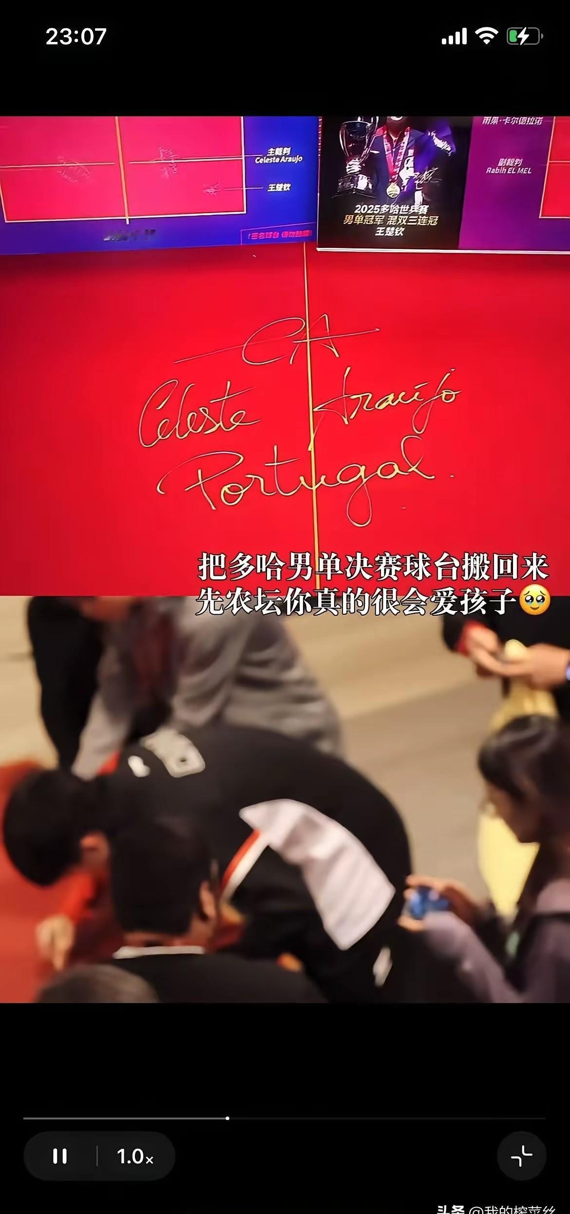 张雷把王楚钦夺冠那张桌子搬回了北京队。 不是摆设,是火种。 那张桌,王楚钦站上去赢了世界,张雷就把它从多哈扛回来,摆在训练馆正中央。 年轻人每天训练前一眼看见它,不用喊口号,心里也明白:冠军不是天上掉的,是踩着这木头板子练出来的。 当年张雷在基层一眼瞅中王楚钦,没说啥大话,就跟着他练。 现在他不靠鸡汤,拿一张桌说话。 球桌不说话,但铭牌刻着名字。 下个月,王楚钦要回来,跟一群十来岁的小孩在这张桌上打一局。 不是表演,是传承。 孩子摸着桌边的刻字,手有点抖。 张雷在旁边,一声不吭。 但眼神比任何话都重。