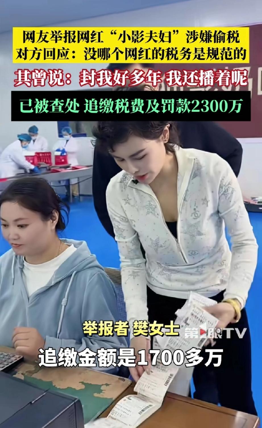真是嚣张至极!网红“小影夫妻”遭网友举报偷税漏税,查证后被追缴税款1700多万,