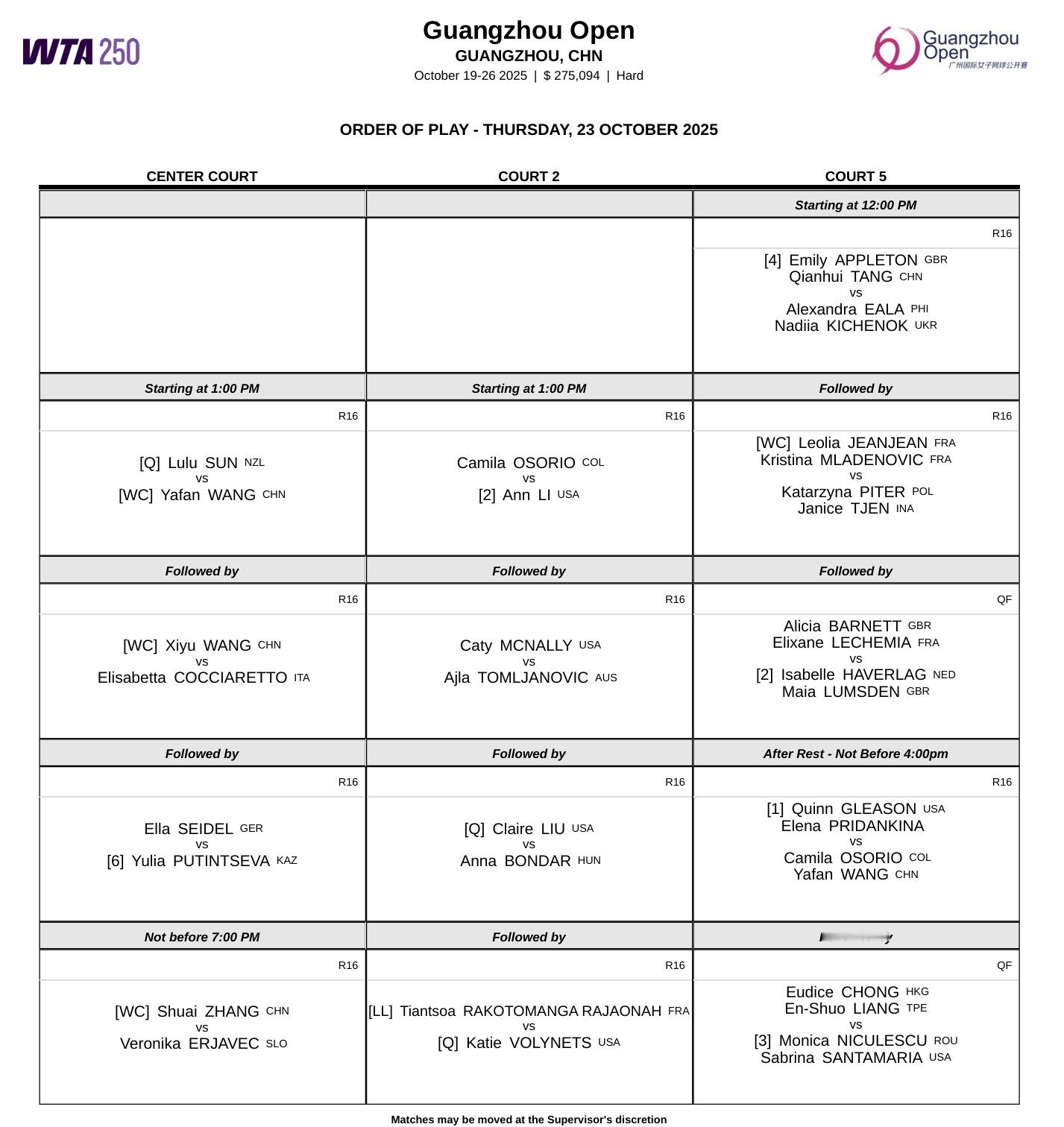 🎾WTA250广州站