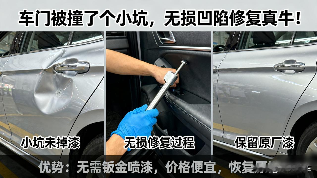 车门被撞了个小坑,无损凹陷修复真牛! 车门被隔壁车开门撞了个小坑,没掉漆。没选