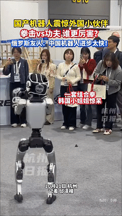 不看不知道,现在机器人的发展居然这么快了。 今日,杭州举行的一场展览会上,国产机器人又一次震惊了世界,不仅行走自如,更是能像李小龙一般熟练的使用中国功夫,咏春、太极拳等等招式应用自如,颇有武术大师的风范。 从视频中可以看到,在工作人员的操控下,两个机器人一个打拳击,一个打出了像咏春、太极之类的传统武术,一招一式都有种李小龙再世的风采。 机器人的一番操作,不仅惊呆了网友,就连见过大场面外国记者都忍不住惊叹,这发展速度实在是太超出人的想象了。 看到这一幕,也让我想起前两年春晚的时候,那时候机器人在春晚上刚刚亮相,动作还很僵硬,看着就像是脑血栓一样碰一下就倒。 可再看现在的机器人,已经可以熟练做出各种动作,不得不佩服我们的工程师,这背后是付出了多少的辛苦才能做到这一步。 相信以后我们的机器人技术肯定会越来越强,可能过不了多久,机器人就不再是高高在上的科技,而是全面来到我们的生活中伙伴了,