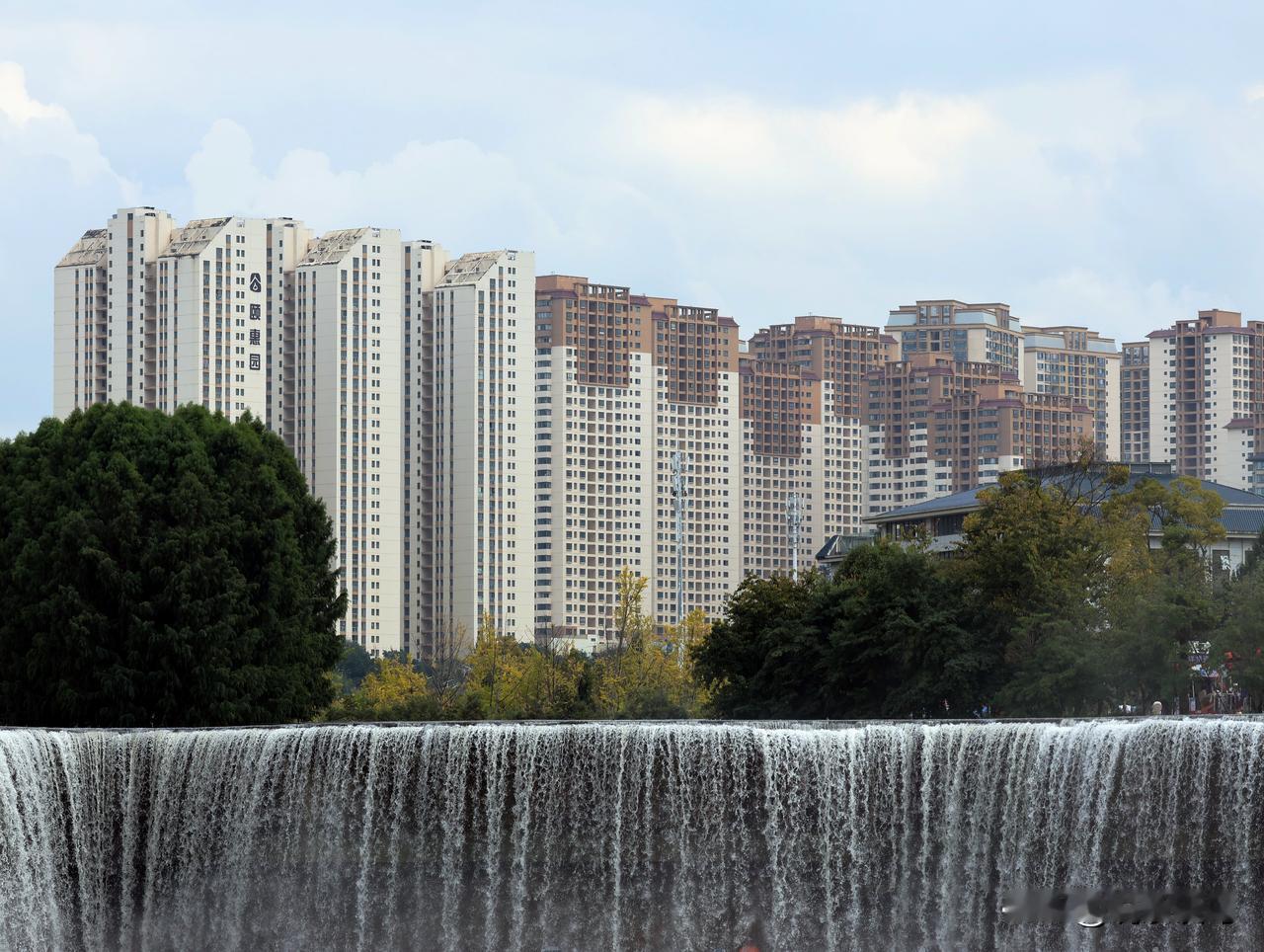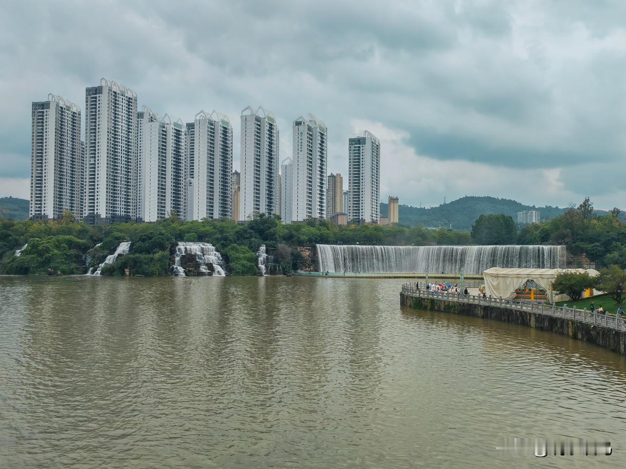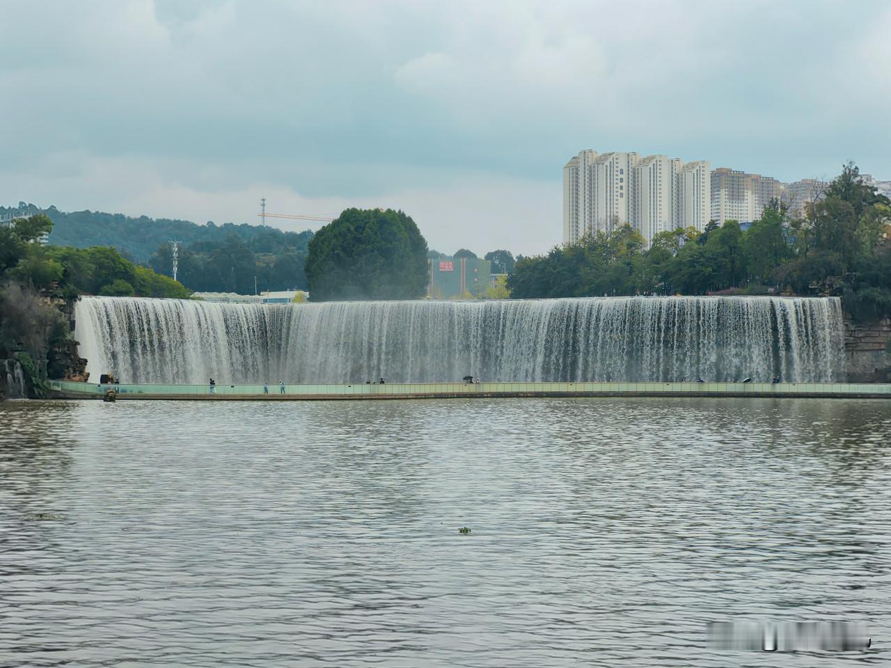 秋眺亚洲最大的人工瀑布! 今天霜降。 从远处看看这个位于昆明瀑布公园的亚洲最大人工瀑布。