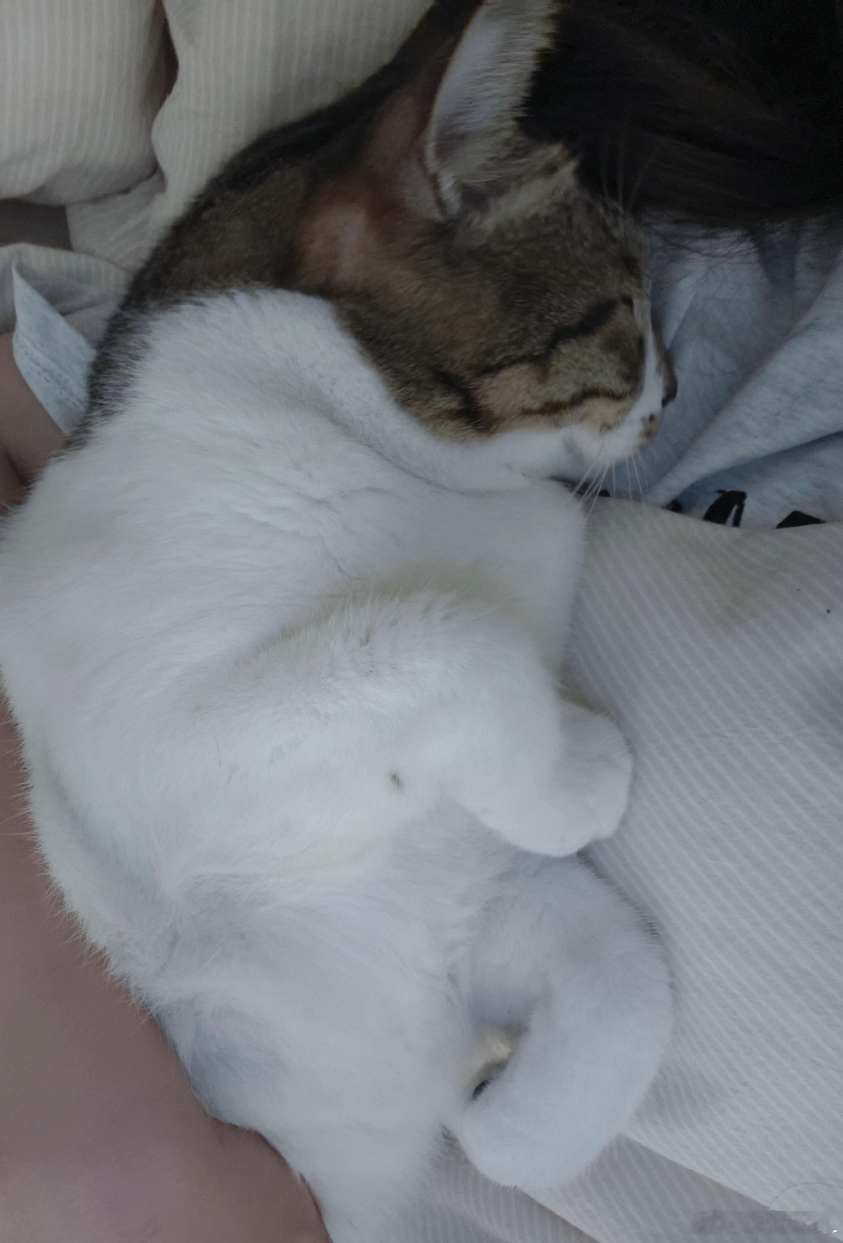 广东天气终于也凉快啦!抱着我家猫睡懒觉好舒服啊!没白养!!能给我暖被窝!![奶牛
