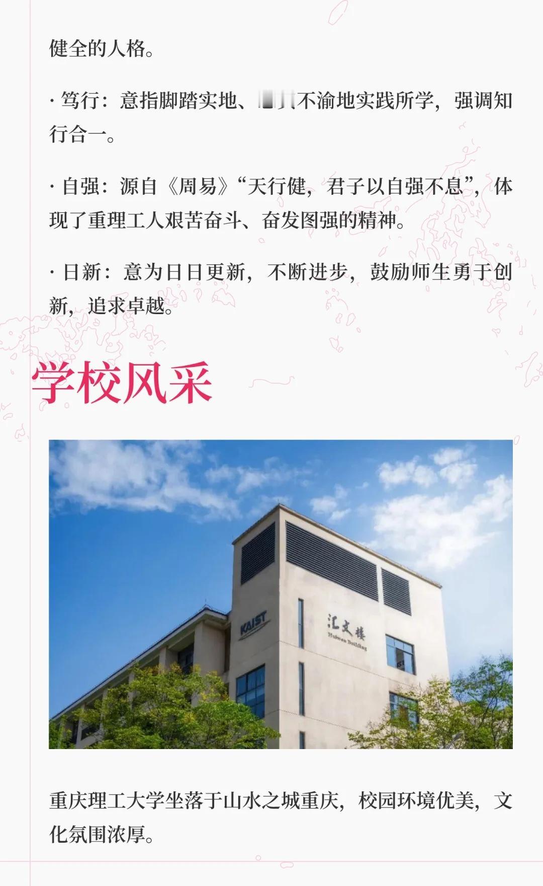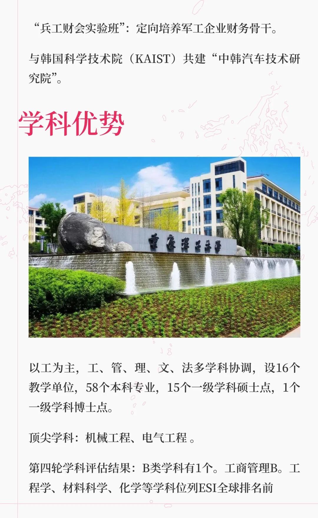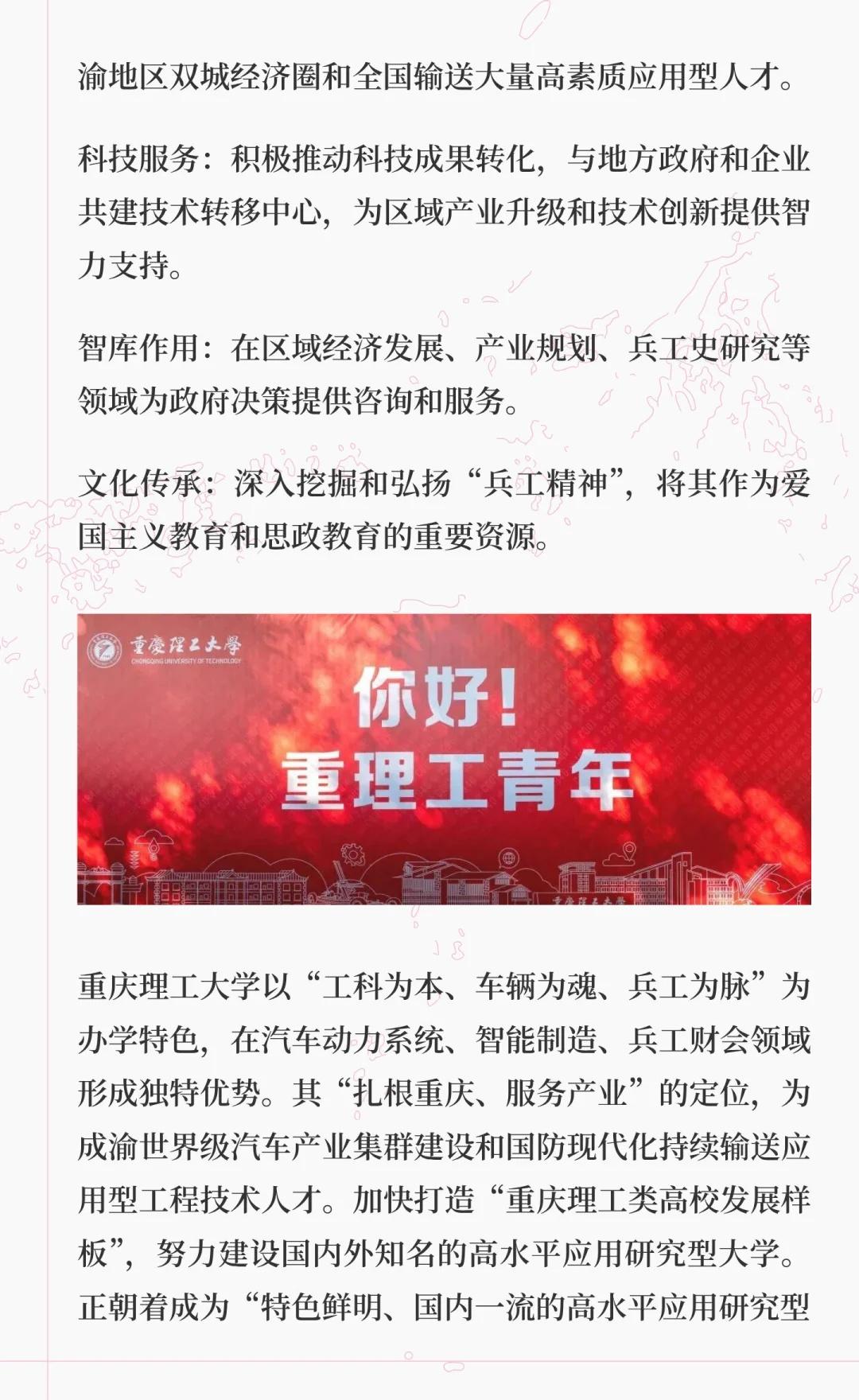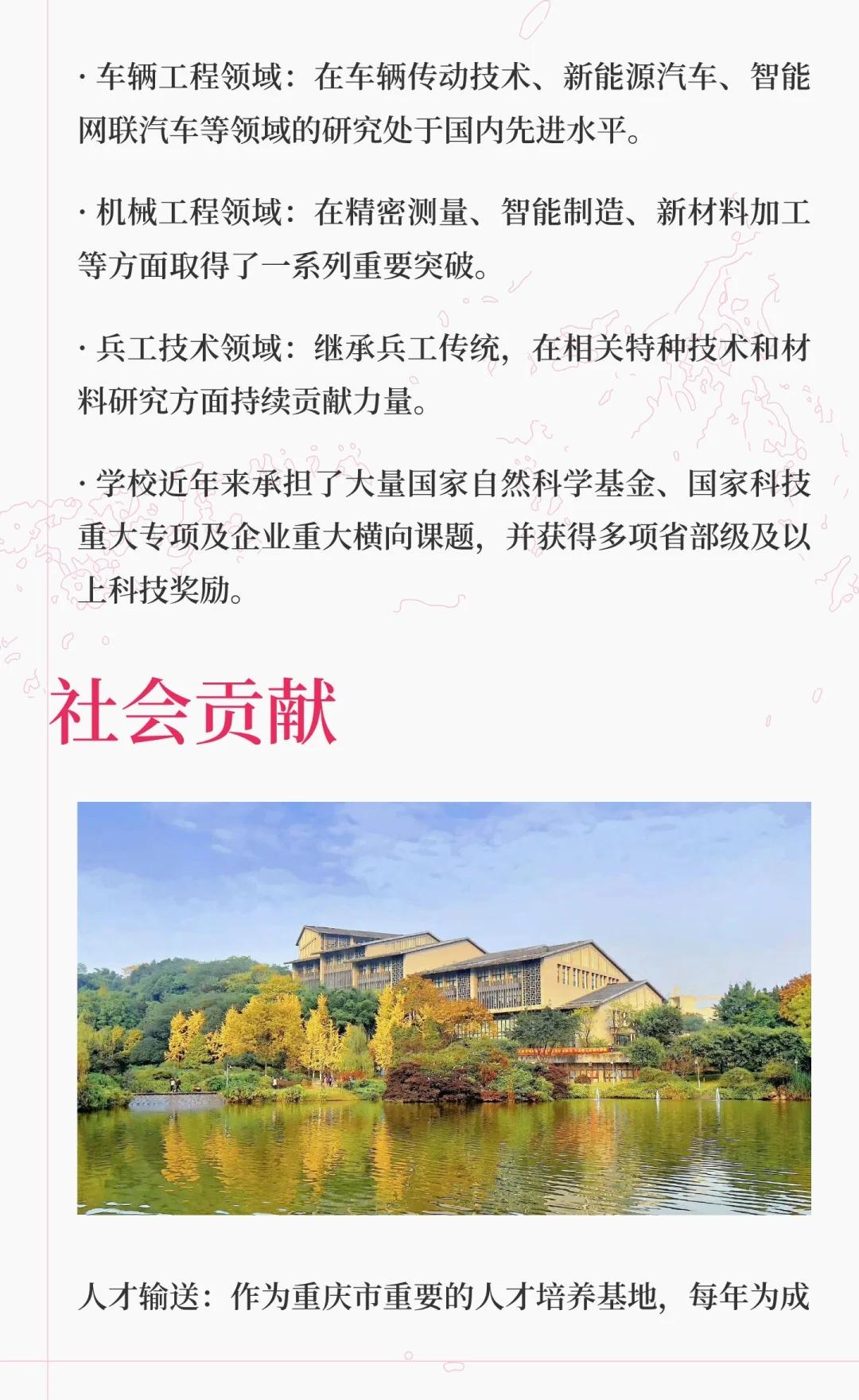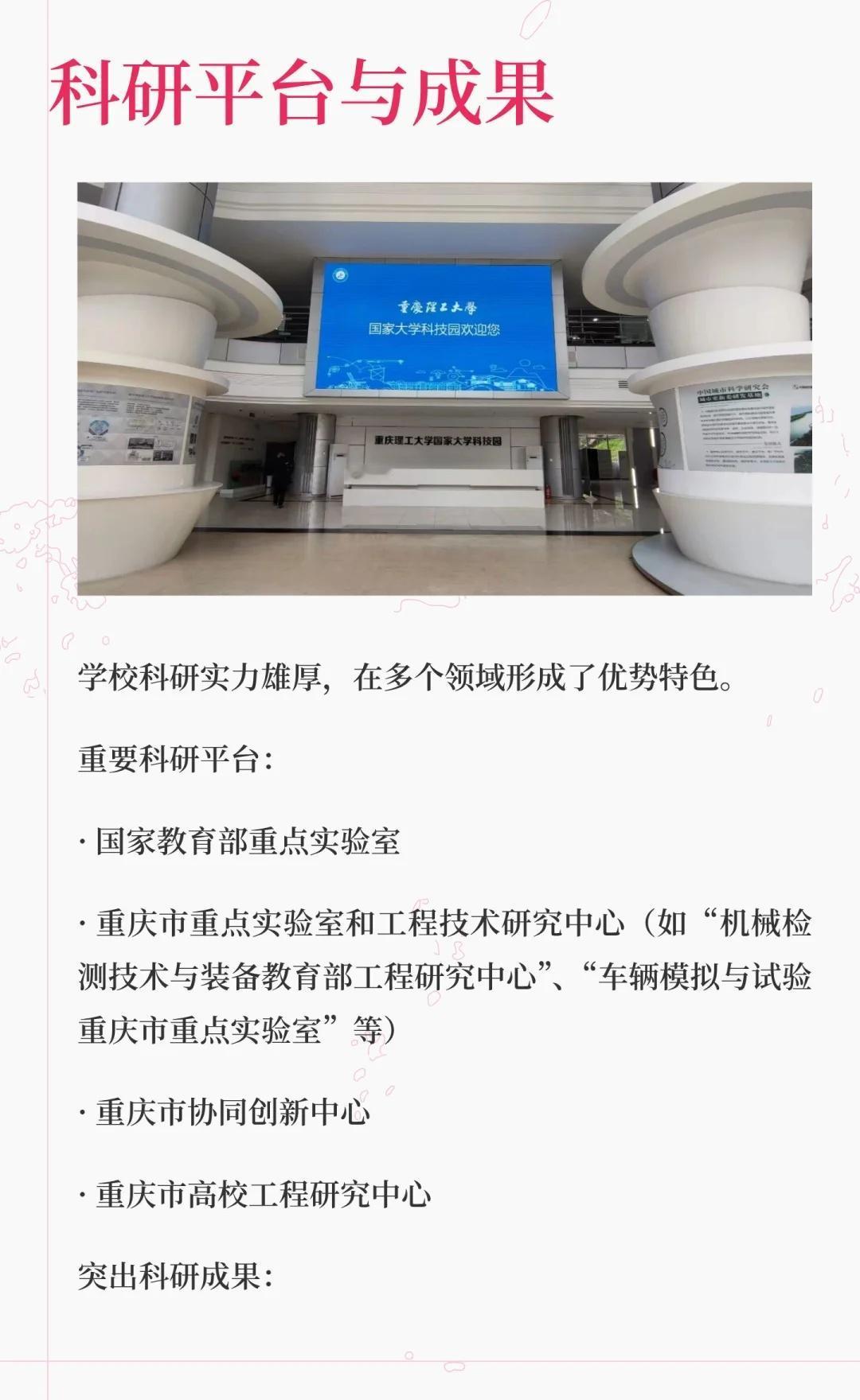 重庆理工大学,简称“重理工”,位于重庆,是中央与地方共建的市属本科高校,以车辆工程、机械工程为核心优势,被誉为“西南汽车工程师摇篮”。学校拥有多个国家级和省级一流专业,致力于培养高素质应用型人才,推动科技成果转化,服务区域产业升级。高校 大学 院校规划 向往的大学 欢迎报考 重庆理工大学 美丽校园等你来