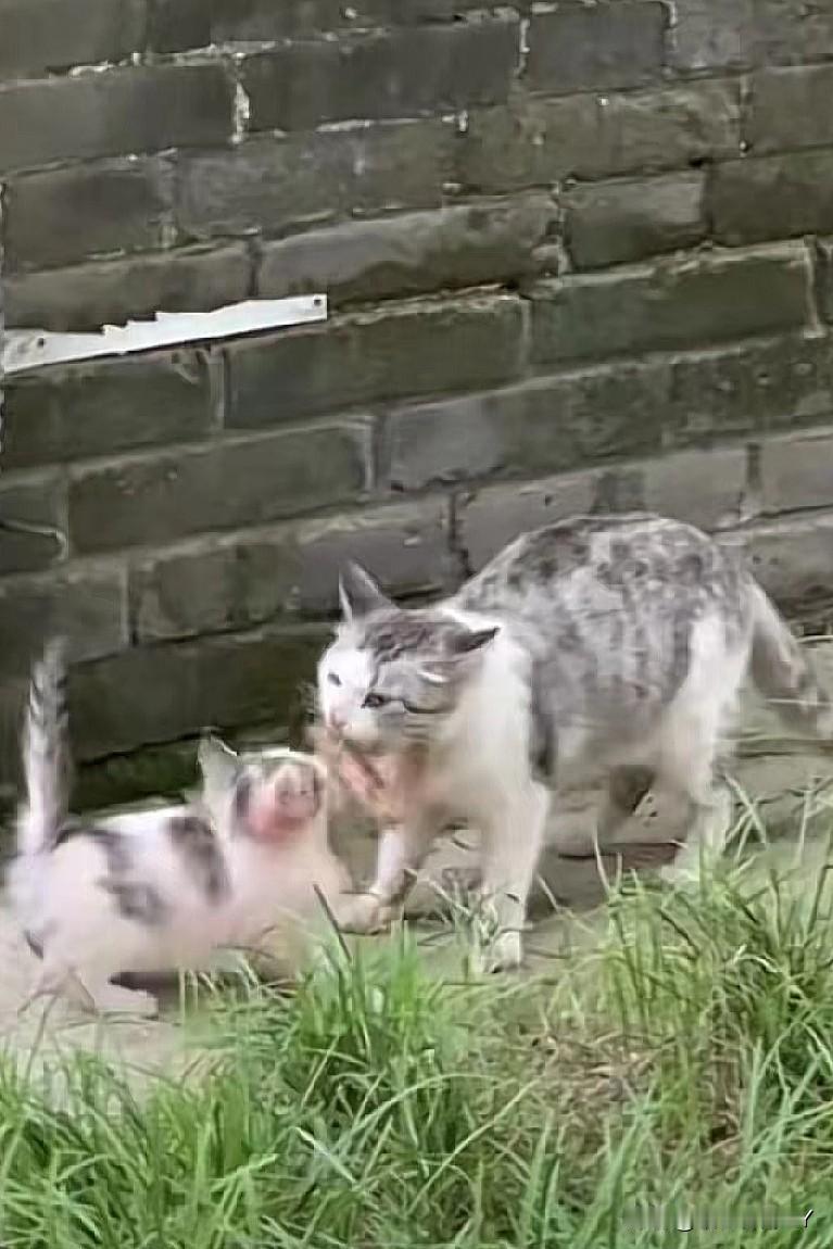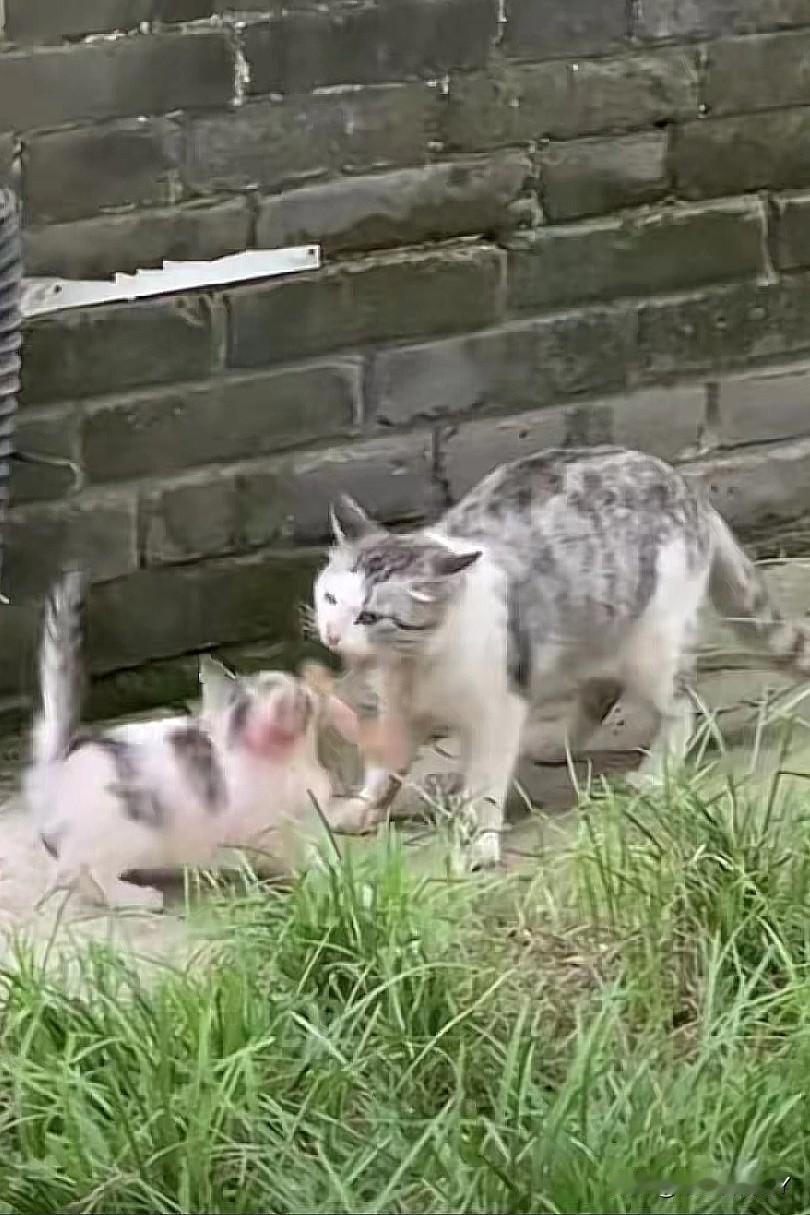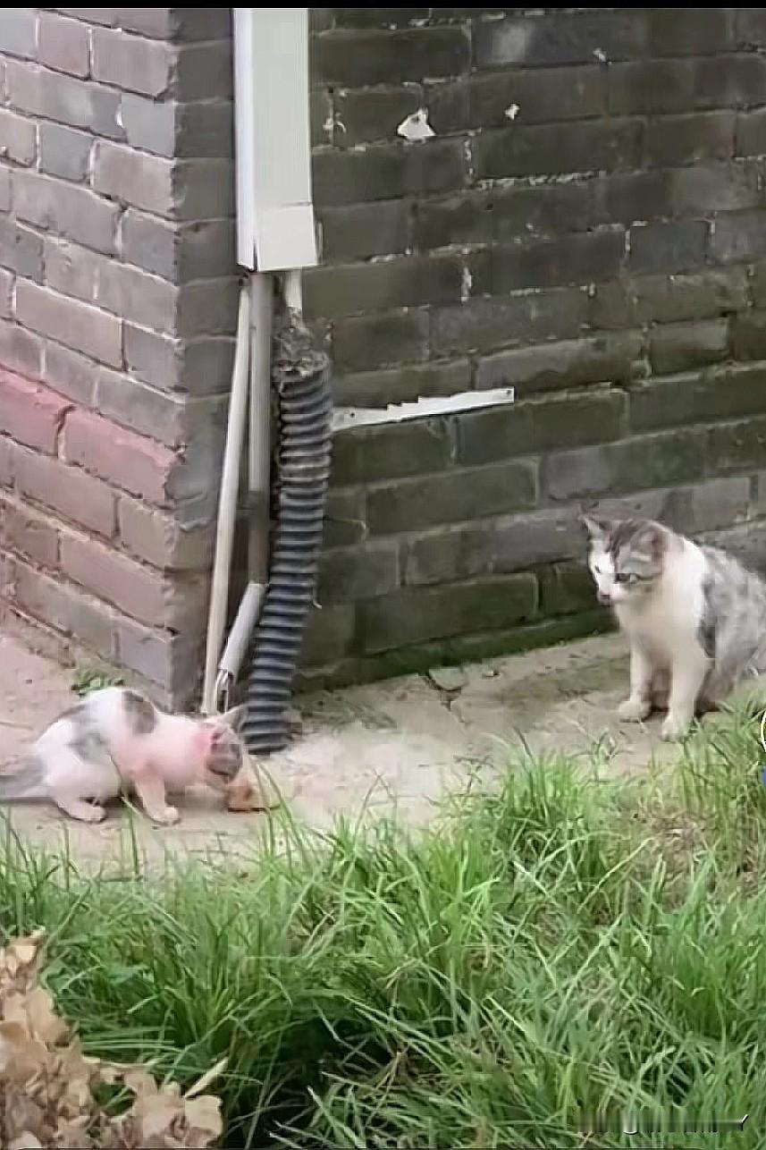斑驳的墙角边,花猫妈妈叼着一条熟鱼,兴冲冲地跑过来,它蓬松的毛上粘着尘土,却掩不住眼中的光亮。 小猫看见妈妈回来,赶忙去迎接,猫妈妈轻轻把鱼放在小猫面前,随后立刻退到一旁,蹲坐下来,静静地凝视着…… 饥肠辘辘的小猫立刻叼起鱼,大口吃起来,嘴角发出“呜哩、呜哩”的声音,还夹杂着吞咽声~ 它吃得很满足,好像许久没吃到过美味的食物了。 猫妈妈始终温柔地注视着猫孩子,偶尔走过来抬起爪子轻轻蹭蹭小猫脑袋,全然忘记了自己的饥饿。 这一幕充满了治愈与感动,母爱无关物种与境遇。 就像花猫妈妈拼尽全力带来的熟鱼,那是最纯粹的守护。 这份跨越物种的本能付出,与人类母亲的爱并无二致,它总能轻易触动我们心底里最柔软的角落。