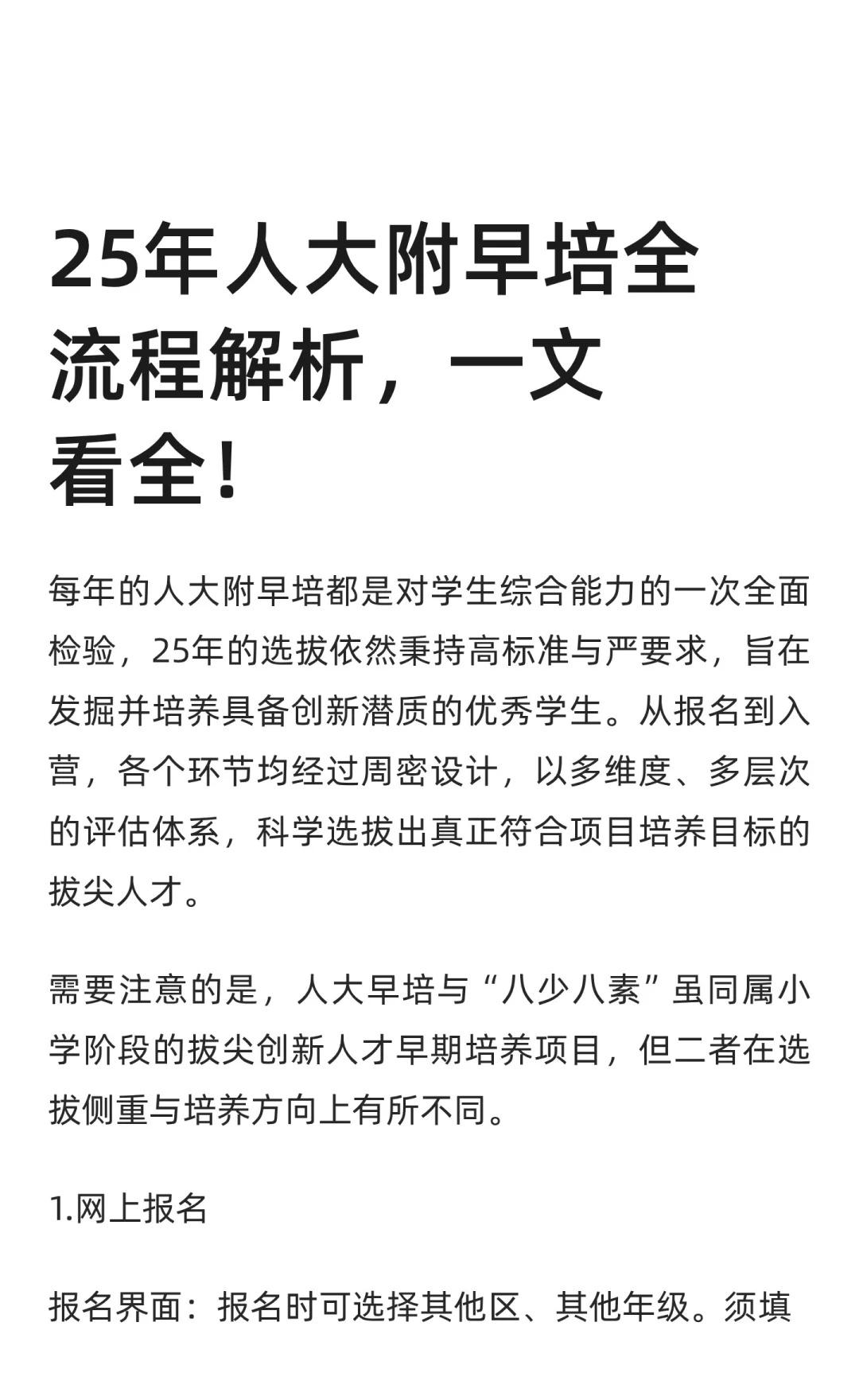 25年人大附早培全流程解析,一文看全! 择校 学业规划 升学 多元升学途径 学习规划 数学竞赛 人大附 早培