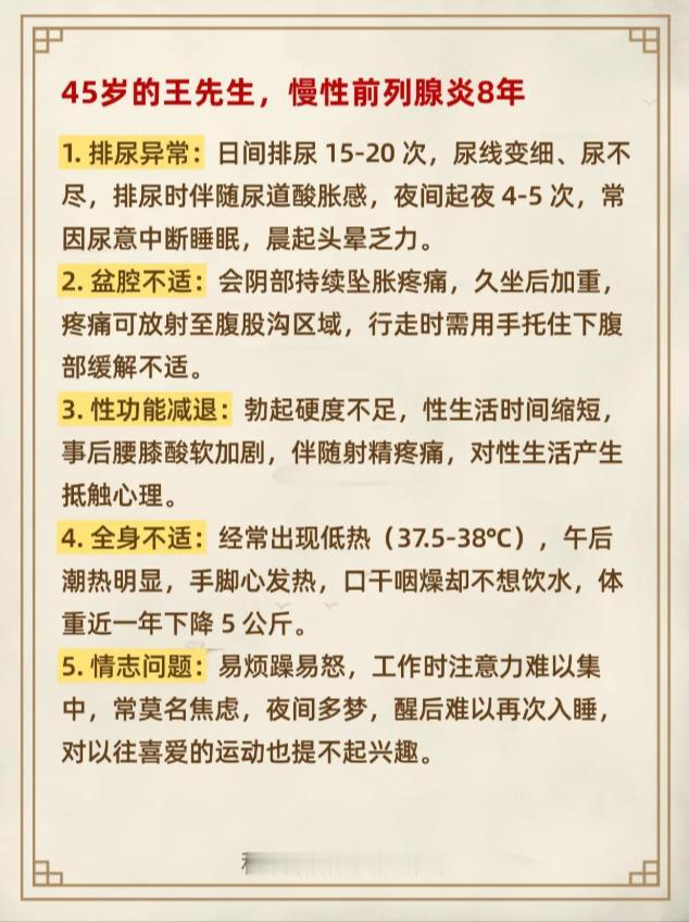 从尿频繁、没力气,到起夜少、精神好,45岁王先生8年前列腺炎,靠这3步调理翻身!