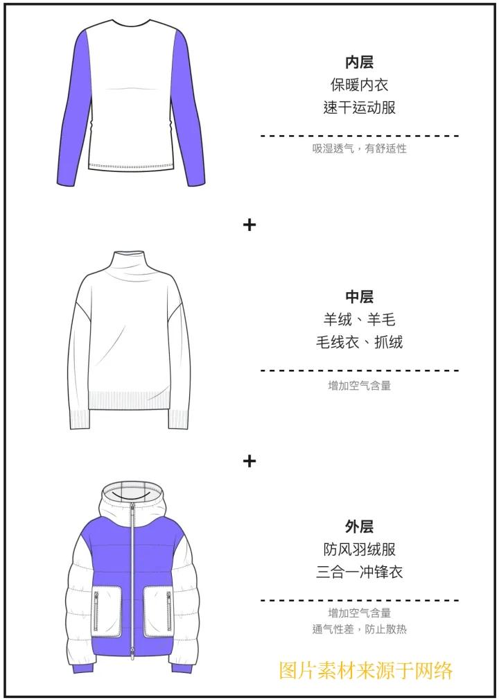 羽绒服里藏个“空气层”!一个九成人不知道的保暖技巧,暖到像开了暖气 三件套秒杀五层粽!羽绒服这么穿暖到像揣太阳 最近这天气,冷到出门就像进冰箱冷冻层!不少人把毛衣秋衣打底衫全裹身上,活像个人形粽子。结果风一吹,照样冻得直哆嗦——问题出在哪儿?穿得多不如穿得巧! 保暖秘诀:造个“人体暖气片” 咱身体自带发热功能,关键要把热量锁在衣服里。秘诀就是空气层!衣服和身体之间的静止空气能存热,但裹成五六层反而坏事:空气太厚会形成对流,热量嗖嗖跑,层数太多还会压扁空气层。 黄金穿搭公式:防风+储能+透气 1. 外层当盾牌:选羽绒服、冲锋衣这种能扛风的,最好本身蓬松能存空气。 2. 中层当充电宝:摇粒绒、薄羽绒内胆负责加温,怕热的兄弟可省略这层。 3. 内层当管家:保暖内衣选速干透气款,汗气不滞留才不影响外层保温。 羽绒服选购避坑指南 · 先揪标签看新国标GB/T 14272-2021,旧版可能埋雷。 · 绒子含量别低于50%,95%封顶,这玩意儿才是真·暖气片。 · 充绒量不是越重越好,南方选100-150克,北方往200克以上瞅。 · 蓬松度650+算及格,800+能横着走,1000的属于雪山战神装备。 记住这三层魔法,比裹十件秋衣都管用!这个冬天,暖不暖你说了算。