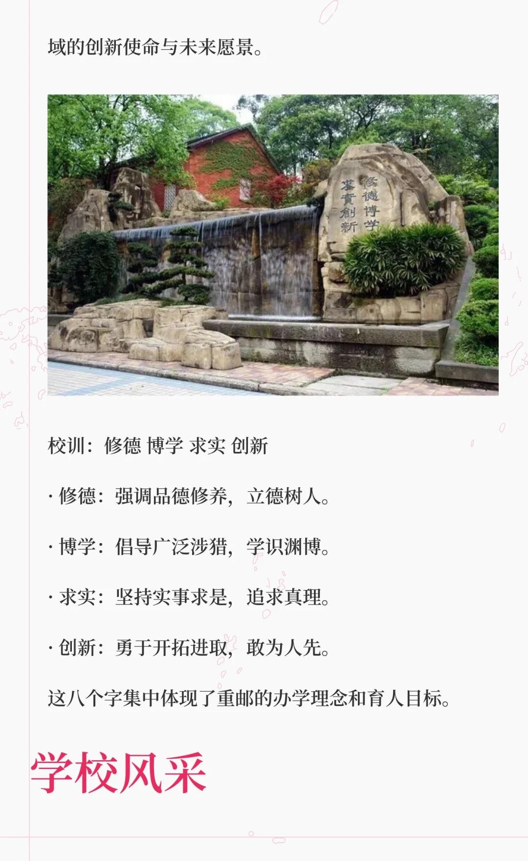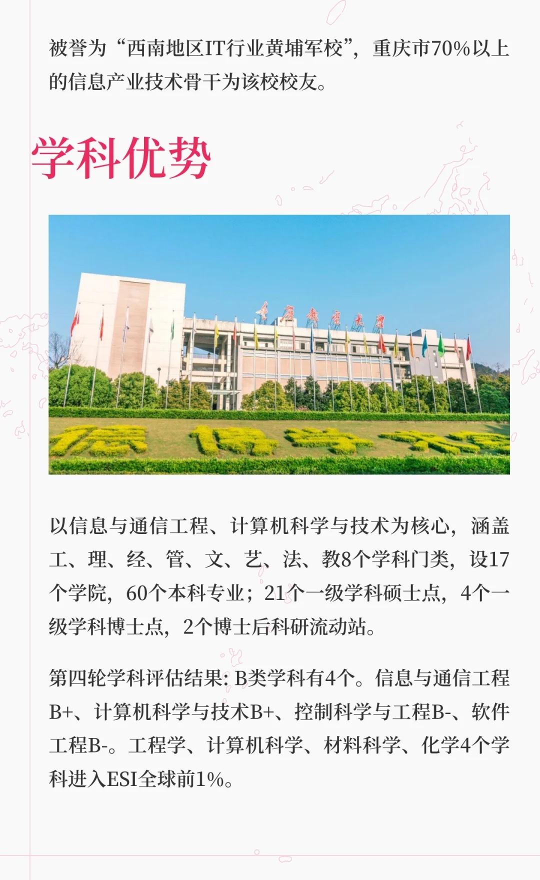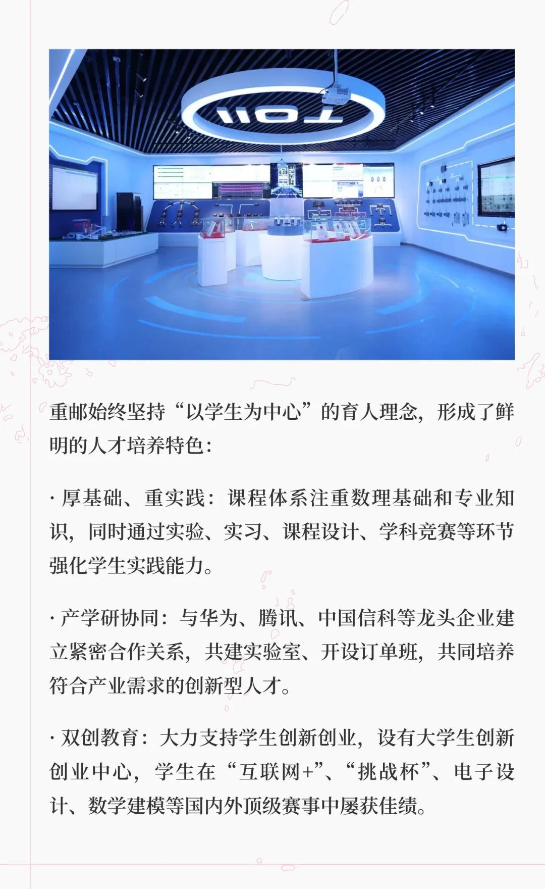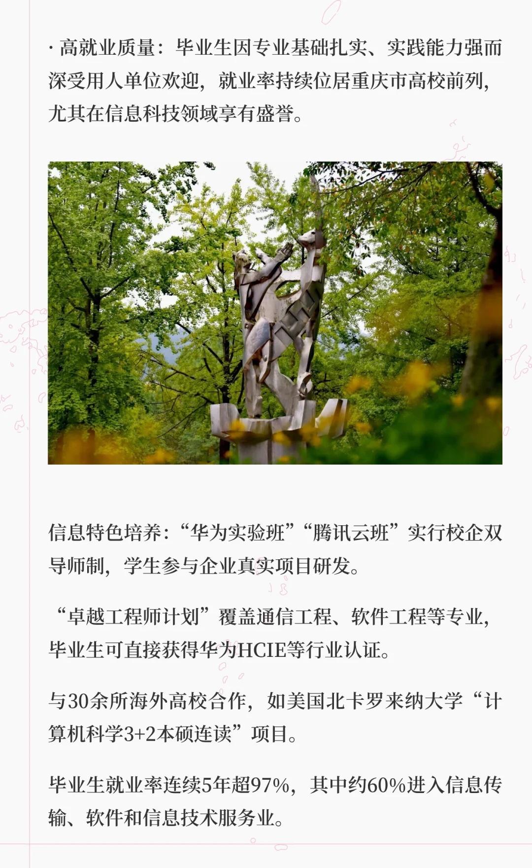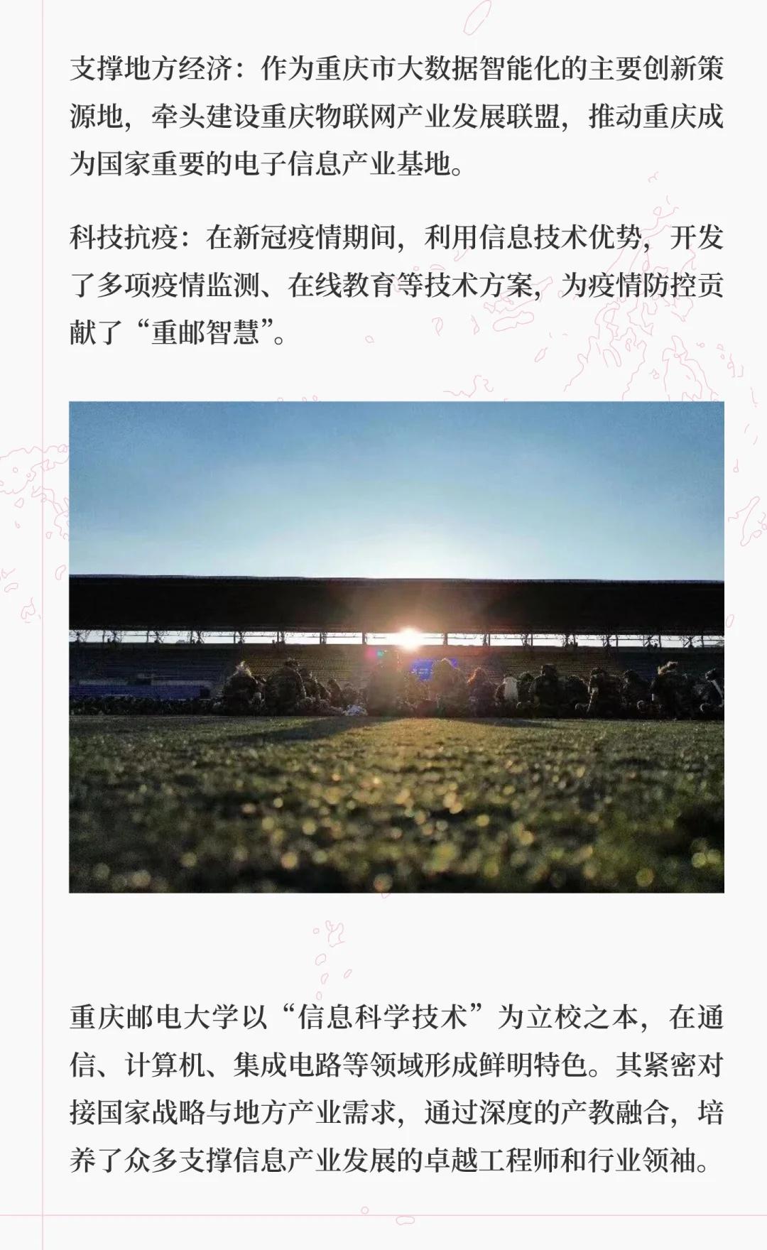 重庆邮电大学是信息通信领域的教学研究型大学,拥有多个国家级科研平台和特色专业,培养了大量IT行业人才,服务国家战略与地方经济,致力于建设高水平大学。高校 大学 院校规划 别人的大学 梦想的大学 我的高质量大学 欢迎报考 重庆邮电大学