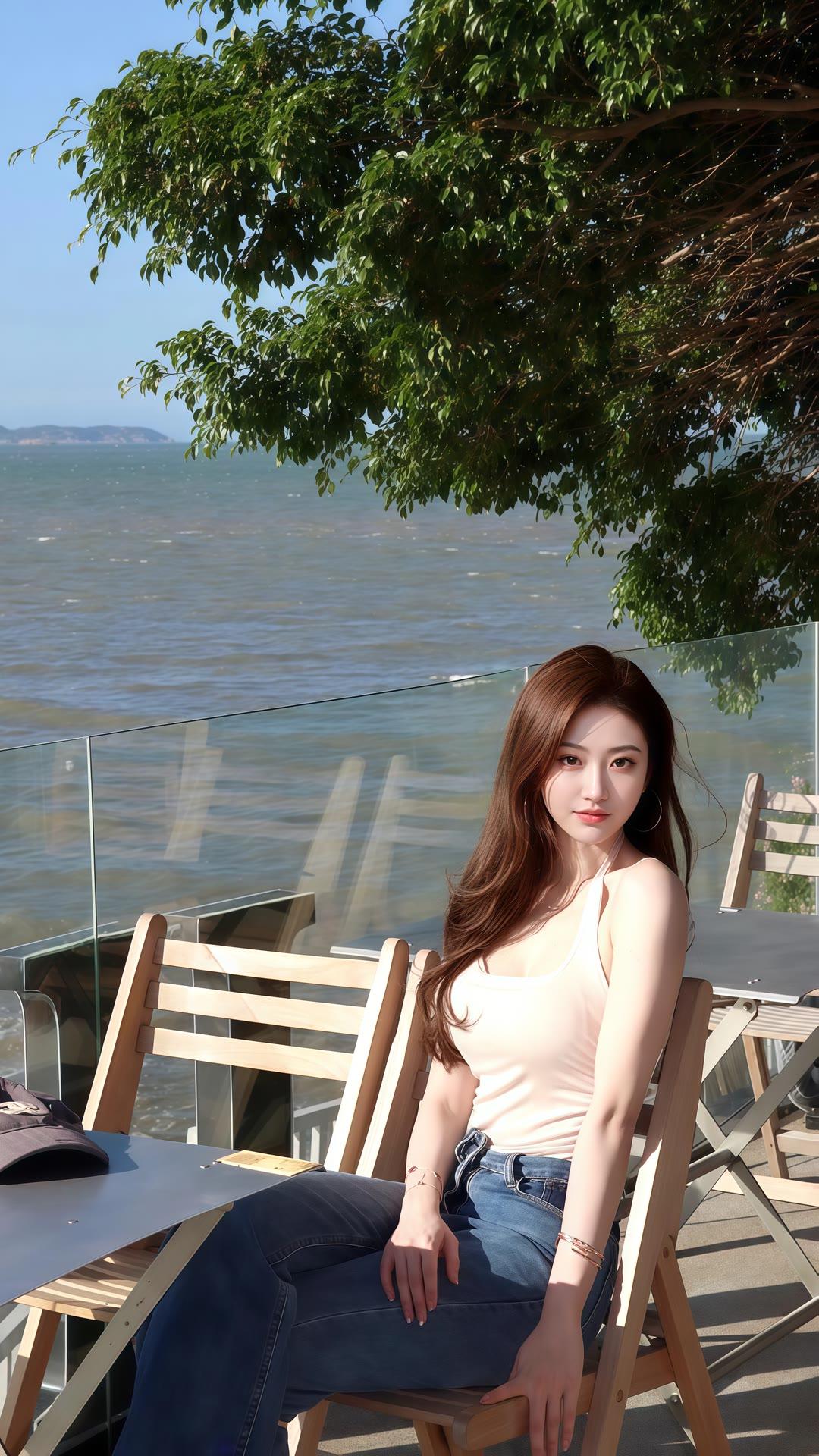 阳光下的甜美少女,轻抚发丝,尽显温柔与自信。自然清新美少女 自然甜系少女