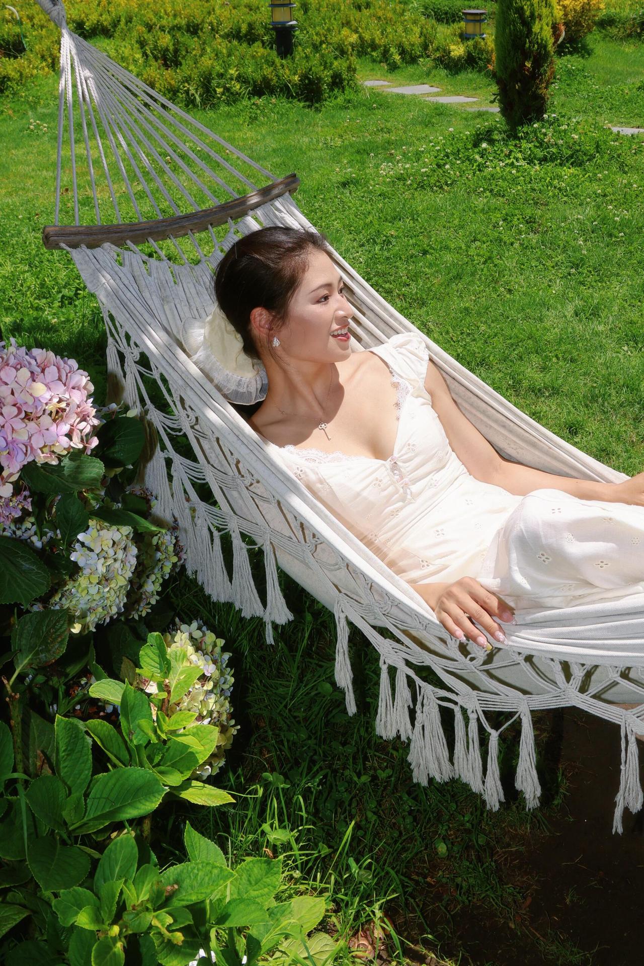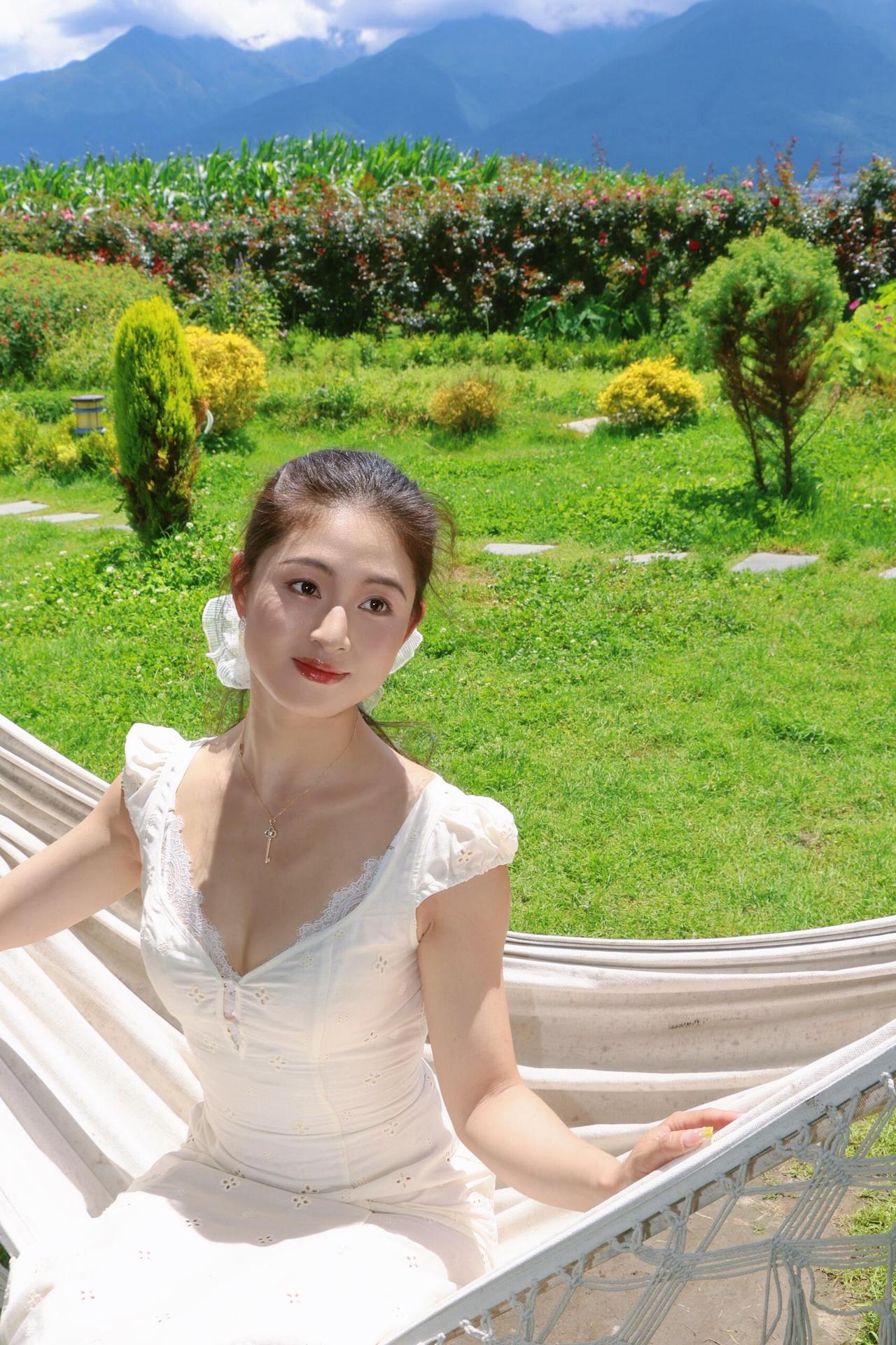 : 阳光碎成金箔, 洒在花海与远山的褶皱里。 着一袭白裙, 在大理的风花雪月中漫游。 绣球摇着粉紫的梦, 狼尾草拂过脚踝, 苍山的蓝在天际洇开。 吊床晃着慵懒, 铁艺长椅落满光斑, 每一朵花的绽放, 都像阳光在轻声呢喃, 把日子酿成了诗, 把旅途绘成了帧帧油画, 在这片治愈的天地里, 时光也忍不住放慢了脚步。 摄影心得分享: ①拍户外人像,光线是灵魂。尽量选清晨或傍晚的柔光照,避免正午硬光。 ②利用花海、草木做前景,营造层次;让山峦、建筑当背景,拓展画面纵深。 ③多尝试仰拍、侧拍,捕捉光影在衣摆、发丝的跳跃,像图中借助吊床、长椅打造松弛感,让自然与人物共舞,每张都是故事感满满的大片。