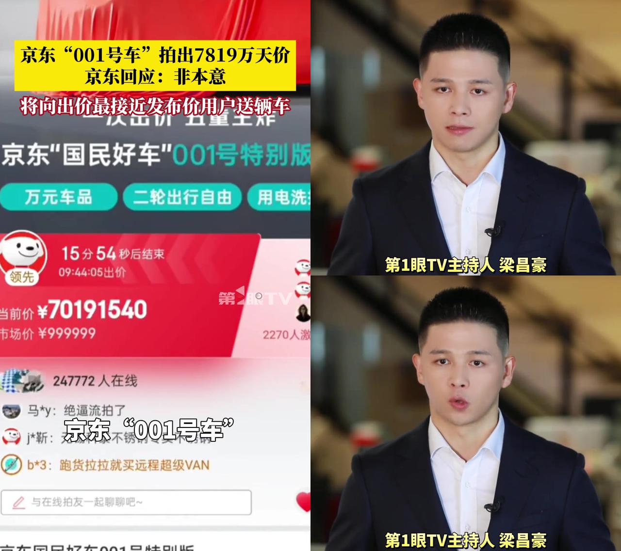 京东100万的车居然拍出7819万!就因为100块钱? 京东那辆001号车,市场价才99万9,结果被拍到7819万!原因就是保证金才100块,加价最多4490块。 有人说100块拍着玩,亏了也不心疼;有人说京东规则漏洞,没设价格上限。 我觉得这100块门槛也太低了,换成10万绝对没人乱喊价! 京东回应称,本意并非如此,计划给最接近原价的用户送车,还在联系那个高价拍的人。 如果是你,会因为100块就随便参与天价竞拍吗?大家怎么看?