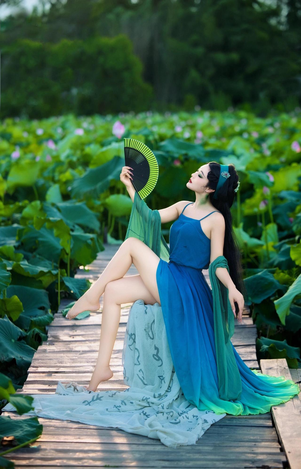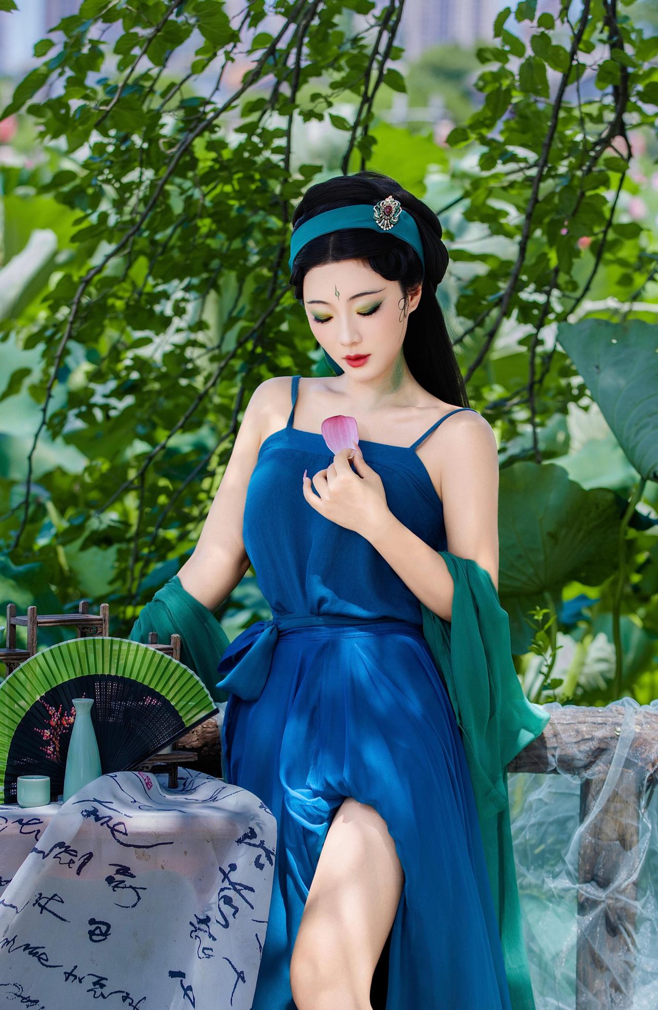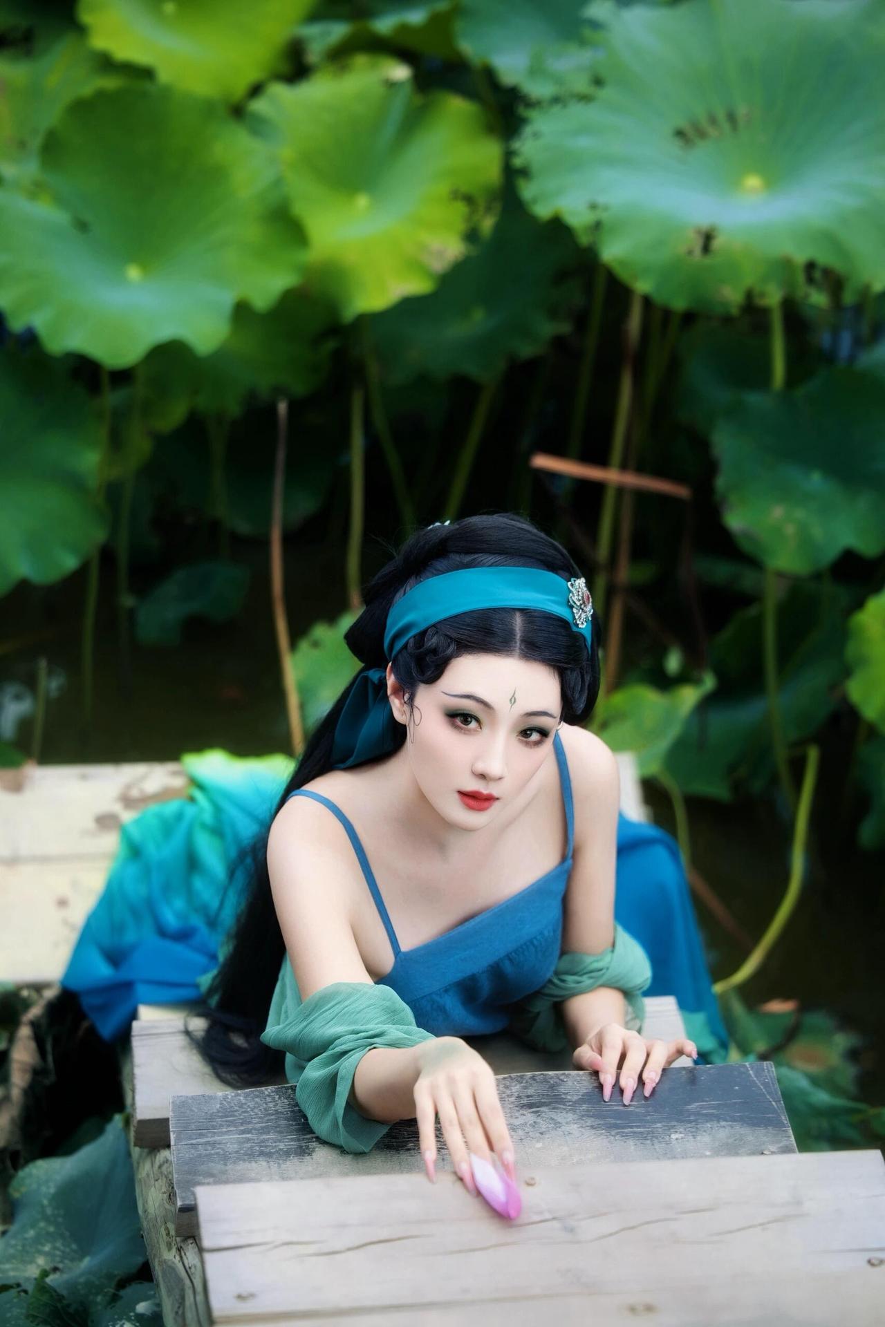 【青蛇】|古风摄影 情分好多种,像这荷池里的风与叶,像她眉眼间的青与蓝。 是