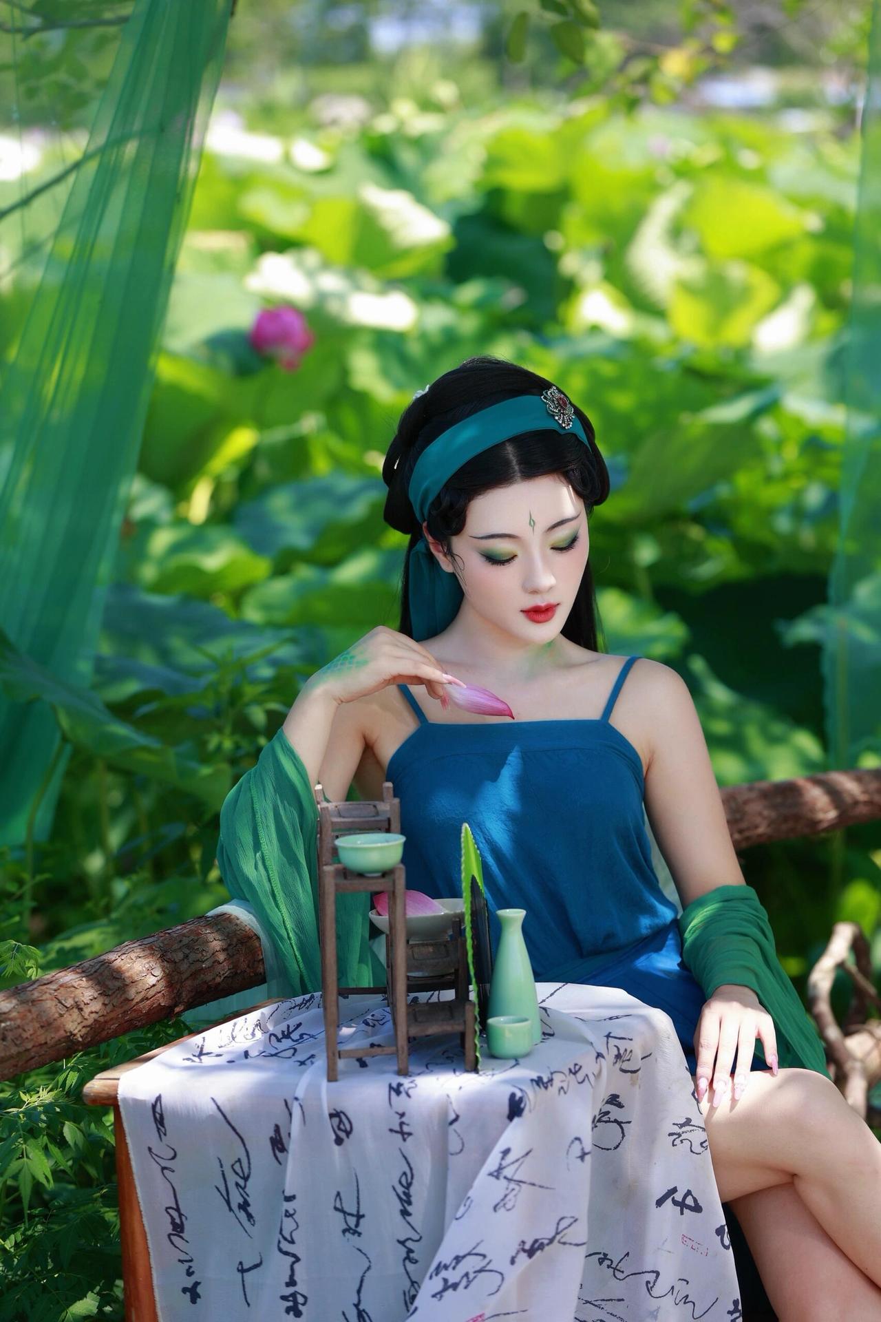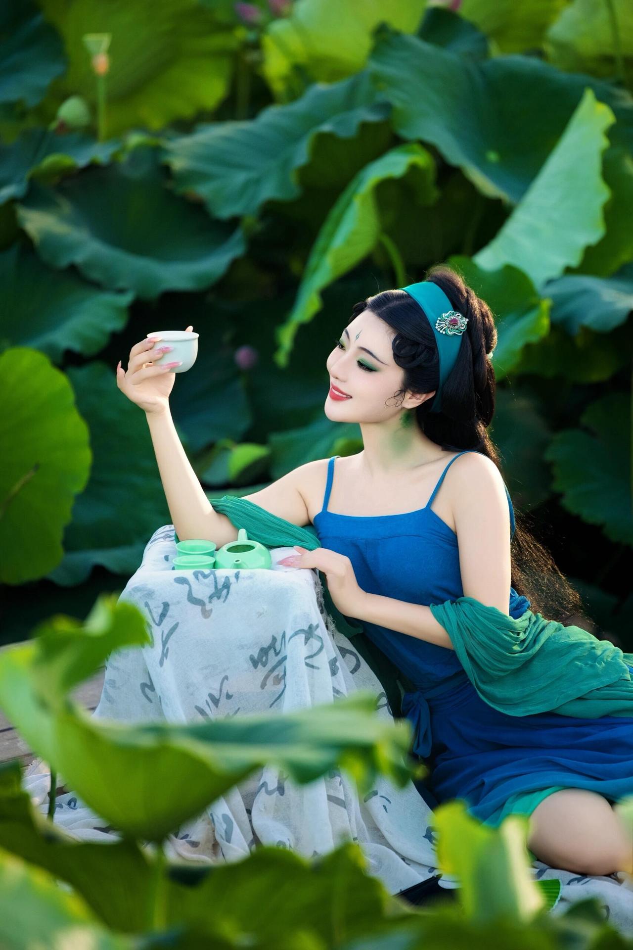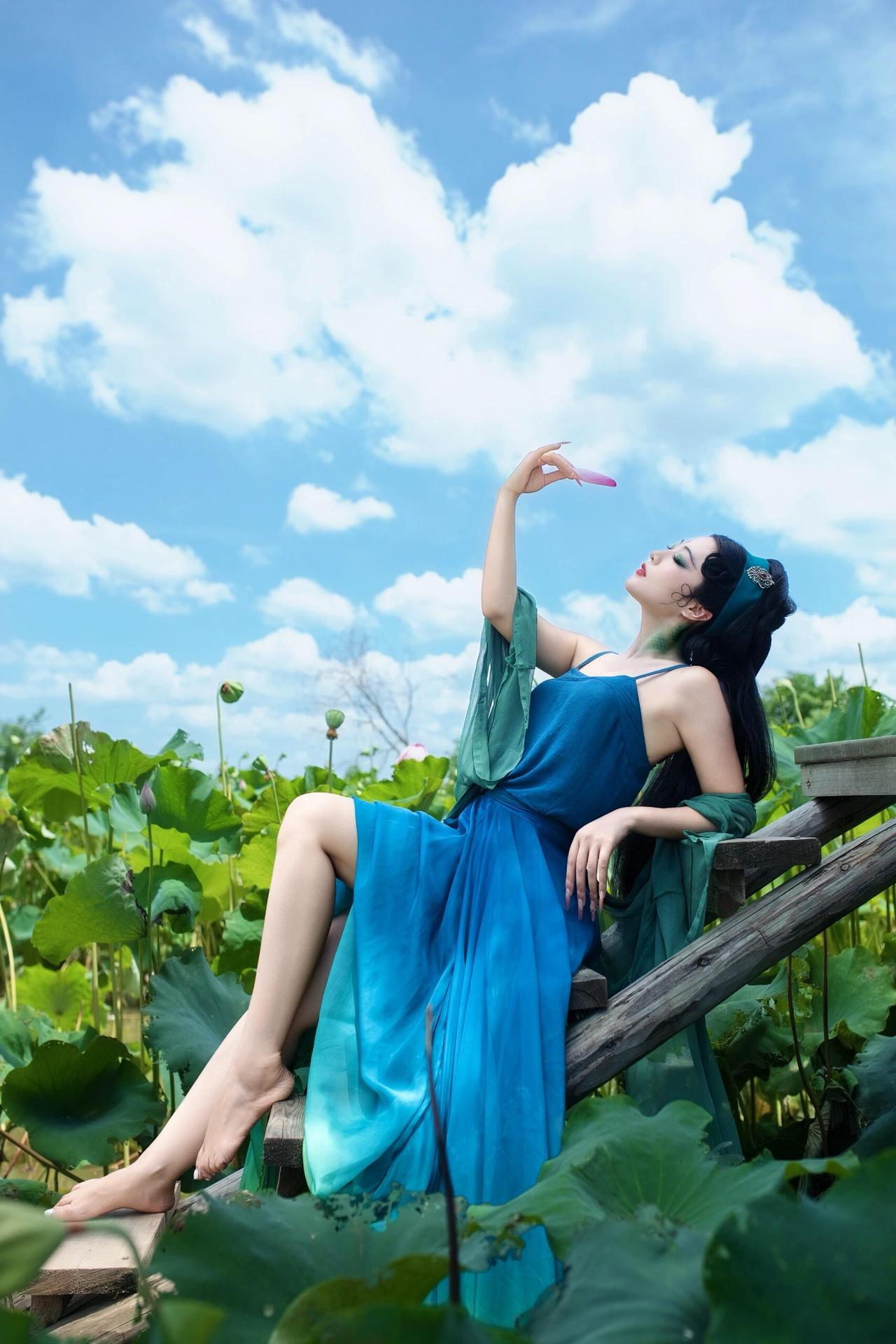 【青蛇】|古风摄影 情分好多种,像这荷池里的风与叶,像她眉眼间的青与蓝。 是