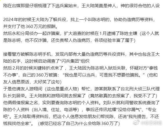 网友整理王大陆逃兵案始末网友整理王大陆事件时间线
