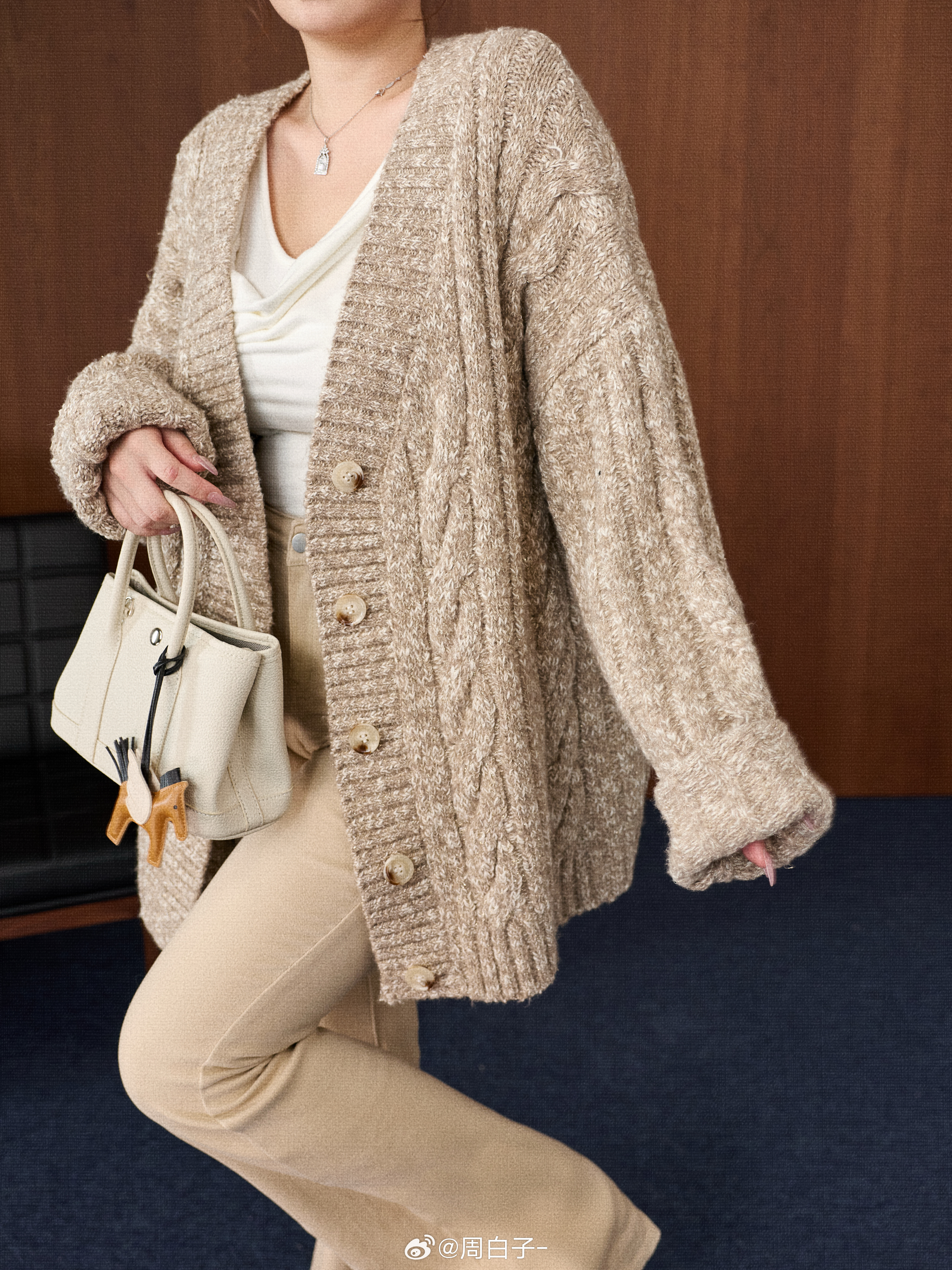宽松大廓形的V领开衫设计 包容性极强