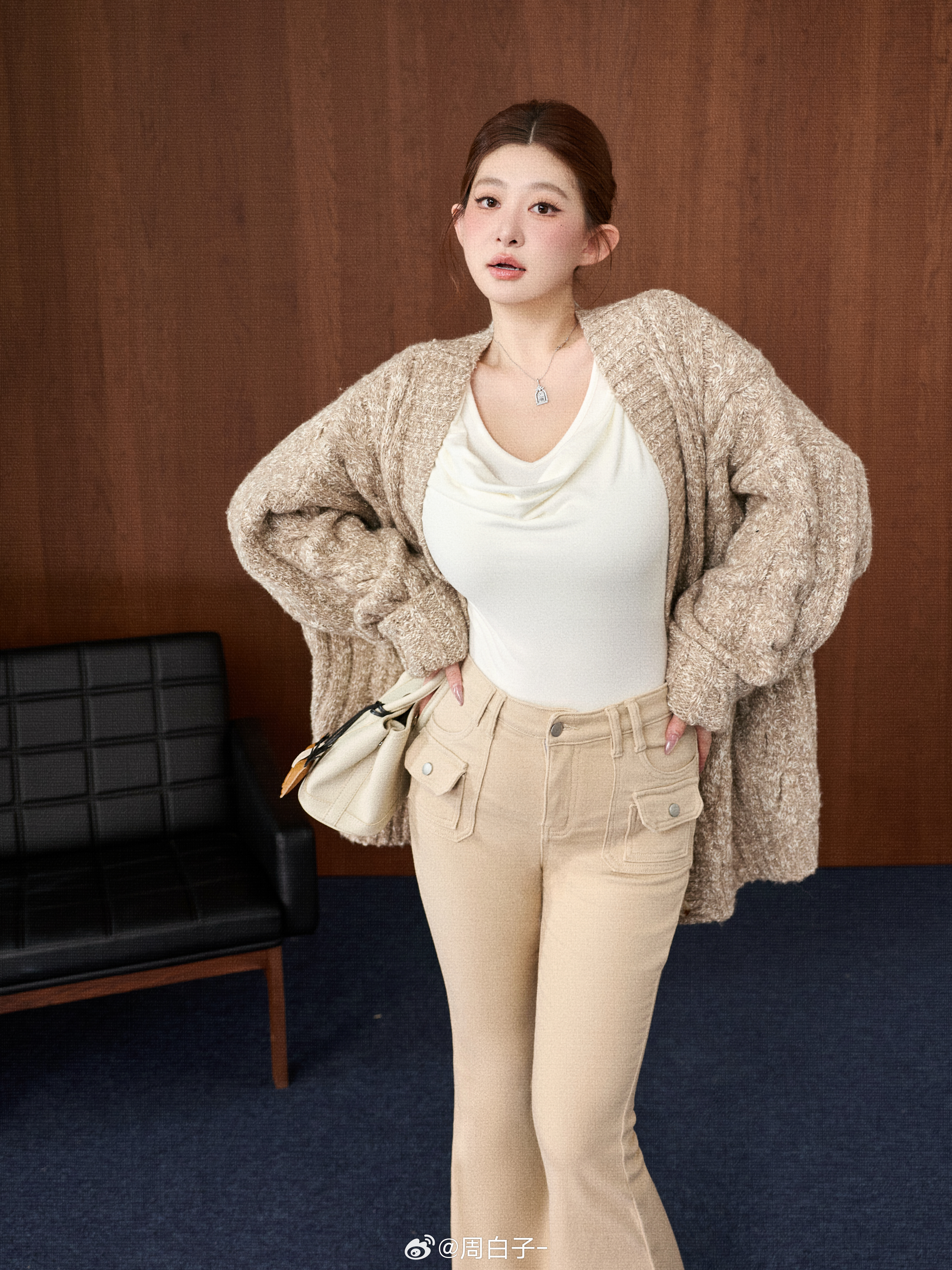 内搭白T/配同色系喇叭裤