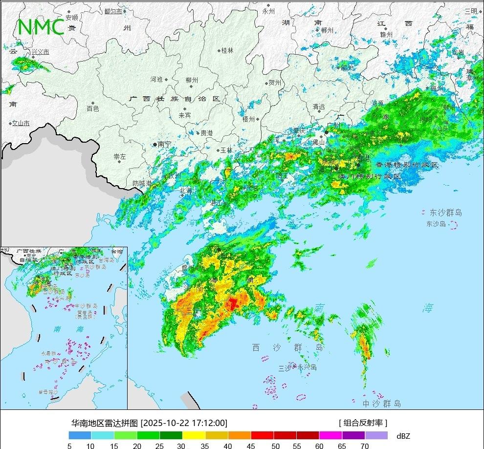 傍晚前后,台风风神西南行速度加快,而海南岛等地仍受到雨带的影响,局部过程雨量已经超过100mm。今晚至明天白天,随着台风风神继续向西南方向移动,外围影响也将会有所减弱,冷空气叠加台风导致的大风天气也会明显减弱。