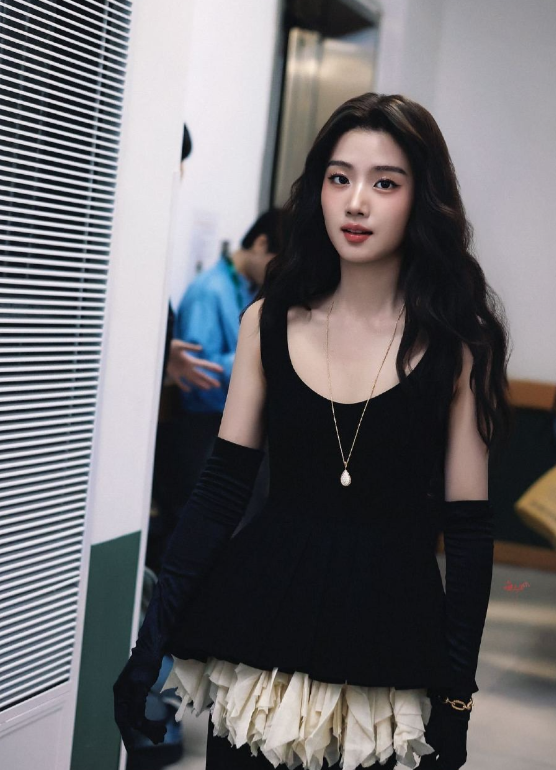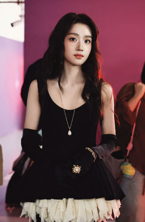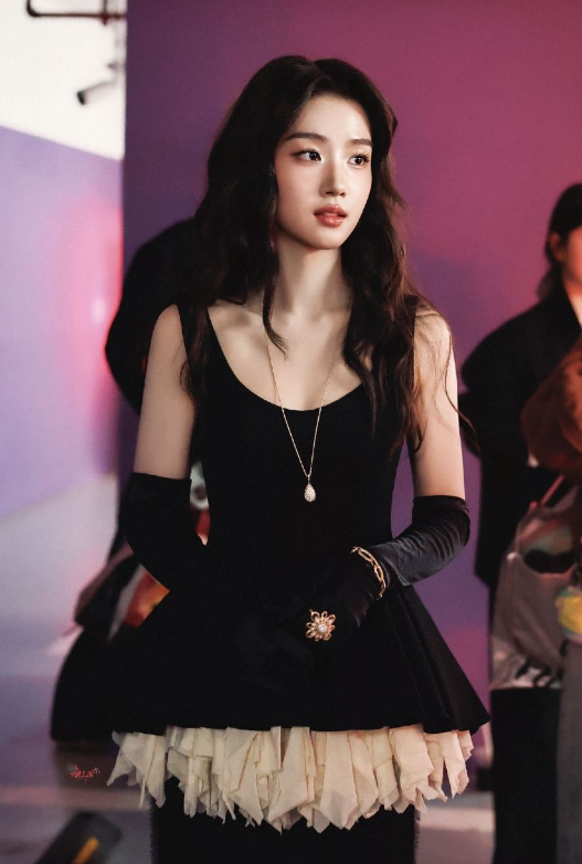 黑金配色搭配一袭温柔感长发,复古感的赫本风好合适妹妹。卢昱晓今天的状态看起来好好,已经开始期待优雅黑天鹅噜闪亮登场了✨