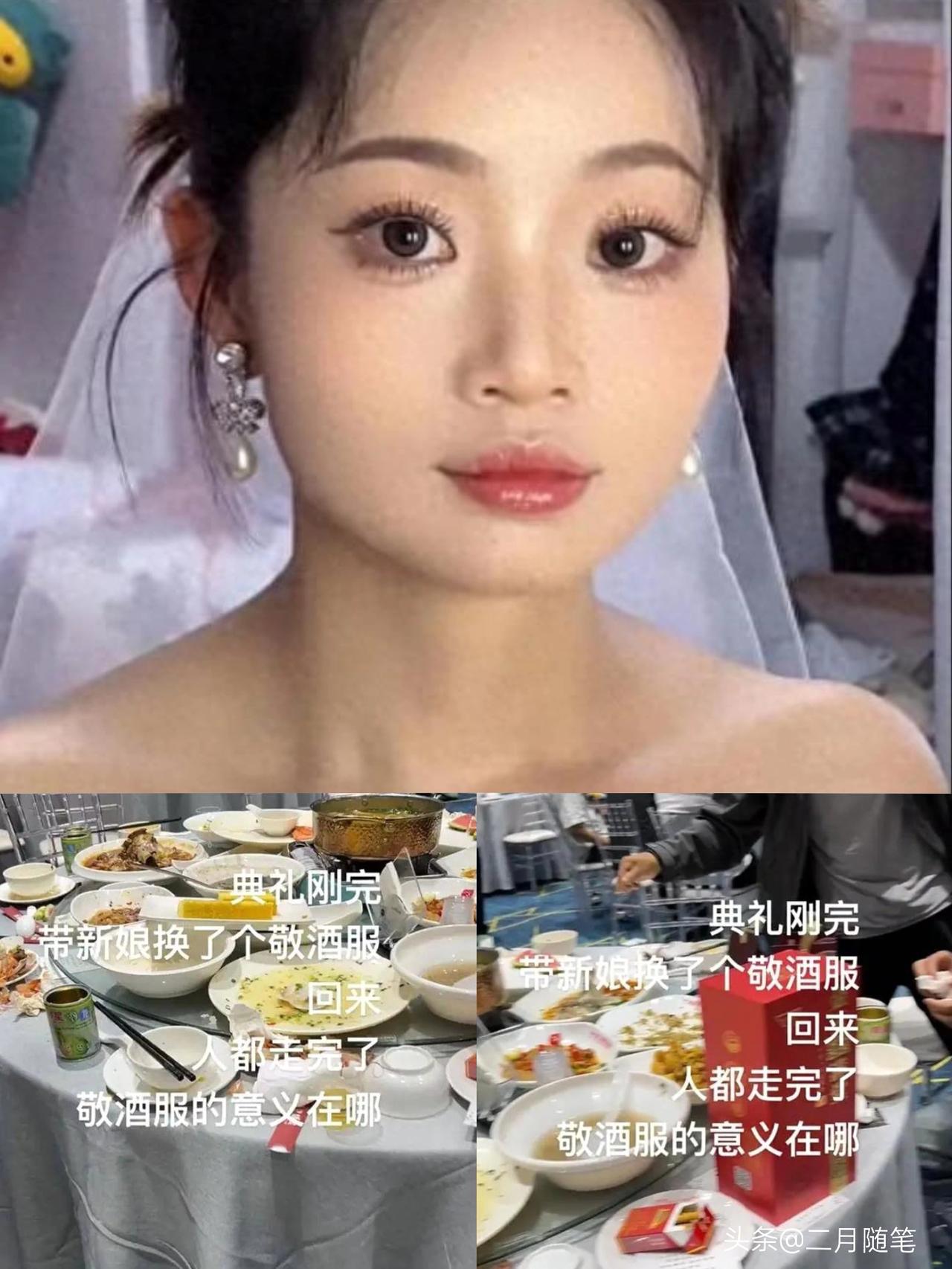 贵州一新娘换完敬酒服回来,宾客全跑光? 网友:只有新娘在乎婚礼! 你说这个贵州新娘的事, 我刷到的时候心里真挺不是滋味的。 精心准备了一天, 结果换好敬酒服出来, 宾客全跑光了, 这得多失落啊。 这事说起来, 其实不是谁故意针对谁, 就是两代人的想法对不上! 新娘小敏花了半年心思, 连敬酒顺序都想好了, 她要的是那种被大家祝福的仪式感, 是属于自己的高光时刻! 但来的宾客, 尤其是长辈们, 想法就特别直接: 礼随了, 饭吃了, 这人情就算是还完了! 下午家里还有猪要喂、 有牌要打,谁 还有功夫在那儿陪着演完一整套流程啊? 所以, 这根本不是谁对谁错的问题,而是年轻人想要的"仪式感", 和老一辈讲究的"人情往来"撞上了! 婚礼本来是为了庆祝两个人在一起, 可现在越来越像一场必须演完的戏, 想想也挺无奈的! 新娘敬酒 喜宴敬酒服