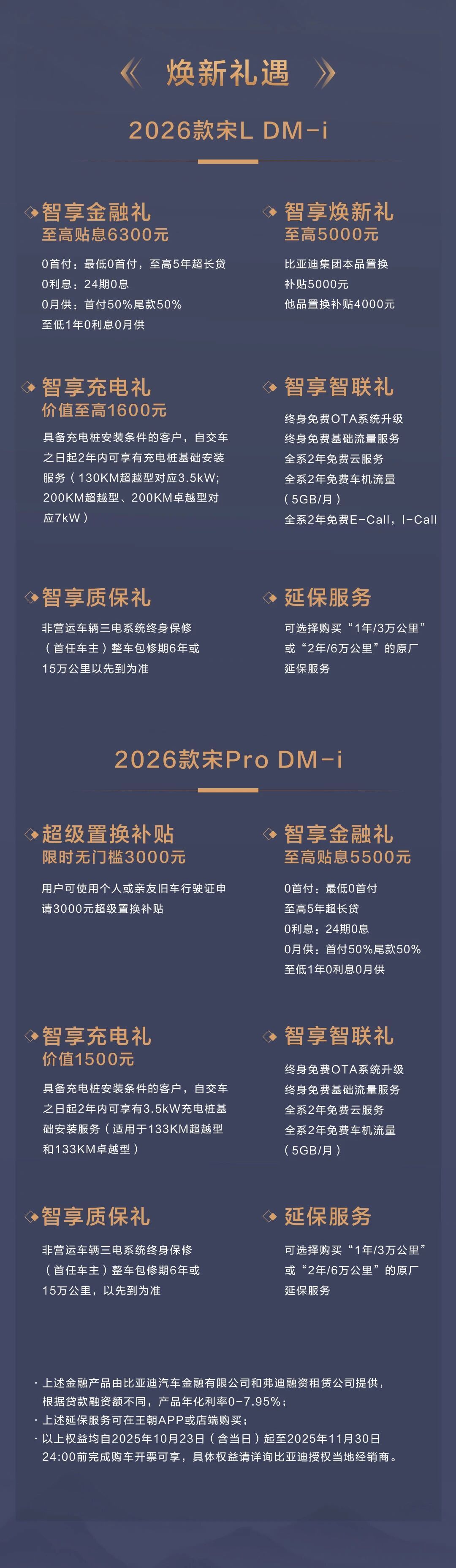 2026款宋L DM-i/宋Pro DM-i上市,限时9.98万元起