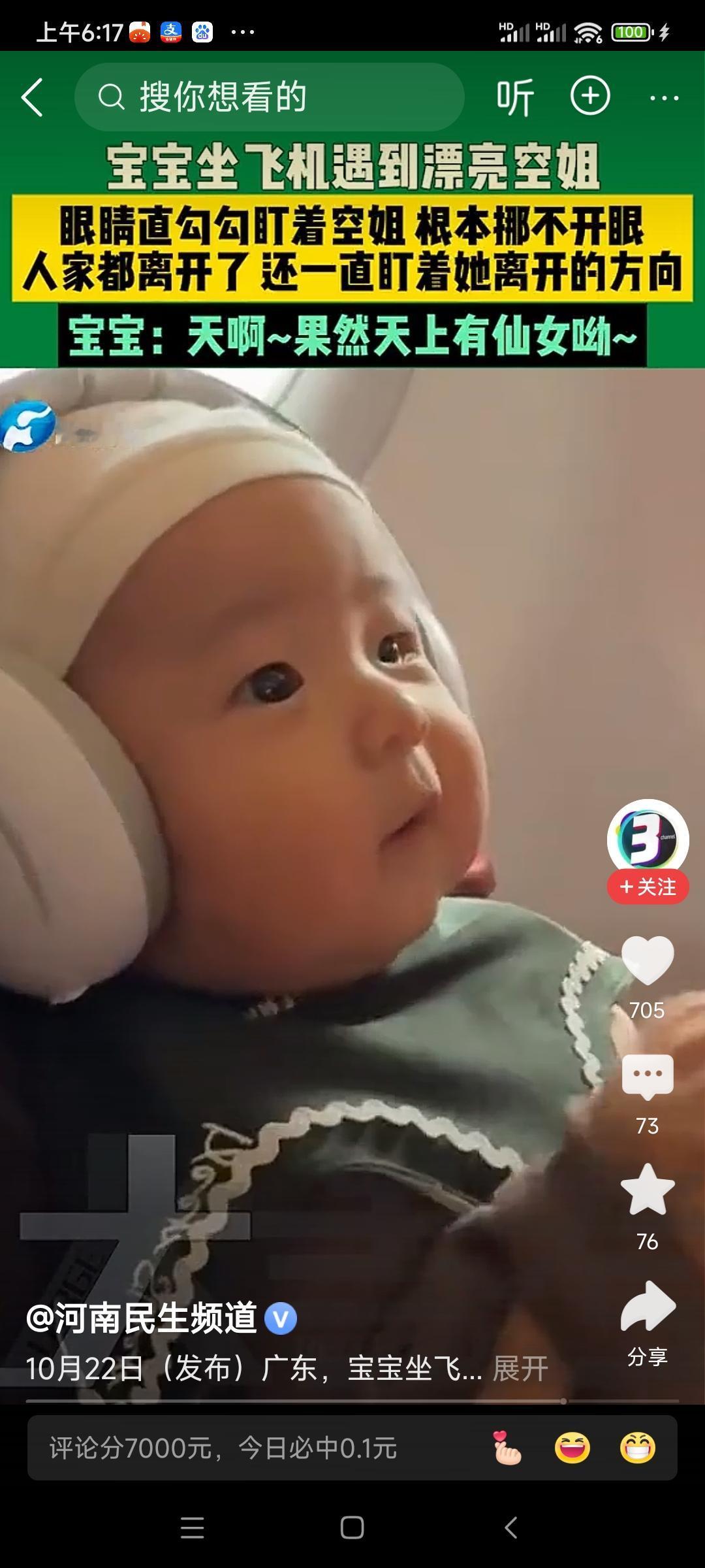 稚子观空姐 舷窗映得佳人俏,稚子凝眸不肯移。 许是仙娥从天降,惹他痴看忘归期。