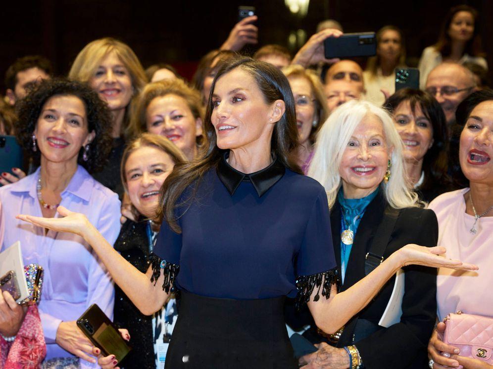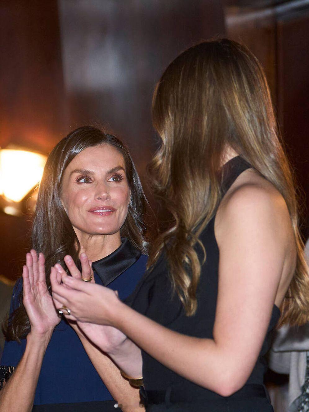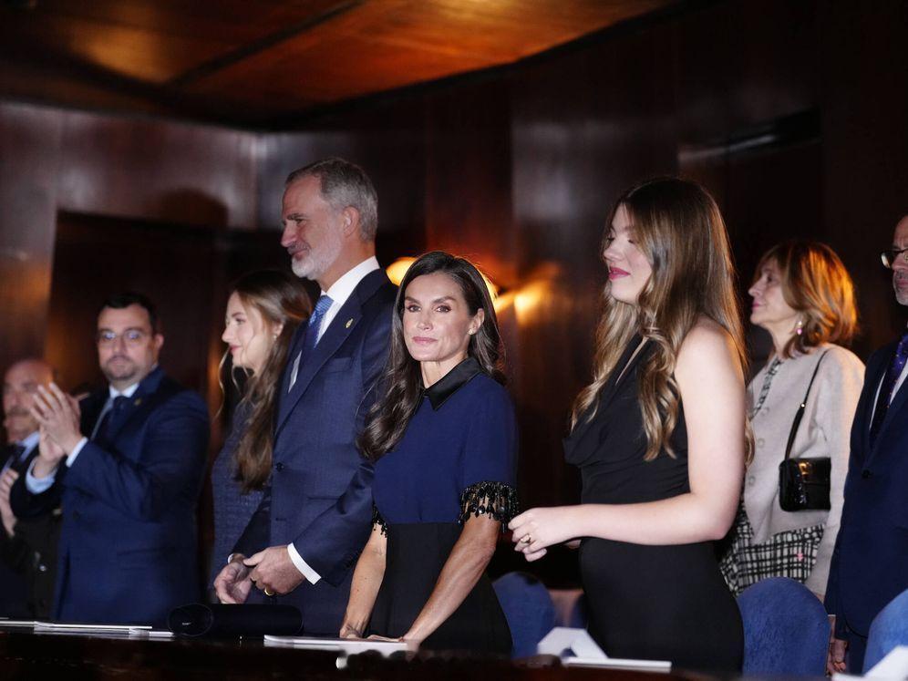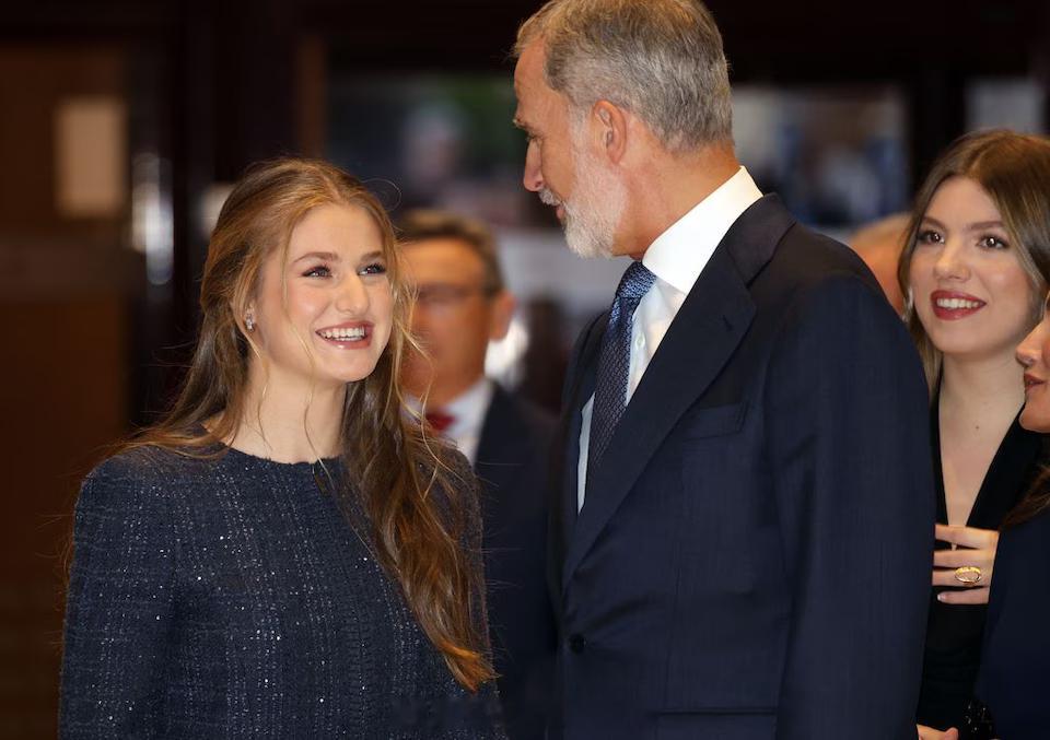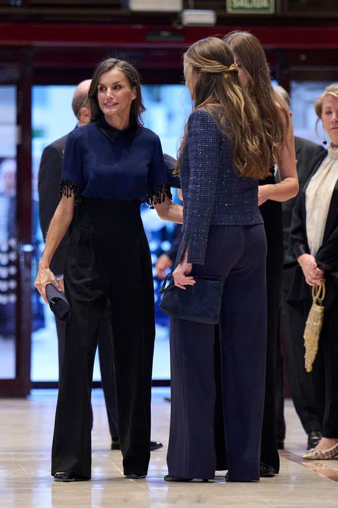 10月23日,西班牙国王夫妇、阿斯图里亚斯公主莱昂诺尔及索菲亚公主在费利佩王子会议中心礼堂出席了今年的阿斯图里亚斯公主奖音乐会,全员裤装亮相~