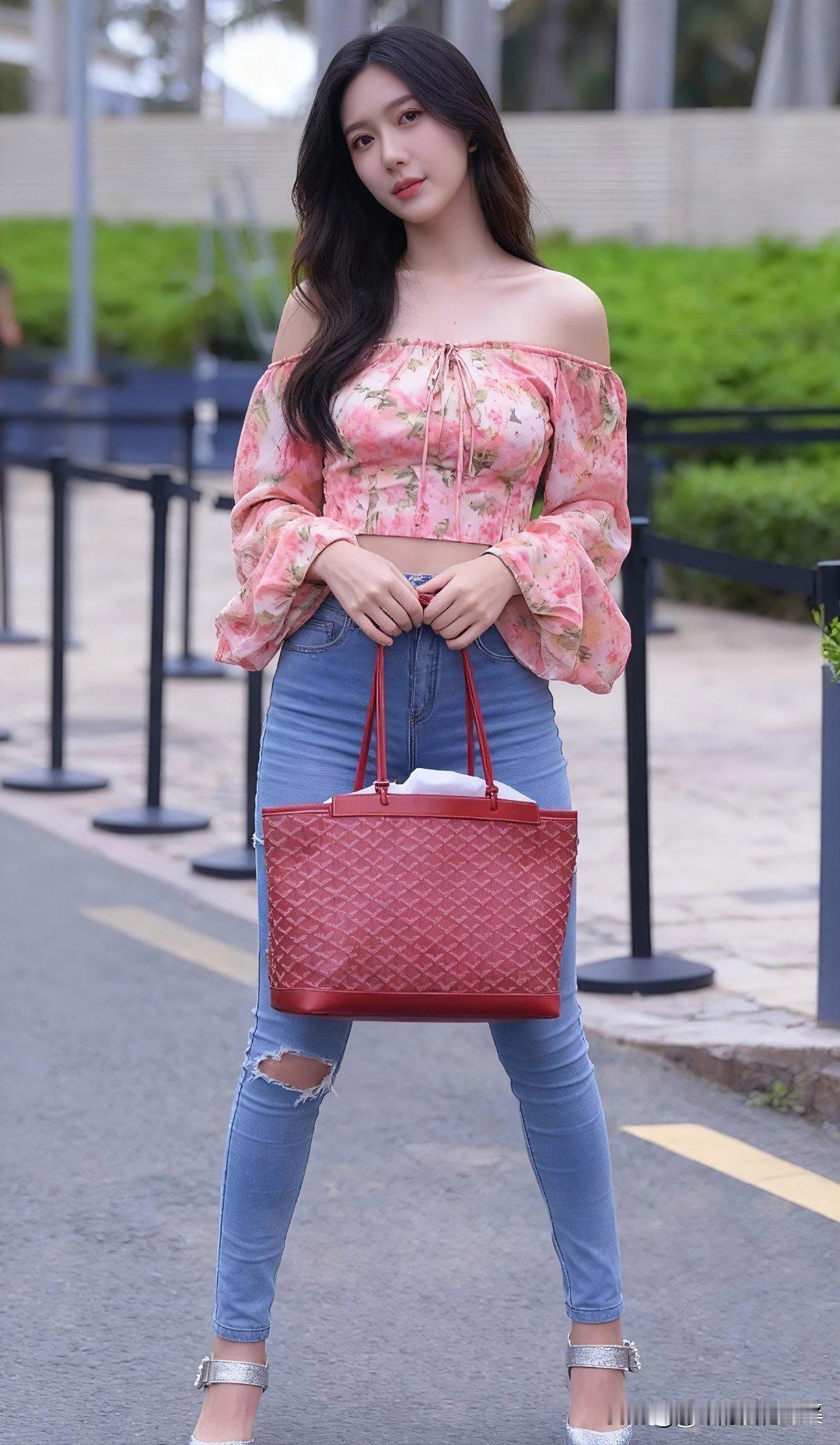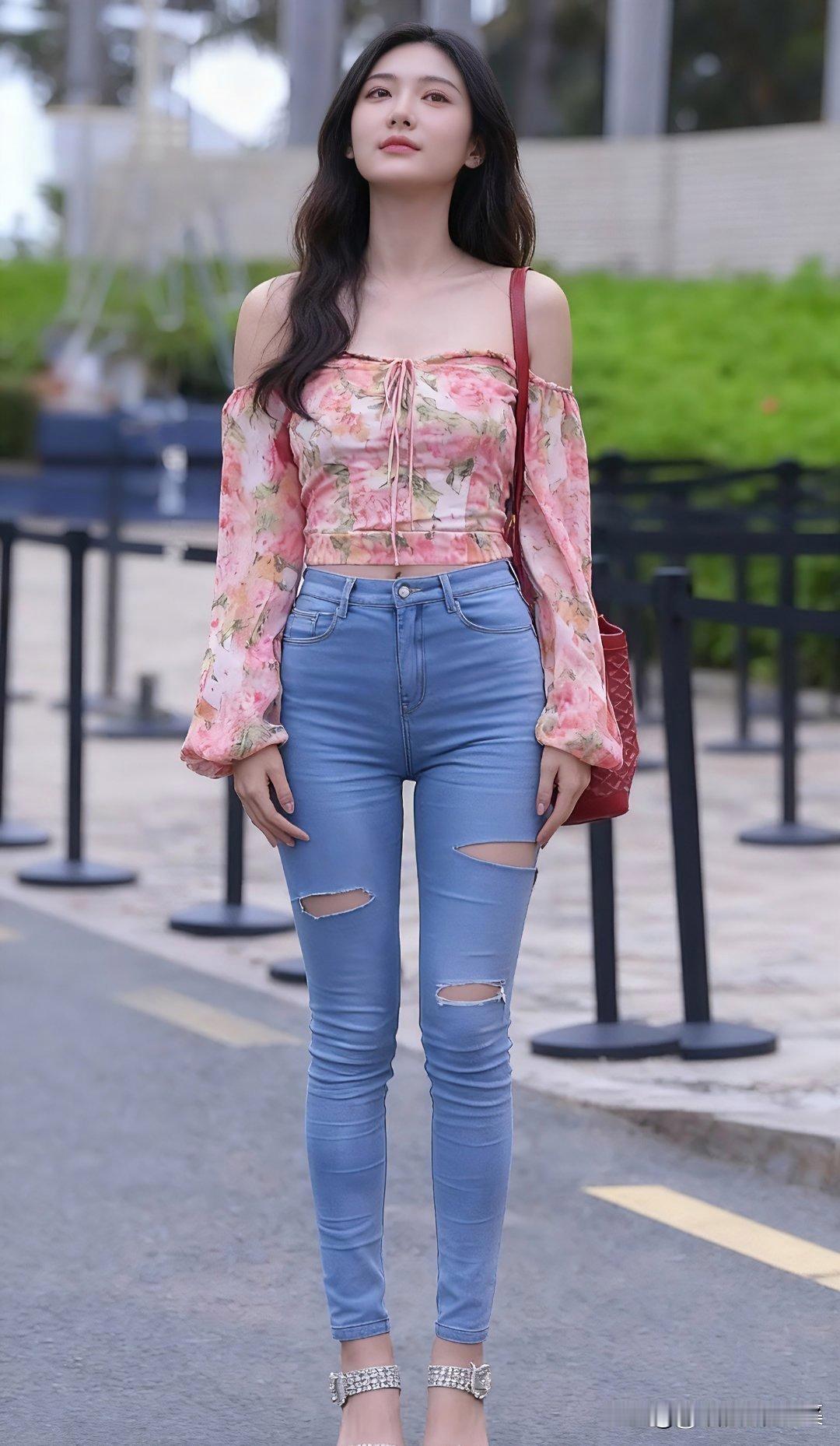 甜美花露肩上衣配破洞牛仔裤,这搭配真的绝了,能让每一天都元气满满!就像街头看到的那个小姐姐,浅粉色露肩上衣,性感里带着温柔,抽绳设计超俏皮,还能小秀一下小蛮腰。 再配上浅蓝色破洞牛仔裤,修身版型把腿型勾勒得超美,破洞元素紧跟潮流,毛边裤脚又随性得很。透明高跟拖鞋一穿,瞬间拉长腿部线条,精致时髦感直接拉满。再背个白色链条包,简约大气又适配整体风格。林允儿也穿过类似搭配在活动现场互动,活力四射。这一套日常出街,吸睛又舒适,谁看了不说一句街头辣妹!