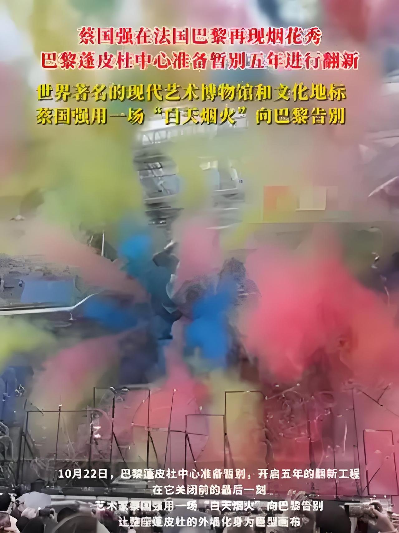 蔡国强的烟花秀咋老是在白天,这哪是艺术啊,这是污染环境,谁不知道烟花晚上放最美。咱们普通人放烟花就放几个图个开心,蔡国强放烟花放满山坡。那是放烟花吗,那是破坏环境。还跑到巴黎放去了,也太自我了,我行我素的。 一开始蓬皮杜主席曾称赞蔡国强放烟花是“完美体现蓬皮杜精神” 。结果呢,几声爆破后,浓密黑烟迅速笼罩街区,将建筑裹成“火灾现场”,刺鼻气味穿透门窗涌入民居,街道能见度骤降 。“烧焦味在房间里都能闻到,整条街全是爆炸粉尘,对呼吸道危害太大了”,一位居民在社交平台的抱怨引发共鸣。现场除零星掌声,更多是清晰的嘘声,甚至有民众举牌抗议“这不是艺术是污染”。 争议余波次日便扩散至艺术界:原定于10月23日巴黎巴塞尔艺术展期间举办的“蔡国强与卡地亚基金会”对话活动突然取消,相关信息从双方官网紧急撤下 。这一变动被普遍解读为对烟火争议的回应——距其“喜马拉雅炸山事件”引发质疑仅一月,艺术伦理的讨论再度升温 。 当黑烟散尽,蓬皮杜将迎来五年修缮,而这场烟火留下的讨论远未停歇。它如同一面棱镜,折射出公共艺术在创作自由、社会责任与环境敬畏间的永恒张力。未赴的对话或许成了注脚:艺术的“狂欢”从不应以公共利益为代价 。 如何评价蔡国强在巴黎再办烟花秀