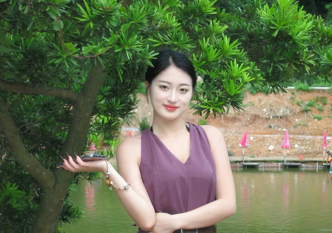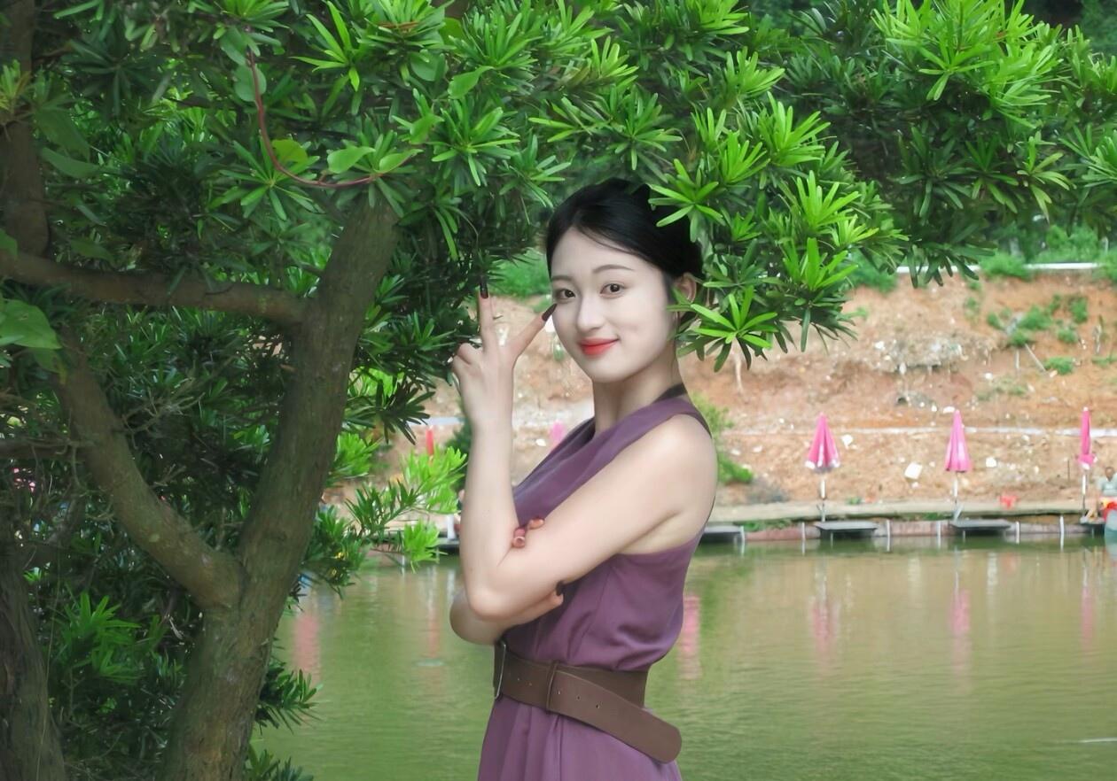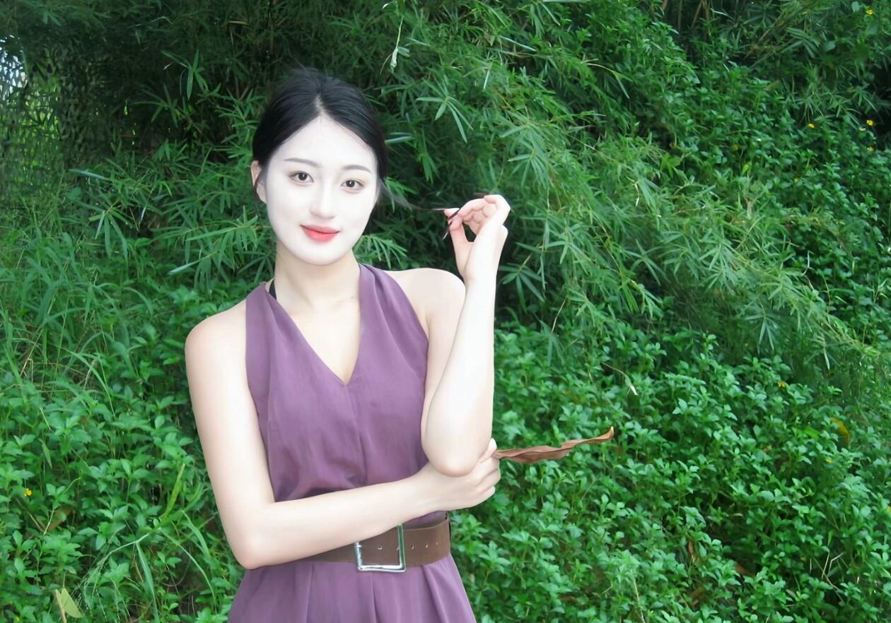 在绿意盎然的公园里,优雅地自拍,享受美好时光。