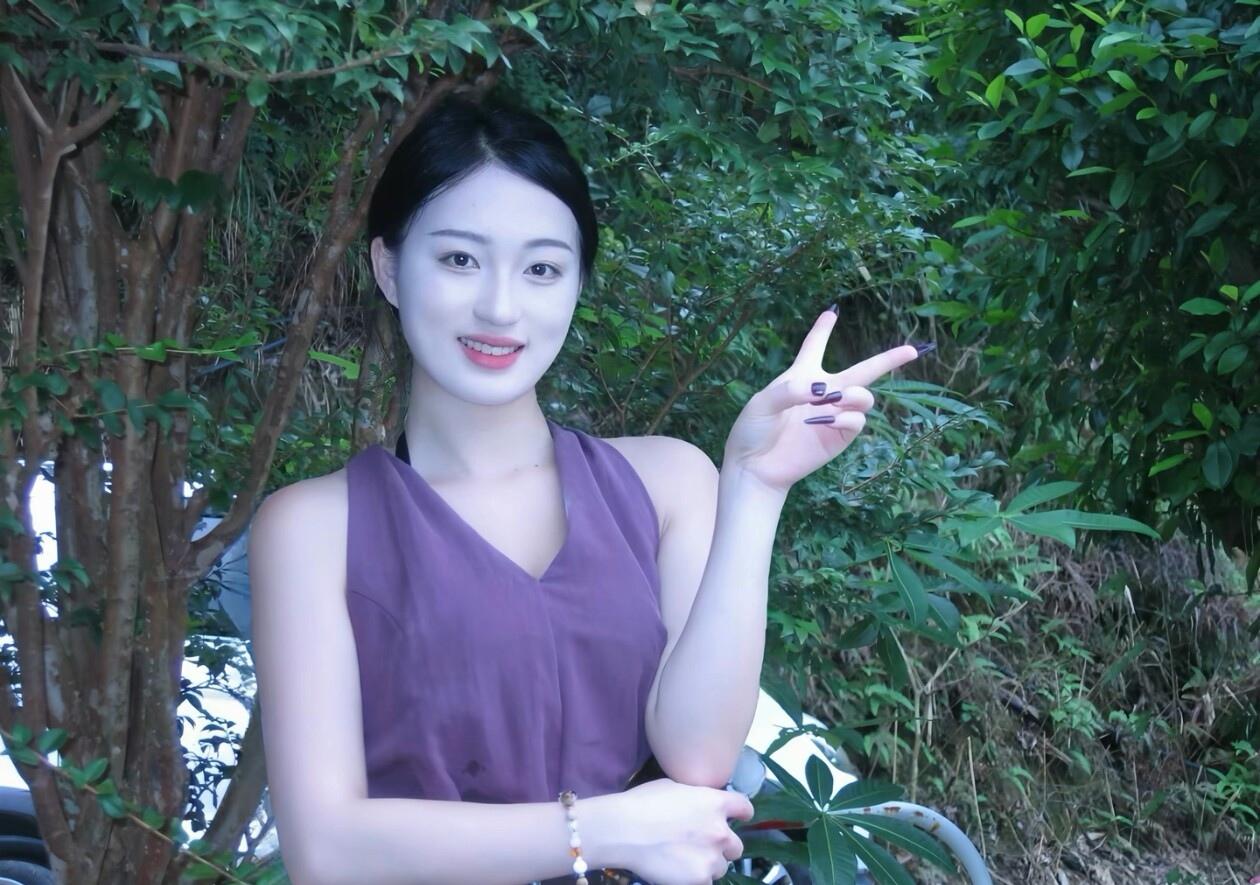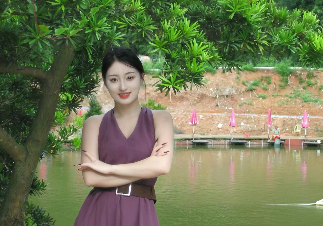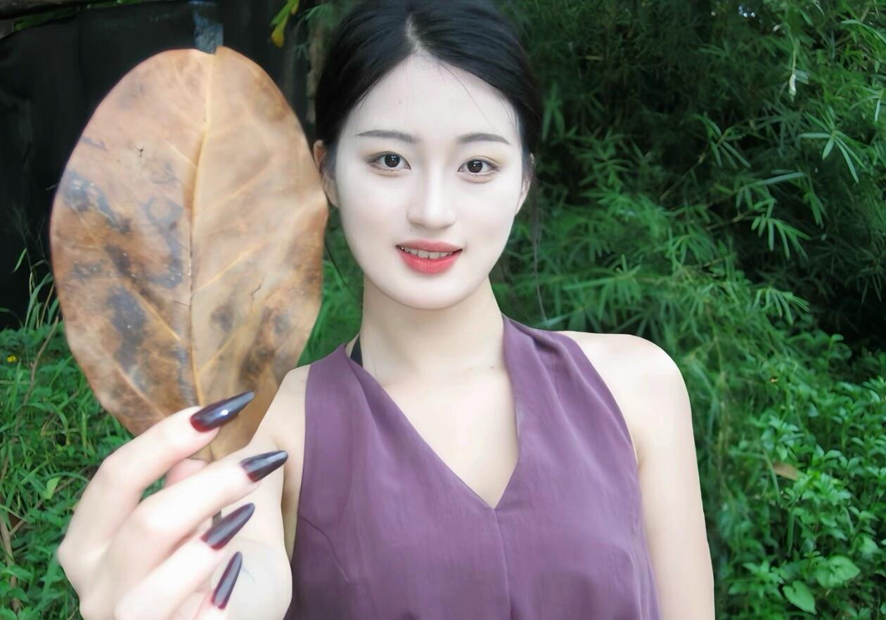 在绿意盎然的公园里,优雅地自拍,享受美好时光。