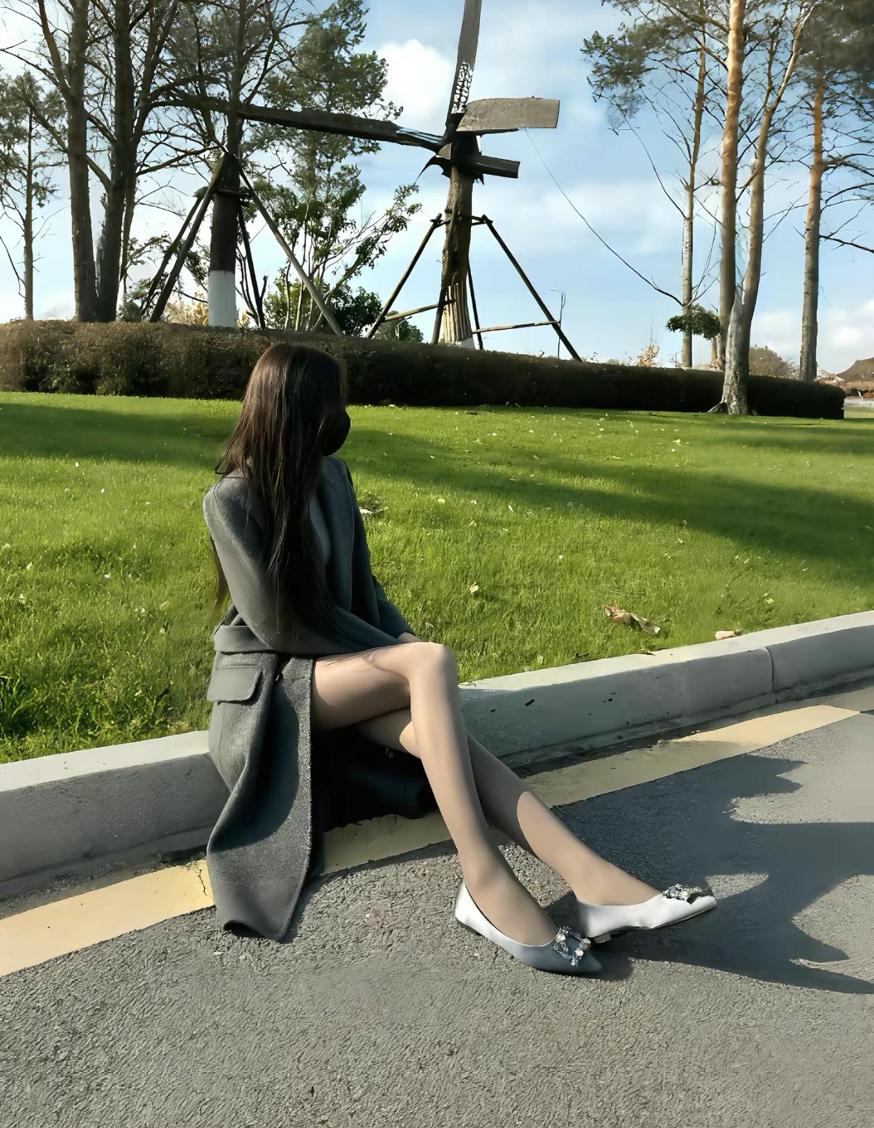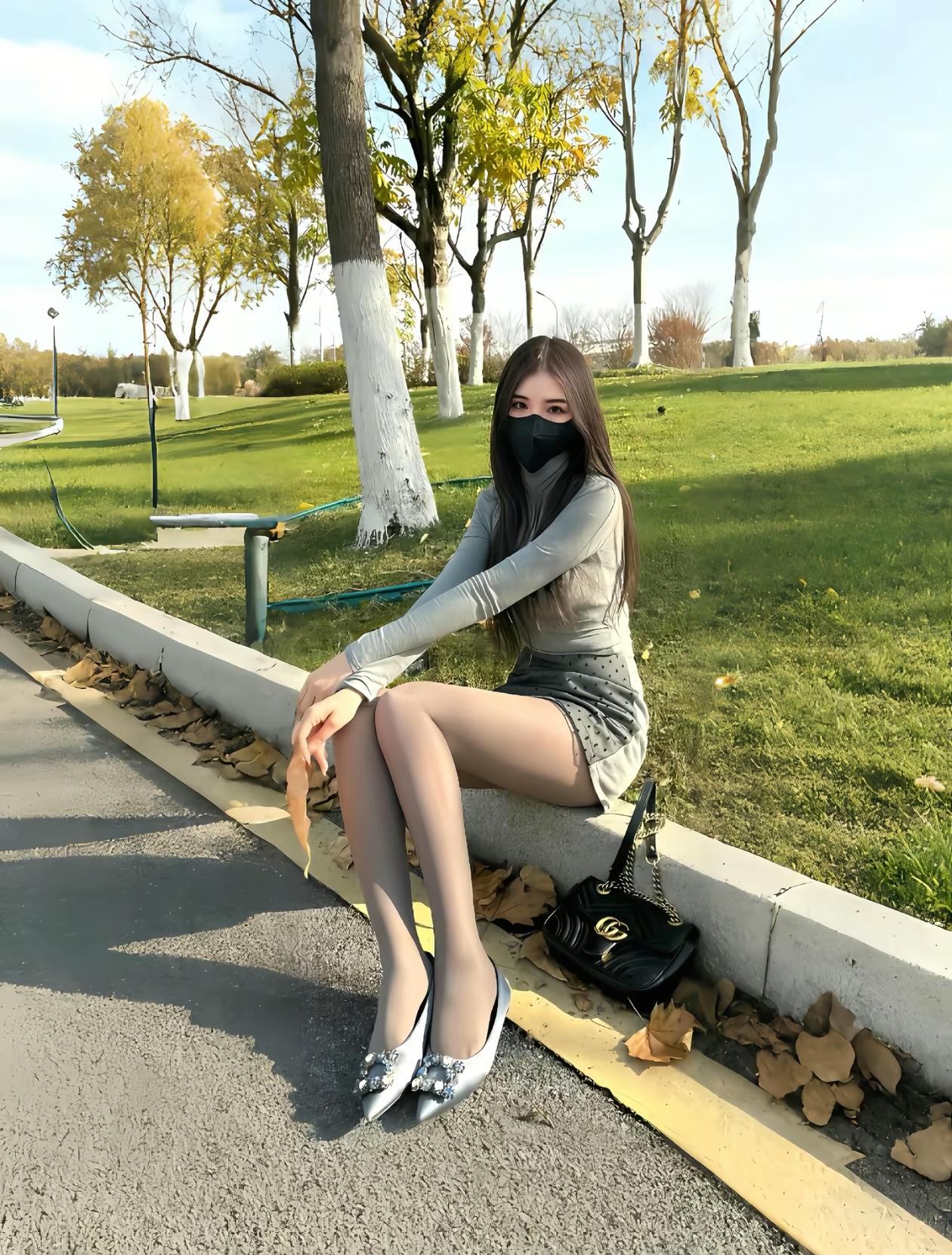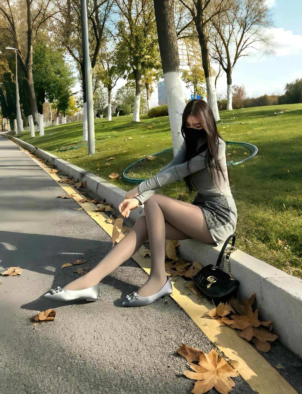 秋日公园漫步,时尚穿搭与自然美景的完美结合🍂👗👠