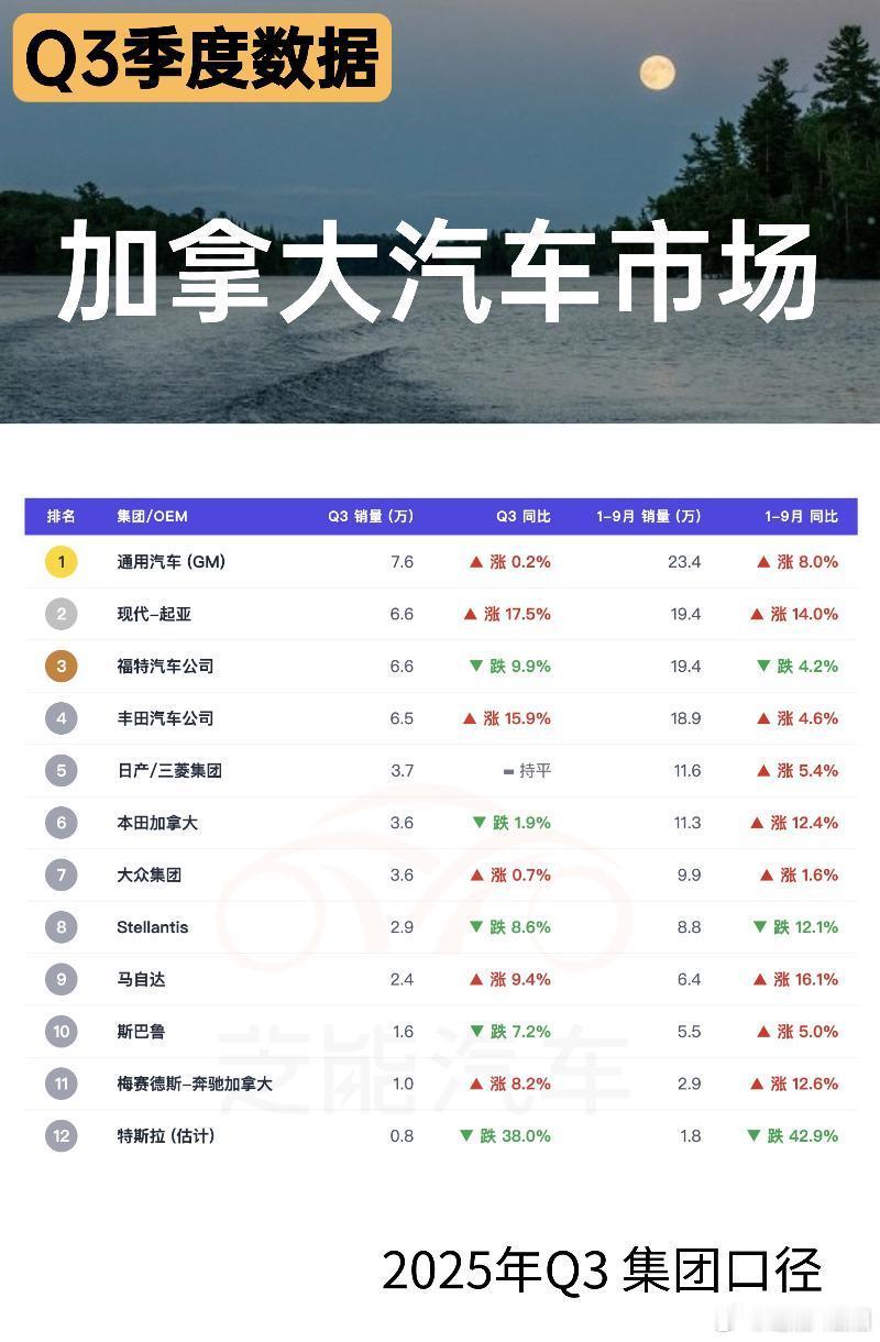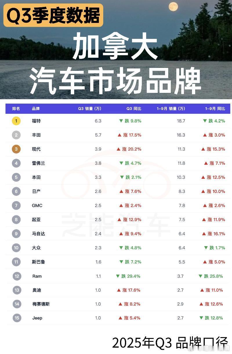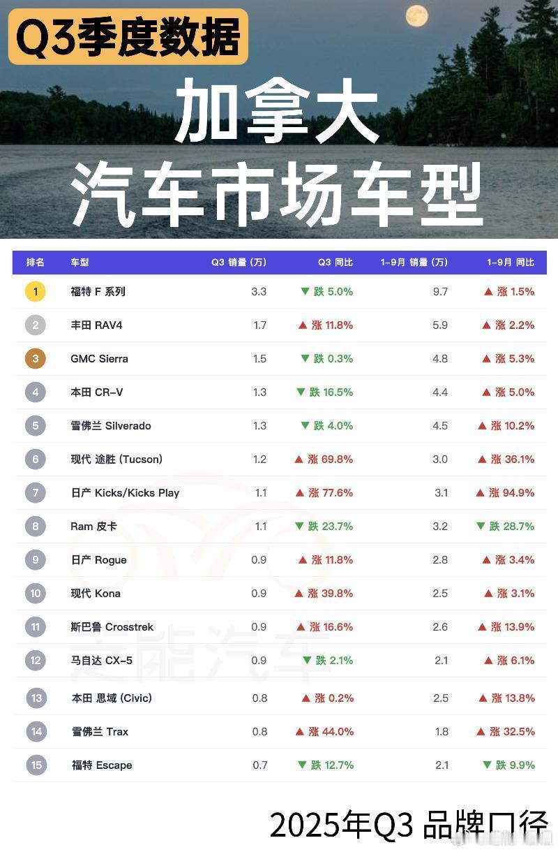 2025 年第三季度加拿大新车市场温和增长,紧凑型 SUV 和混合动力车是主要增长点。